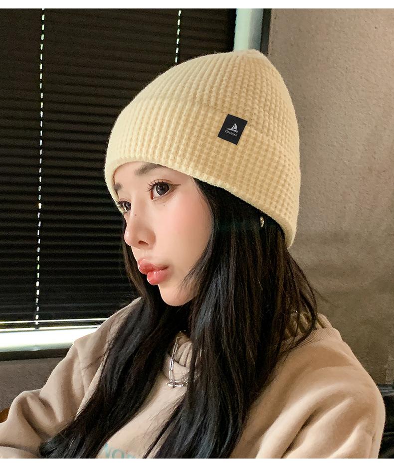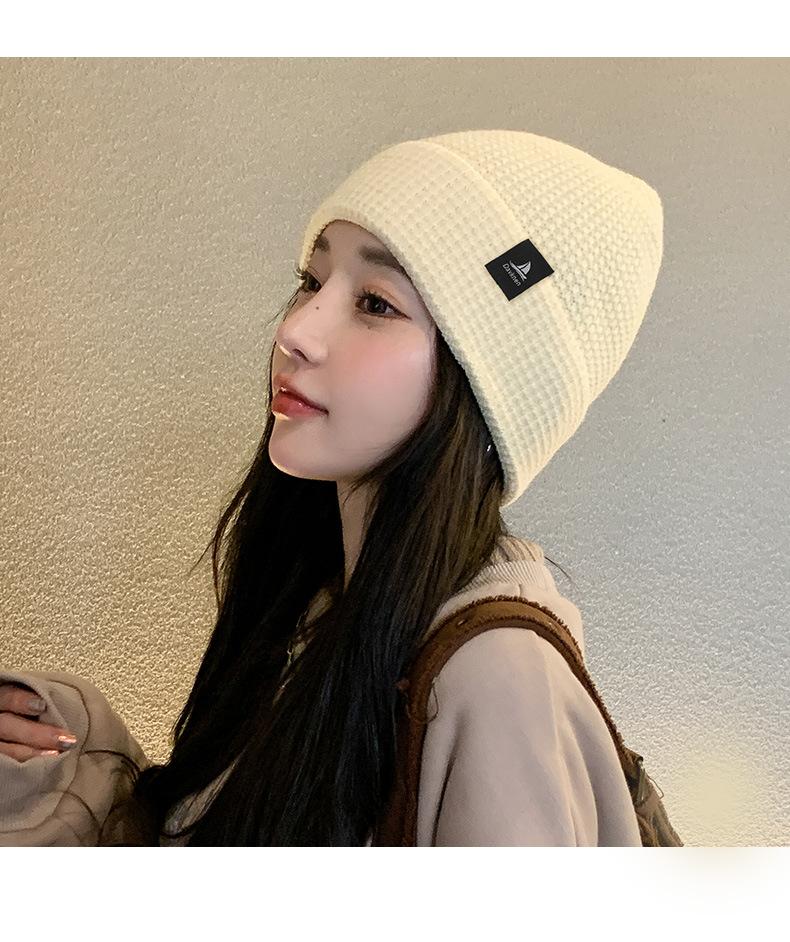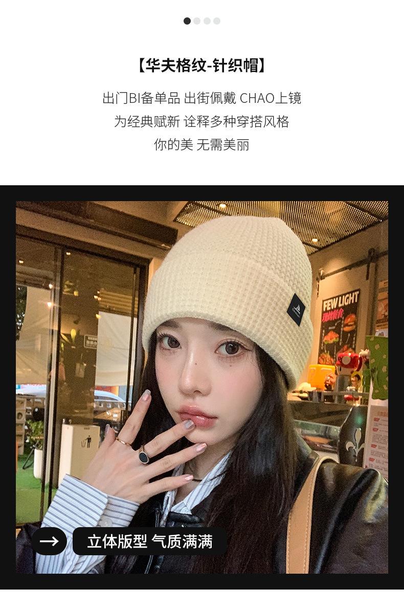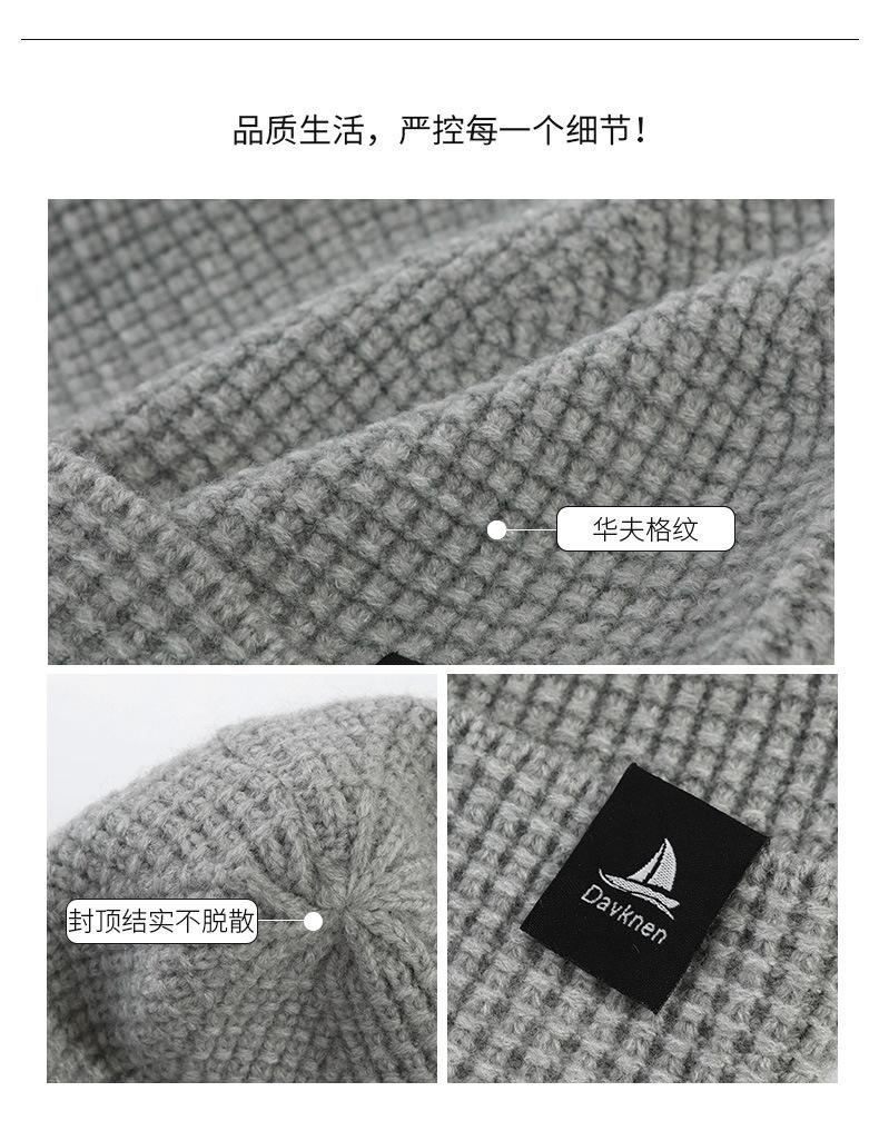 Gorro de punto grueso y cálido con estampado de gofres, de color liso y combinable para otoño e invierno, con cabeza grande y etiqueta pequeña, de lana