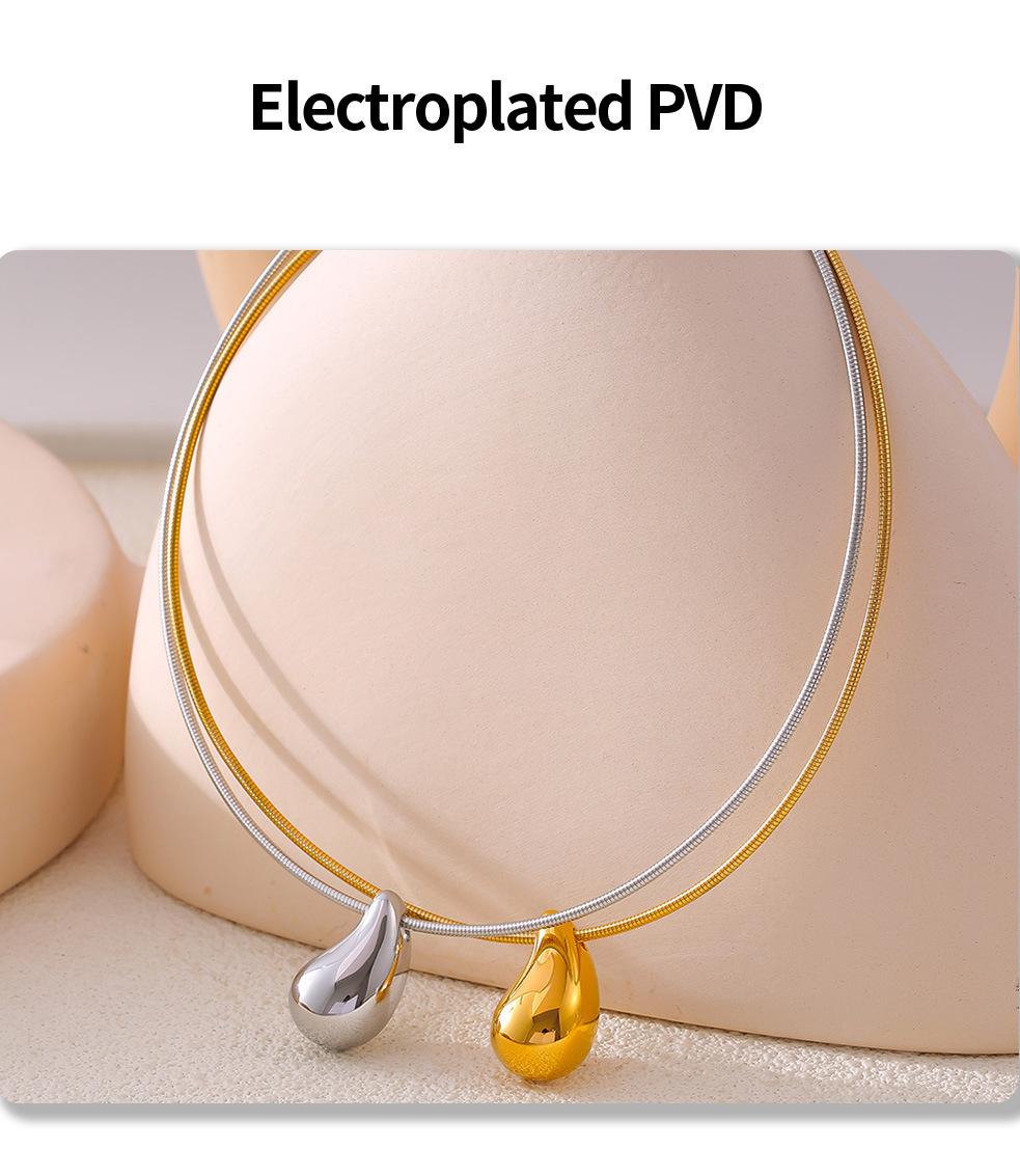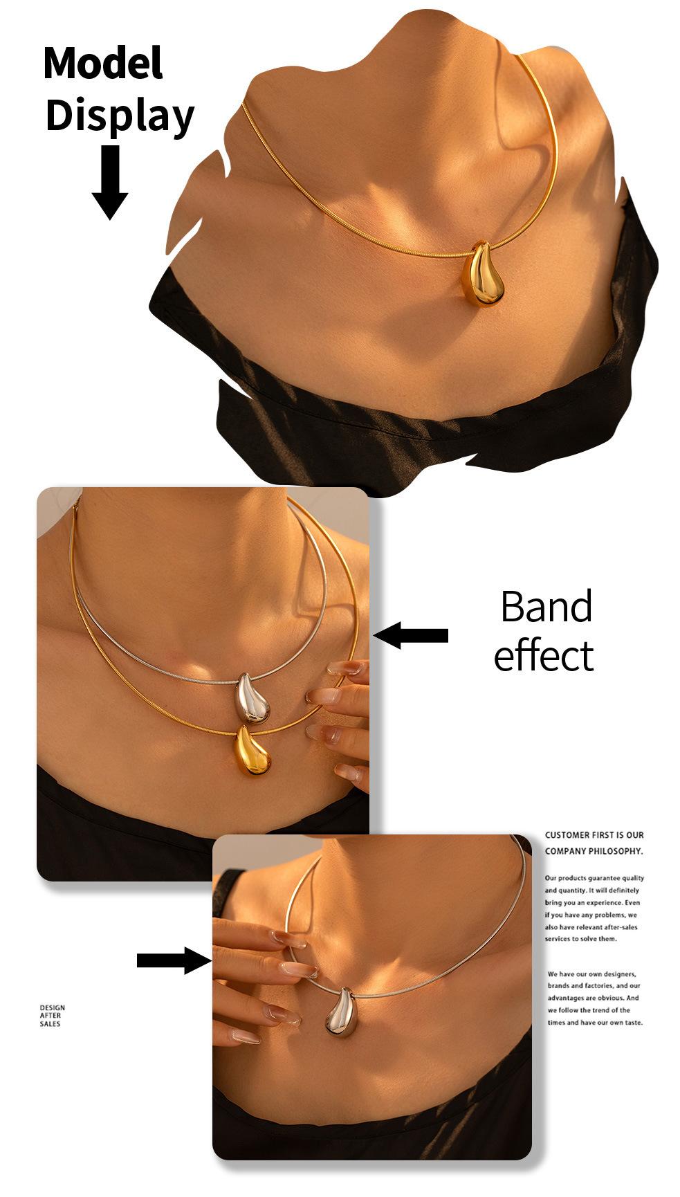 Collar con colgante de gota de oro estilo frío y caliente de Europa y Estados Unidos, diseño de moda de nicho, chapado en acero inoxidable de 18 quilates.