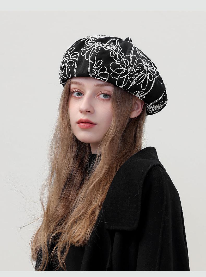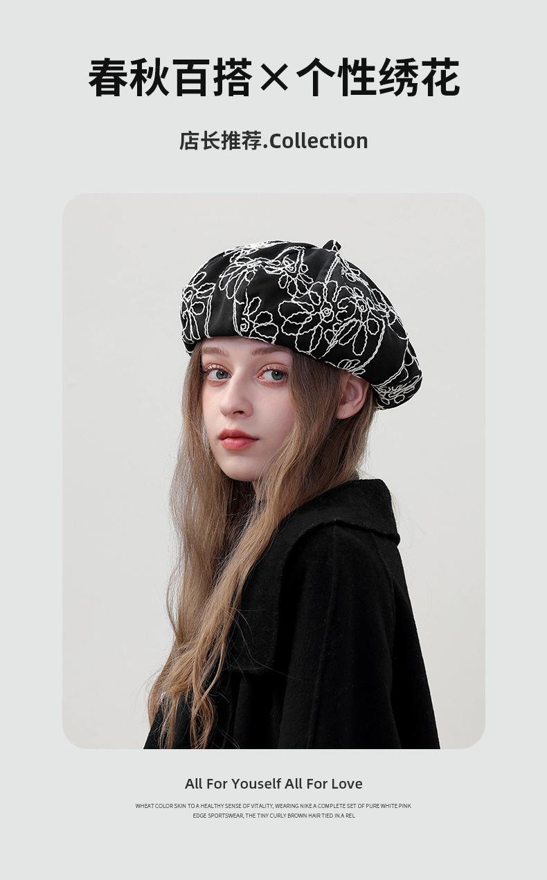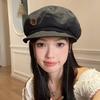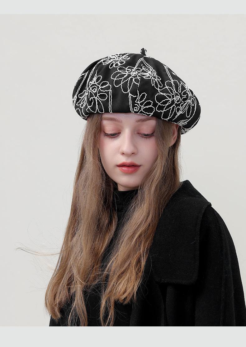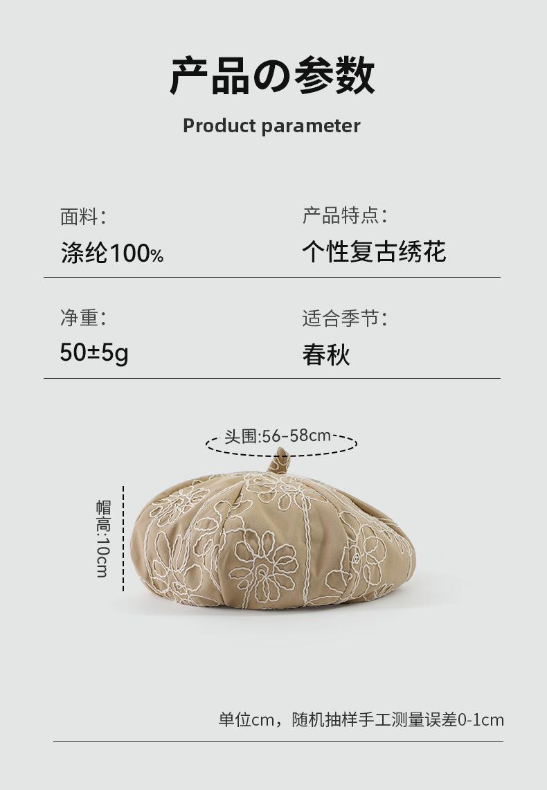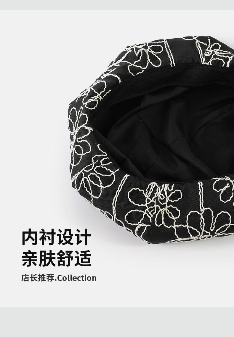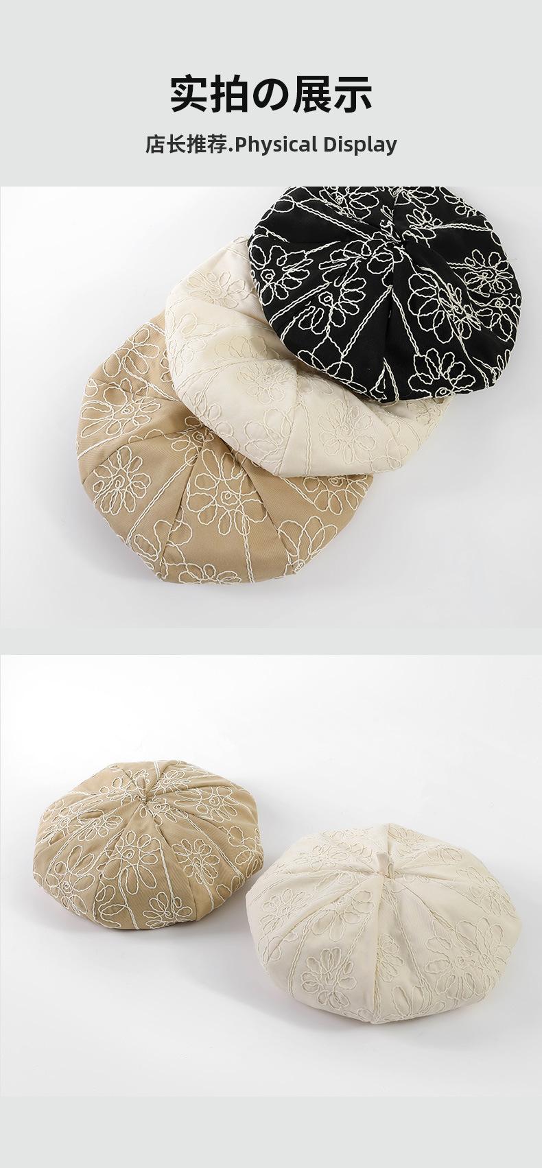 Boina de pintor pequeña, fina, de estilo octogonal, con bordado de flores vintage japonesas, para primavera y otoño, combina con todo, de cara lisa.