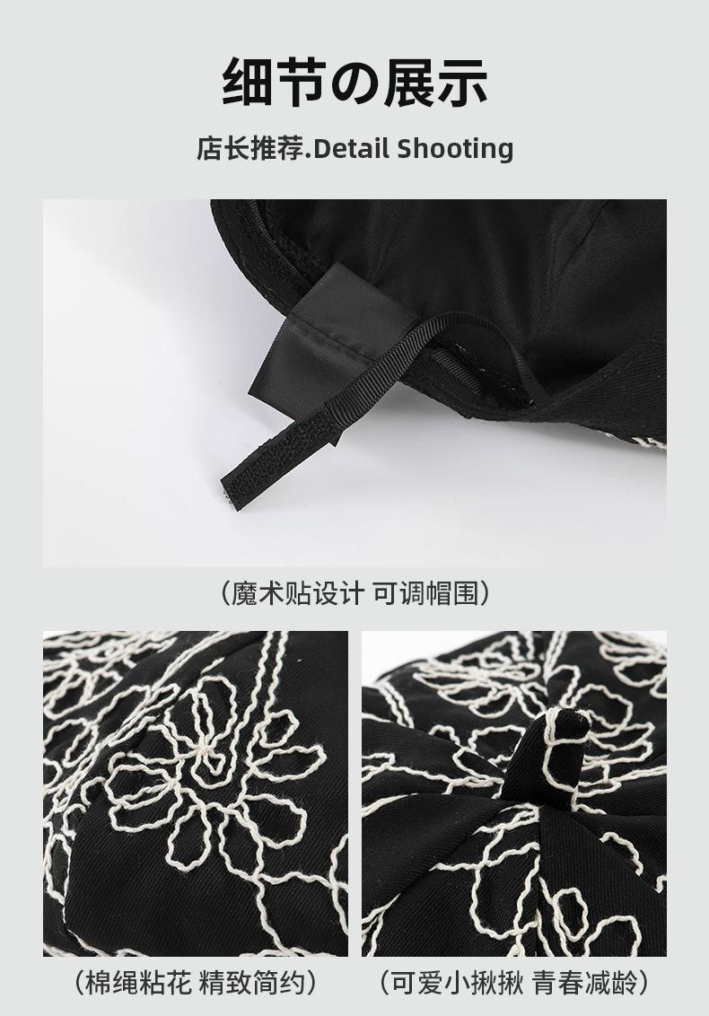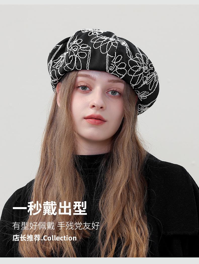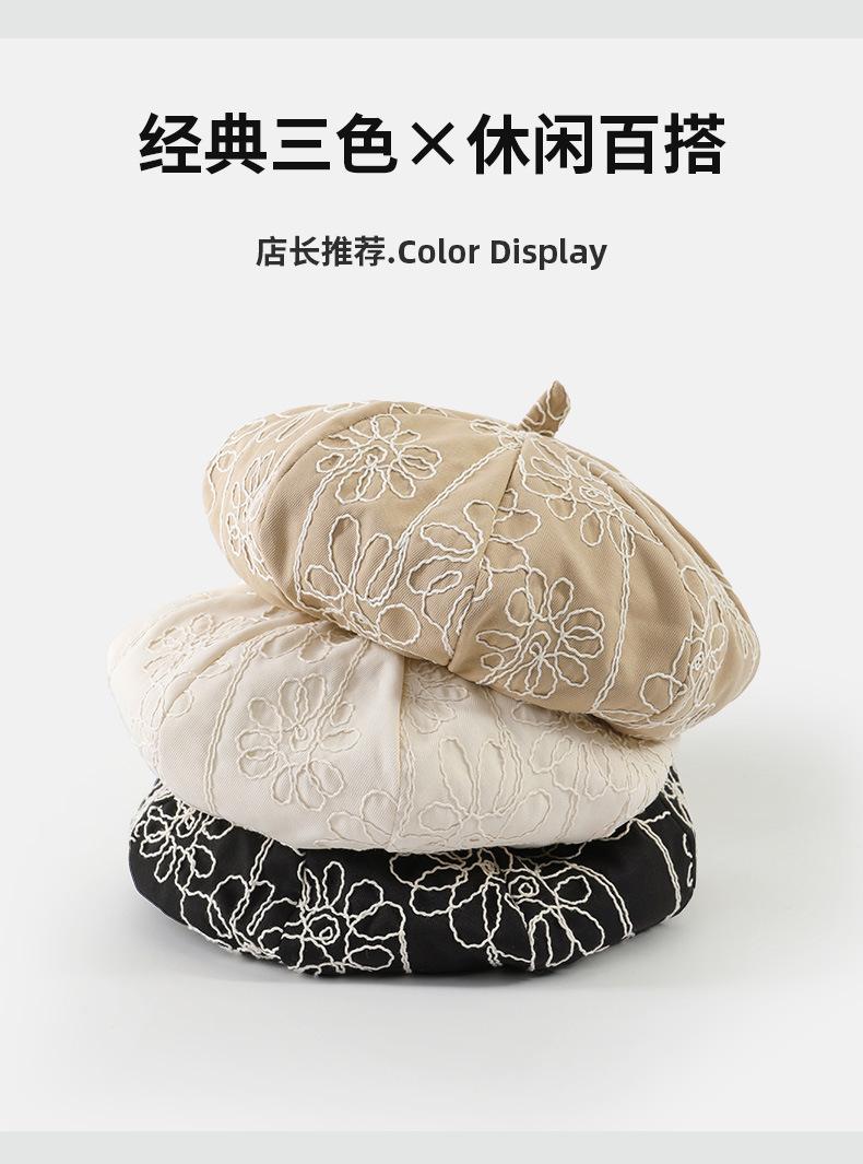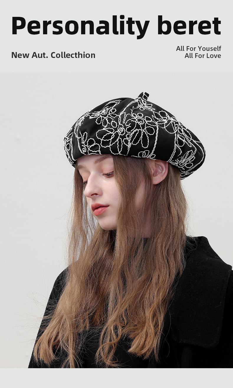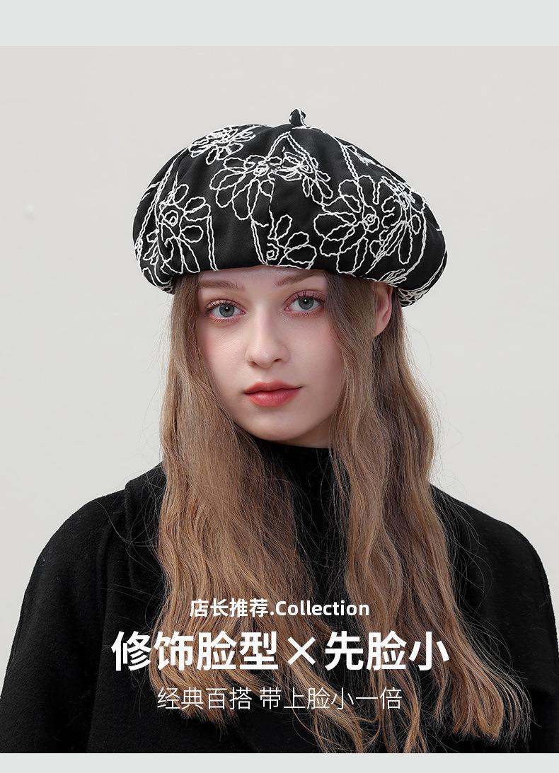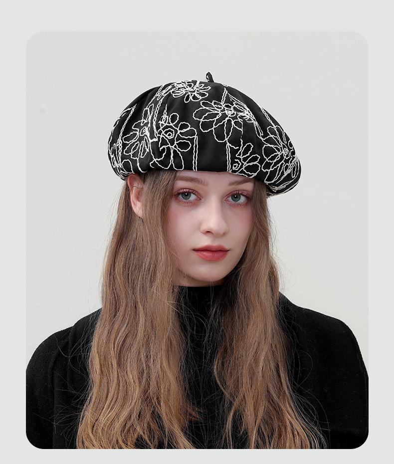 Boina de pintor pequeña, fina, de estilo octogonal, con bordado de flores vintage japonesas, para primavera y otoño, combina con todo, de cara lisa.