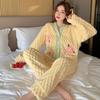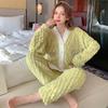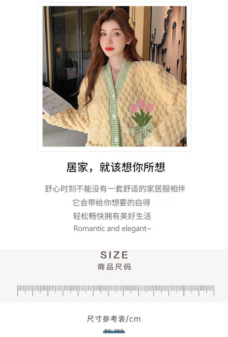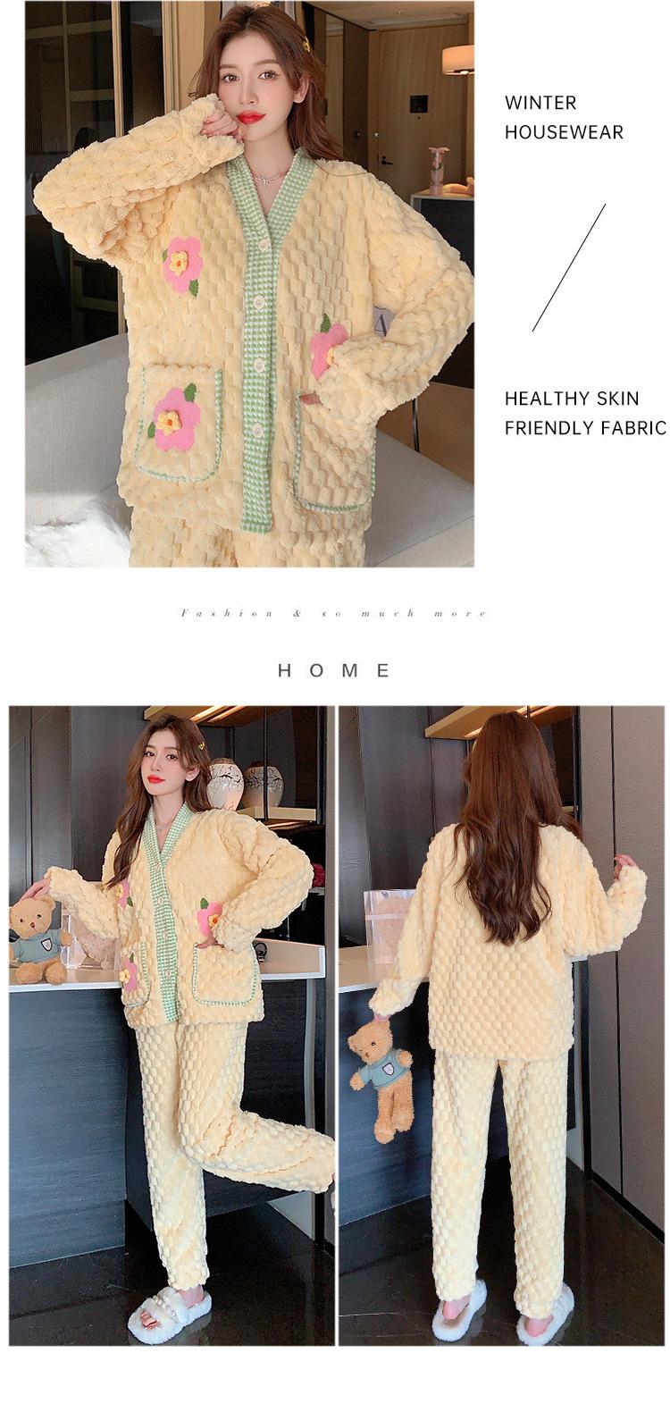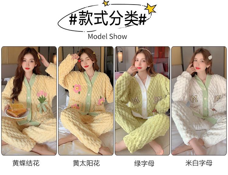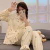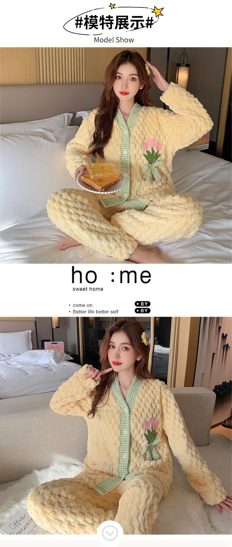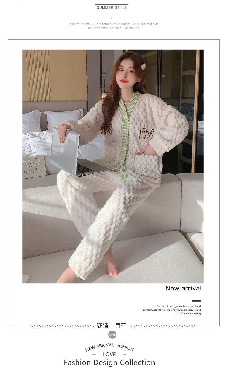 Pijama de lana coral para mujer, de invierno, bonito y dulce, estilo cárdigan de manga larga, pantalones, traje de casa, conjunto de dos piezas