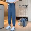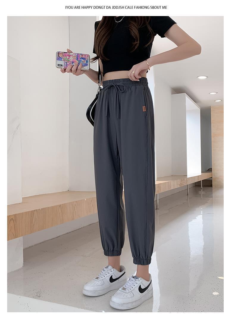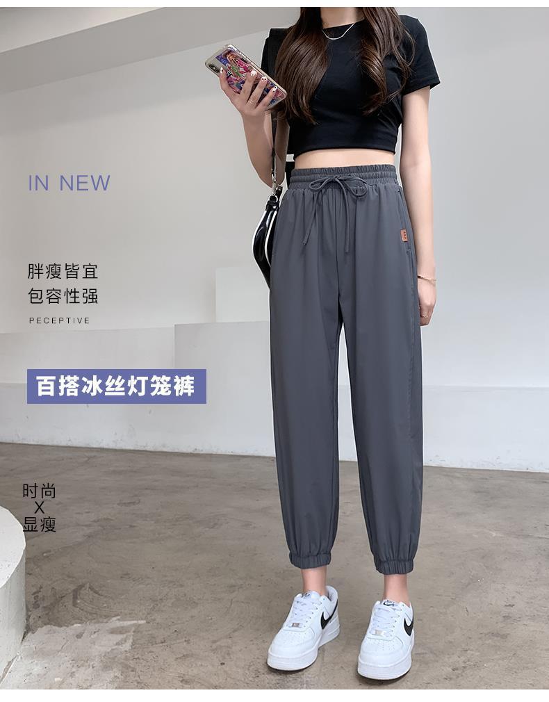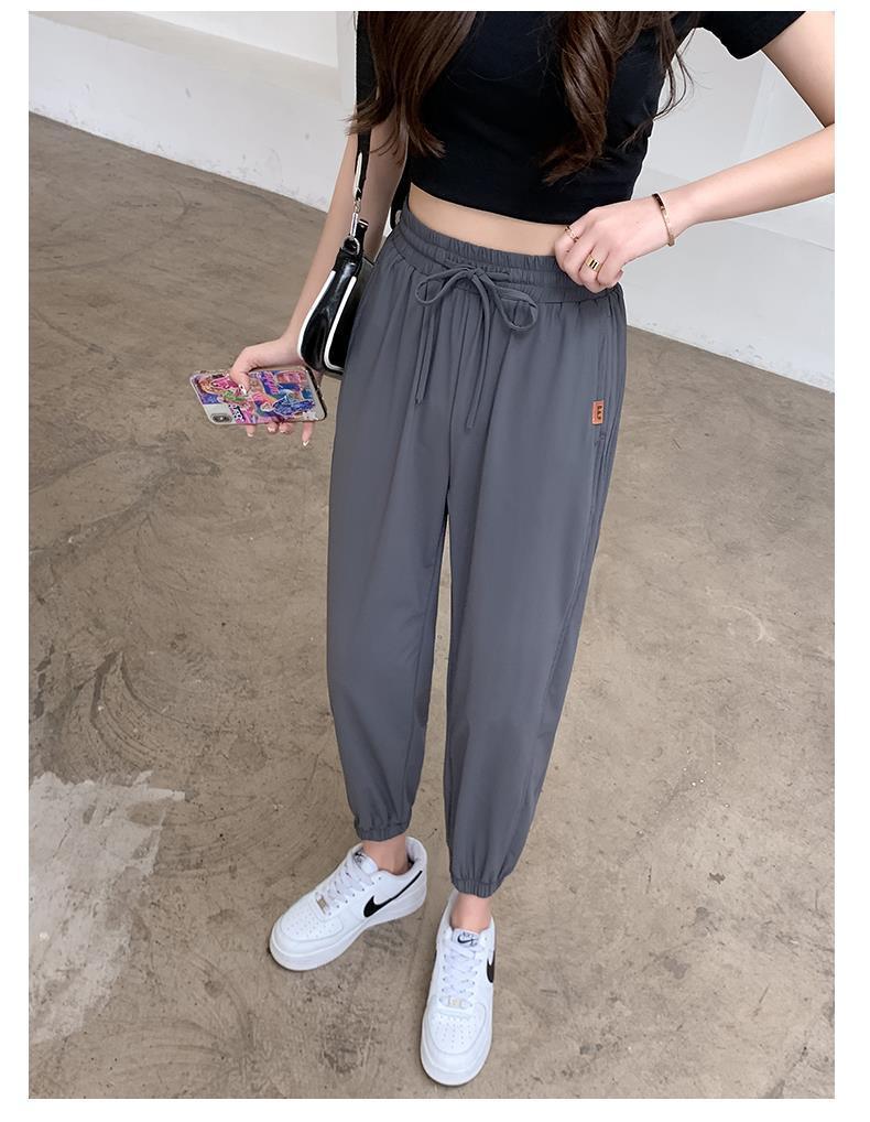 Pantalones Deportivos Grises de Secado Rápido de Seda de Hielo para Mujer, Verano, Delgados, Cortos, Talla Pequeña, Pierna Suelta, Anti-mosquitos, Bombachos Harem