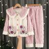Pijamas gruesos para niños con forro polar 2024 para niñas otoño e invierno de forro polar de coral tipo cárdigan de dibujos animados dulces para niños medianos y grandes para estar en casa