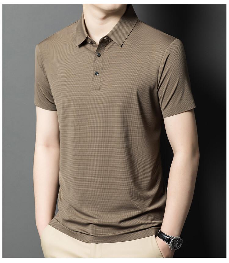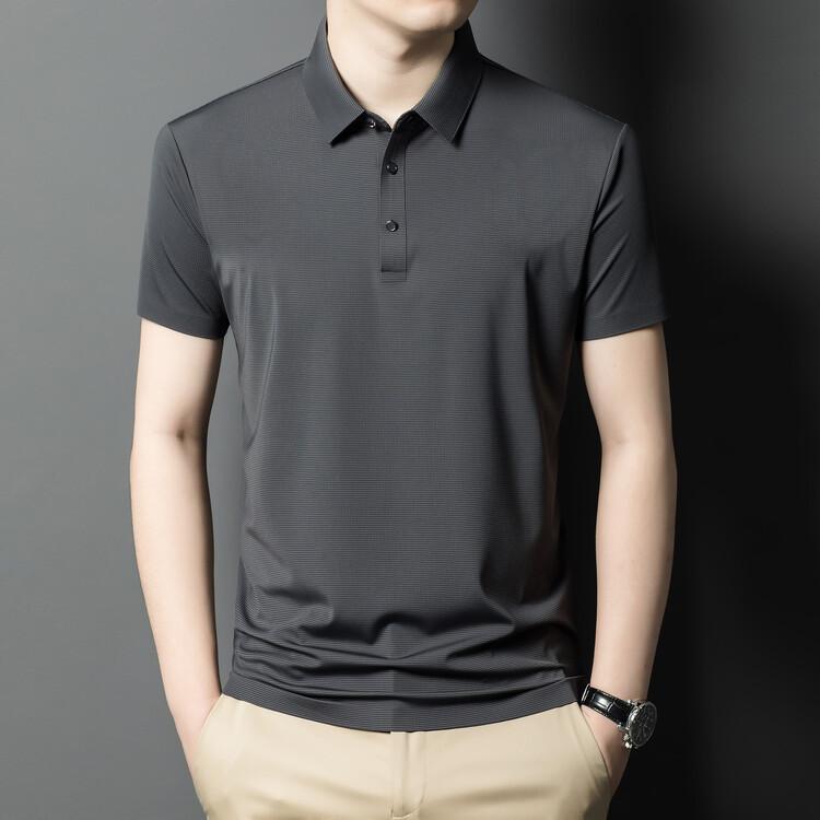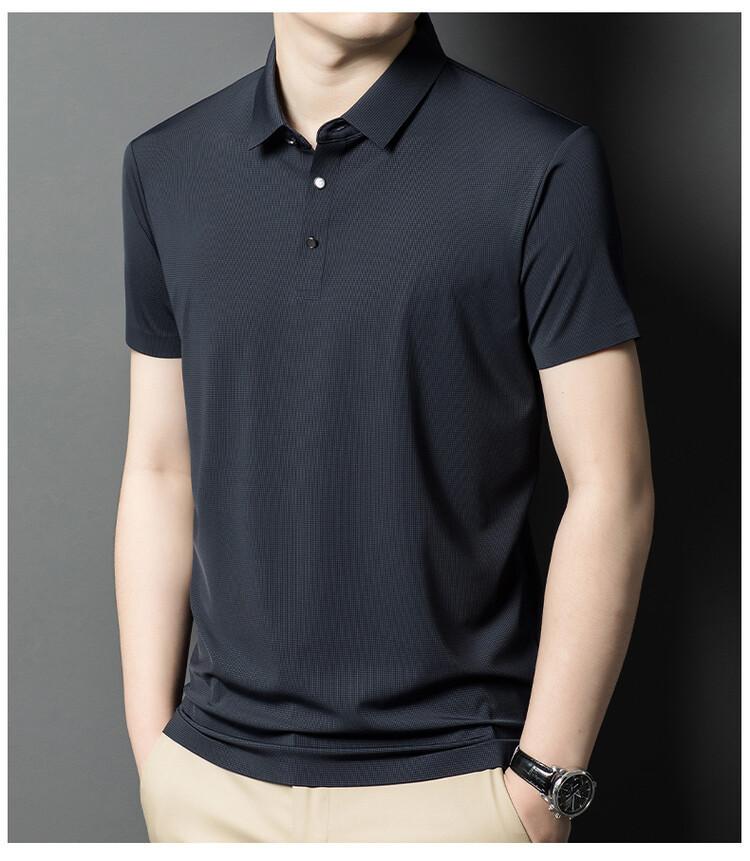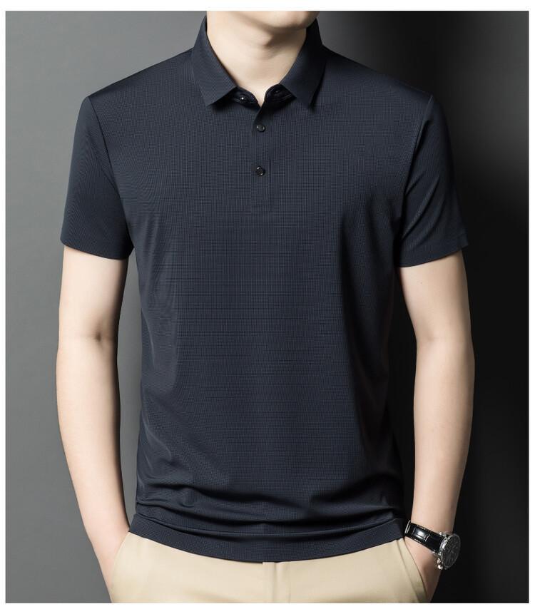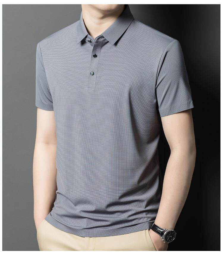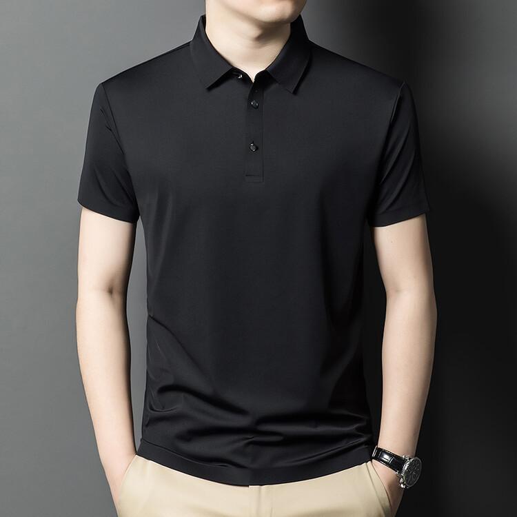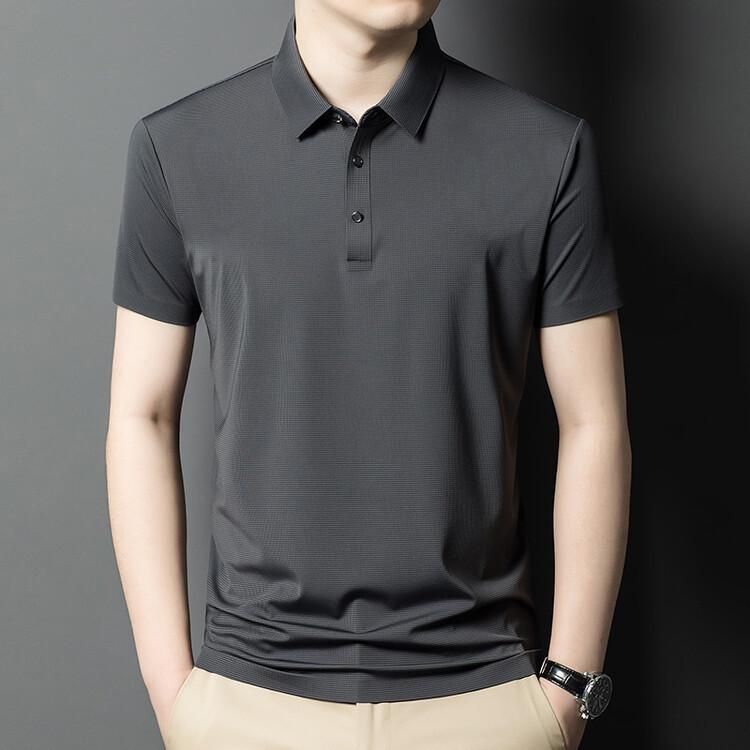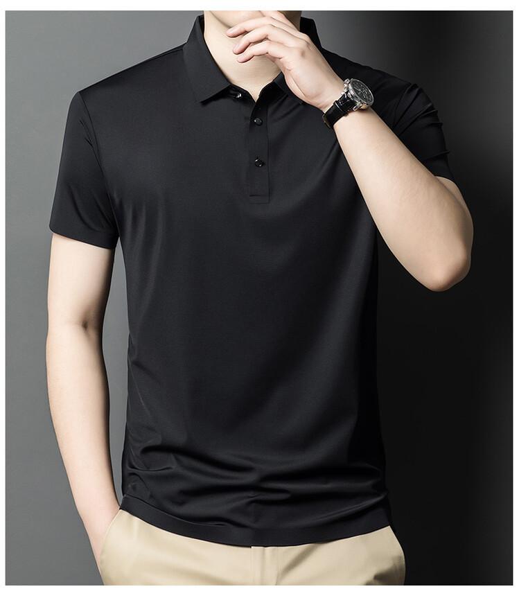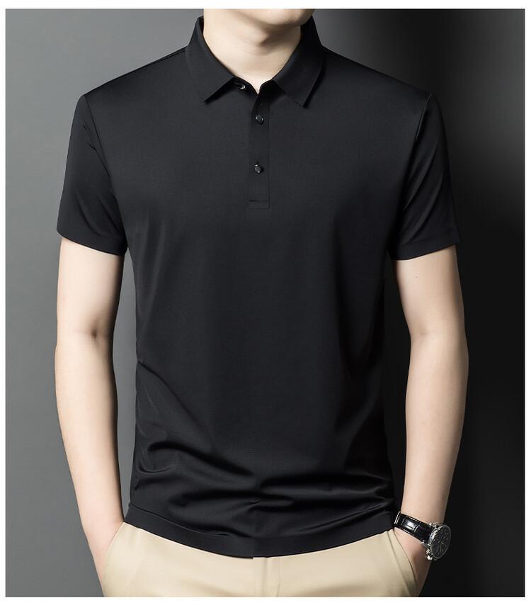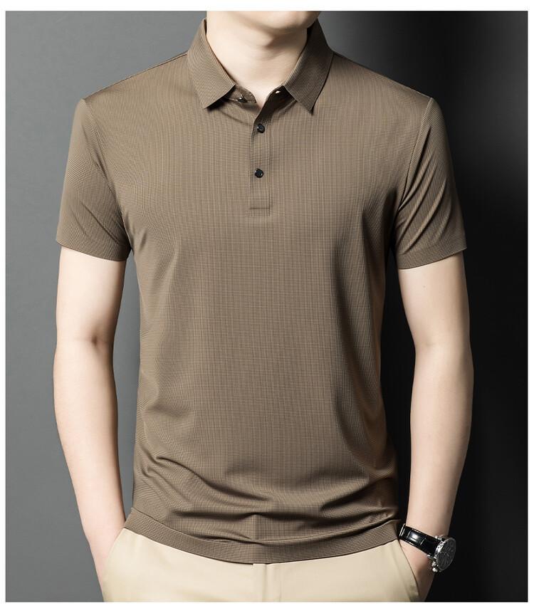 Polo de seda de hielo para hombre, camiseta informal fina de manga corta de verano, ligera, de negocios, de seda de hielo, top fino