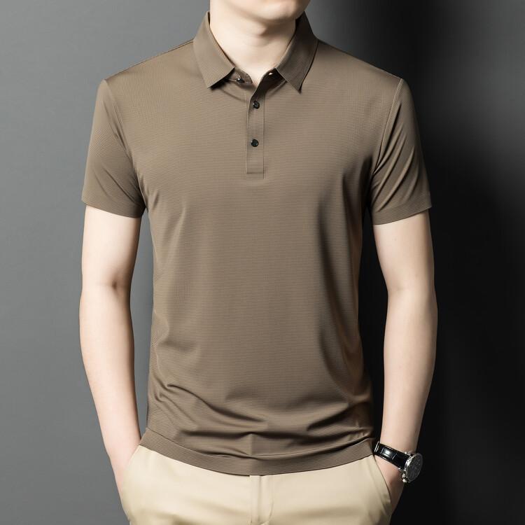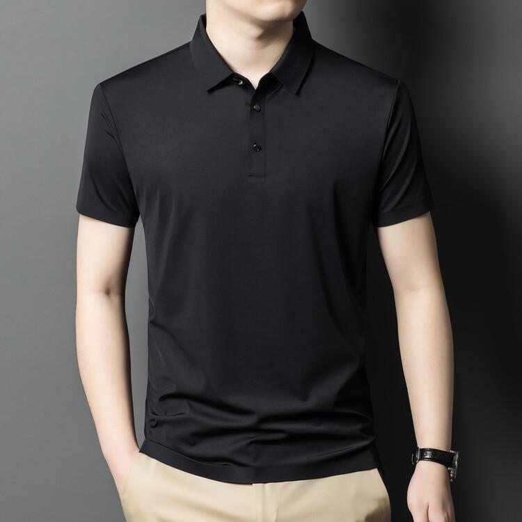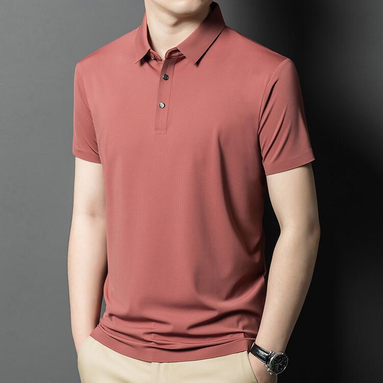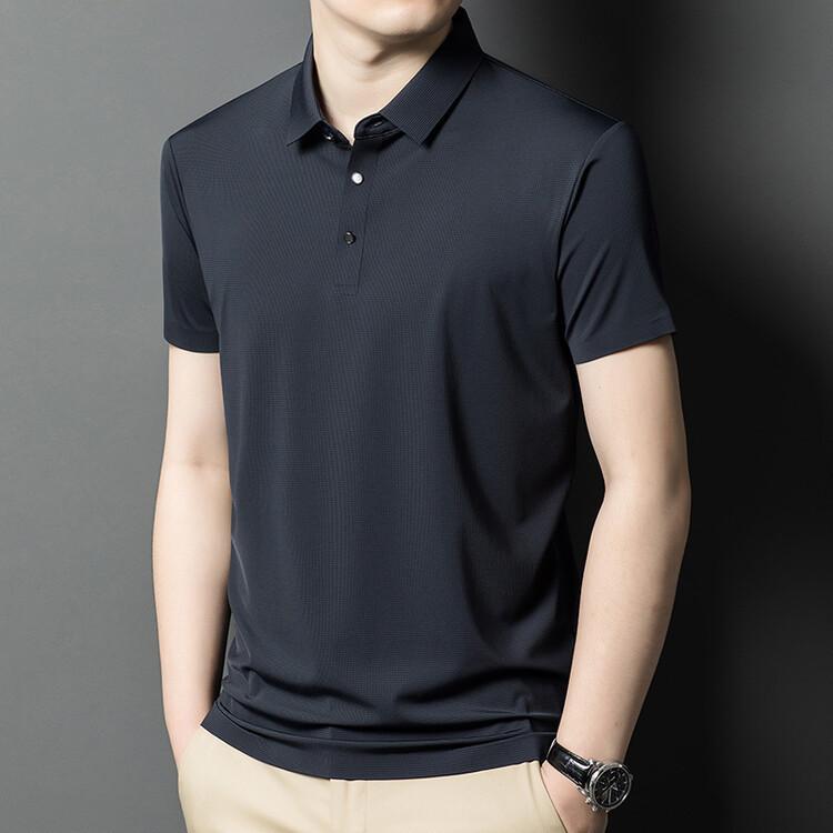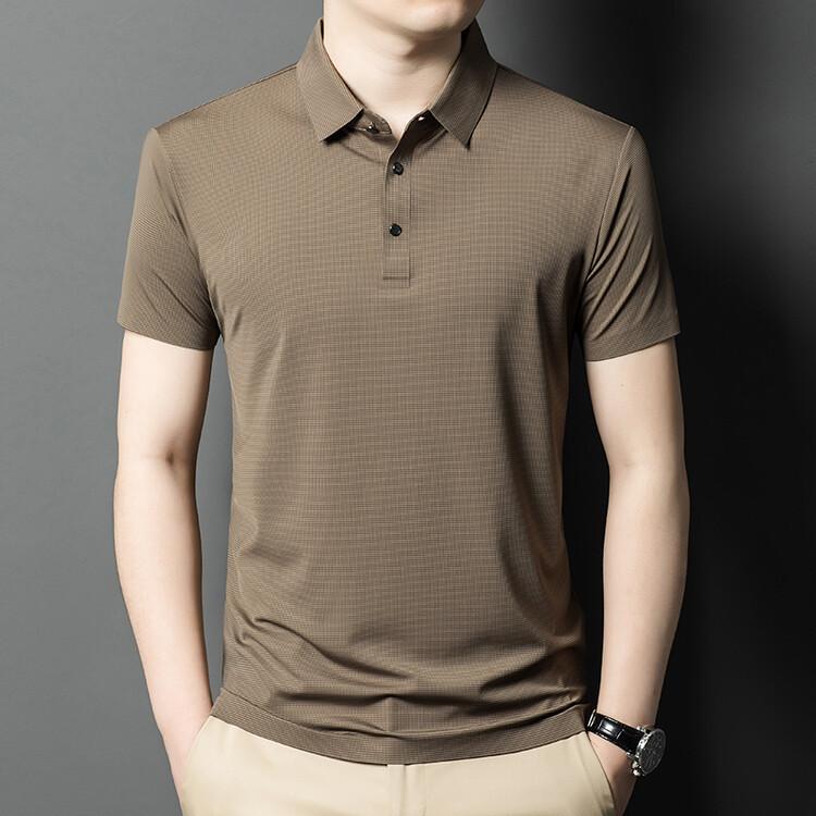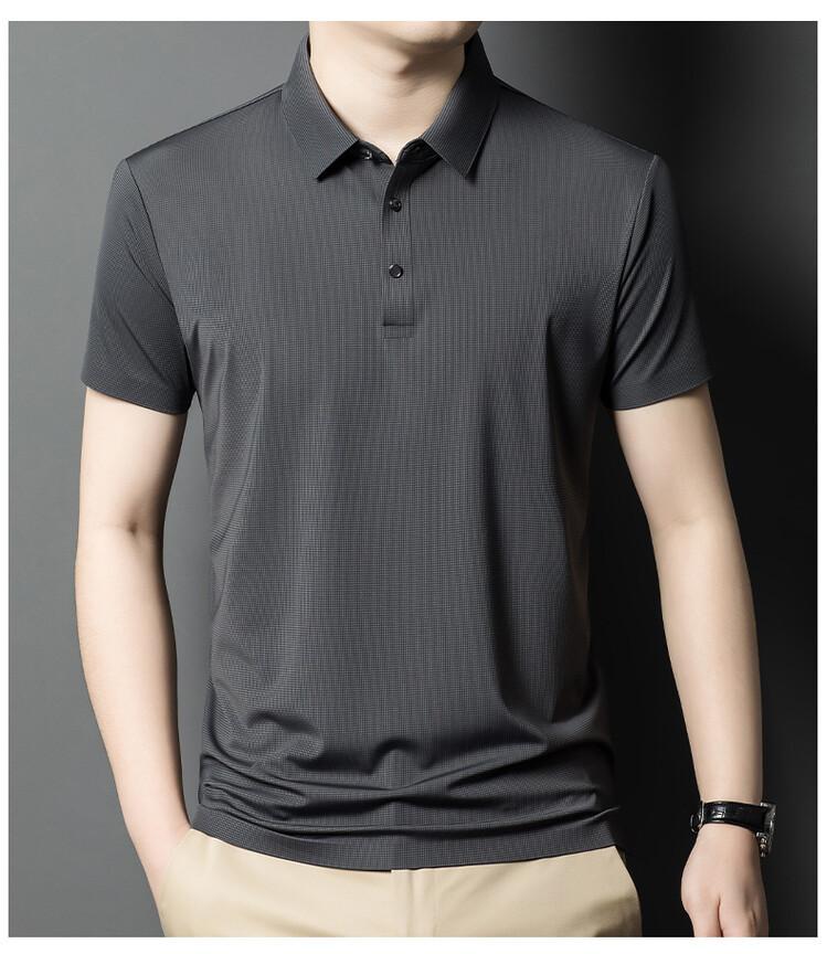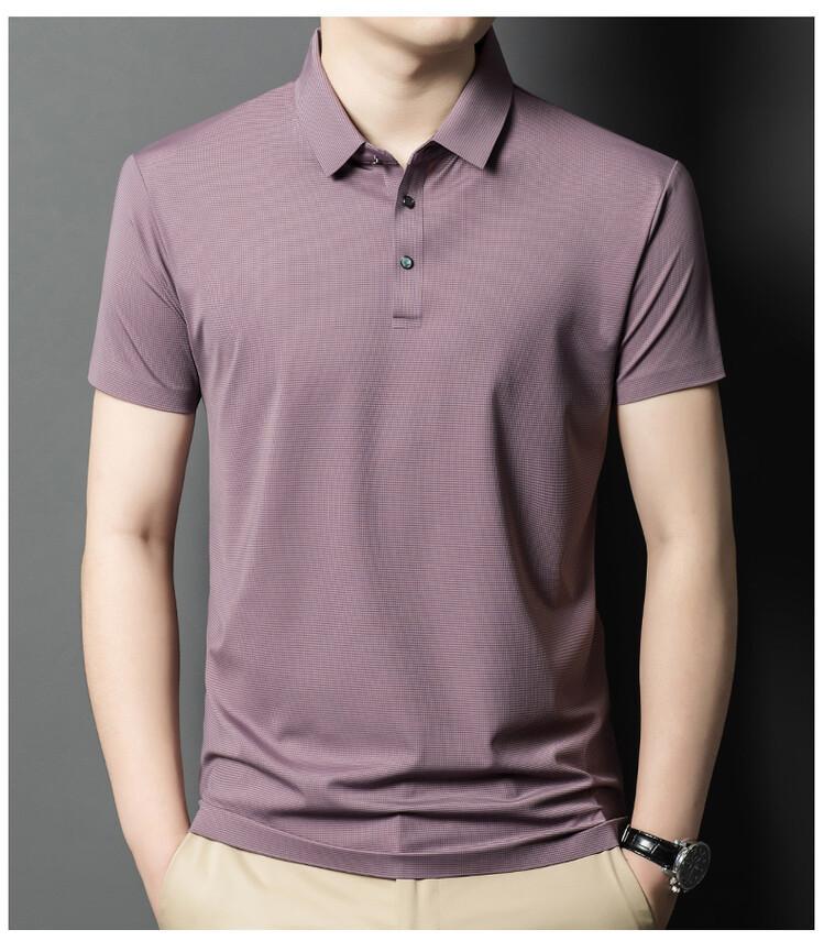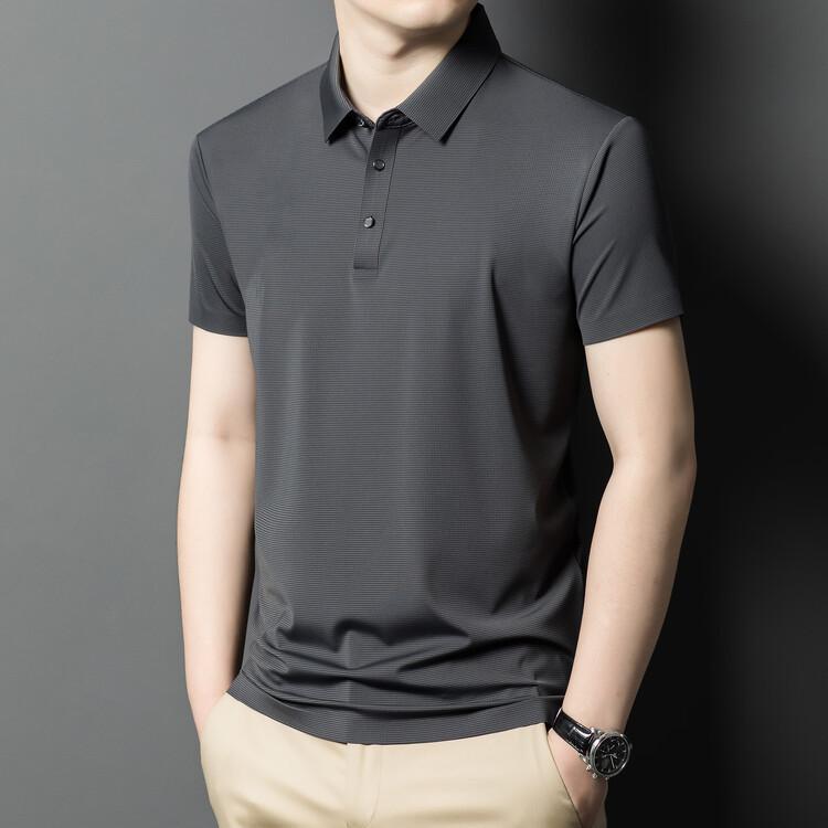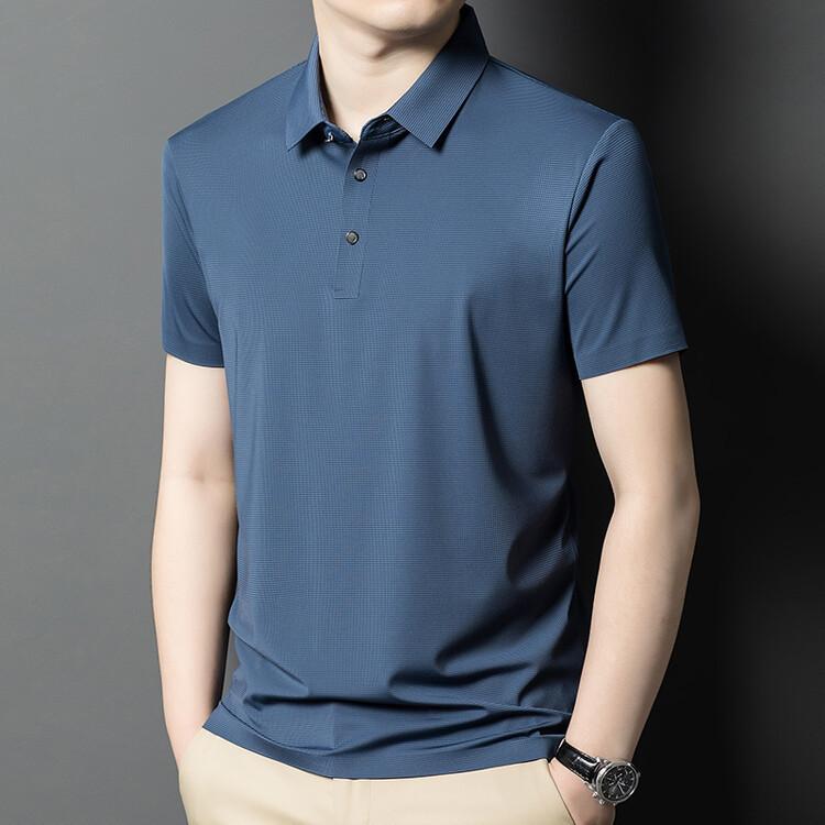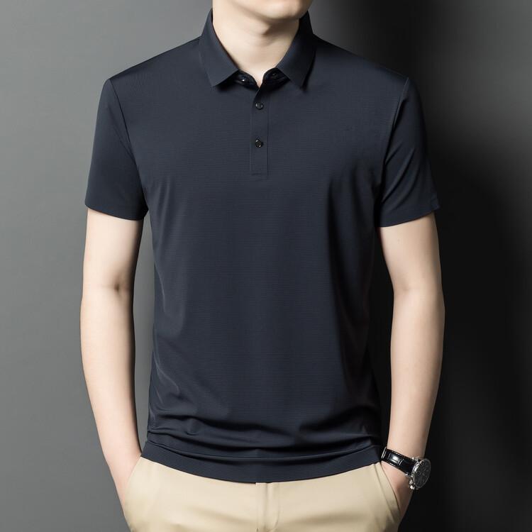 Polo de seda de hielo para hombre, camiseta informal fina de manga corta de verano, ligera, de negocios, de seda de hielo, top fino