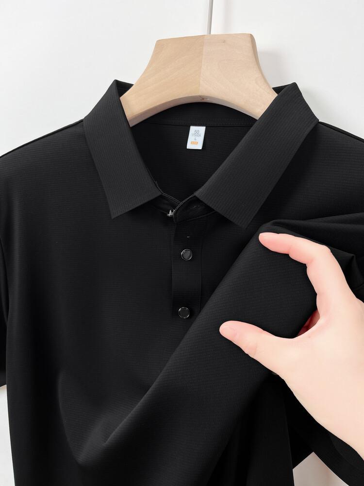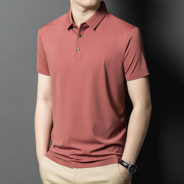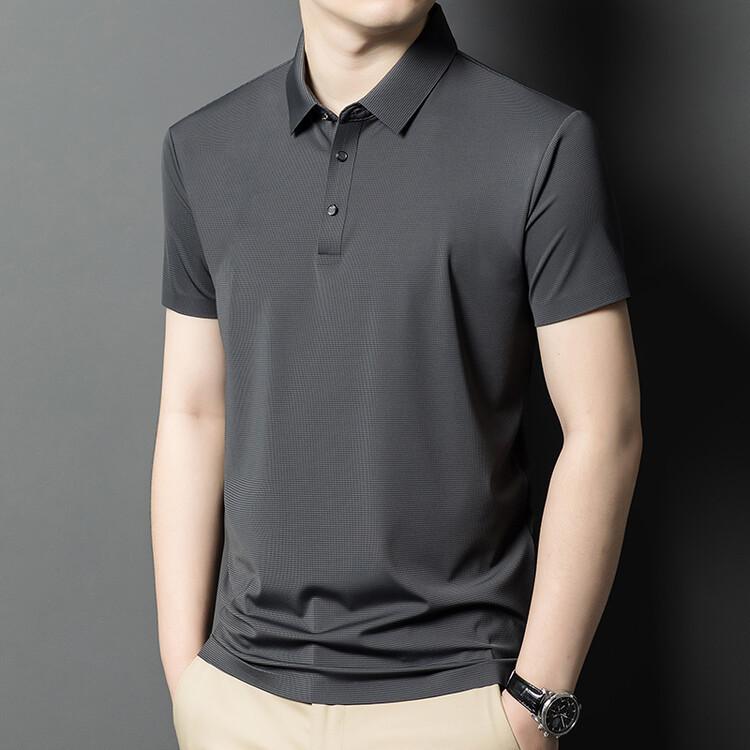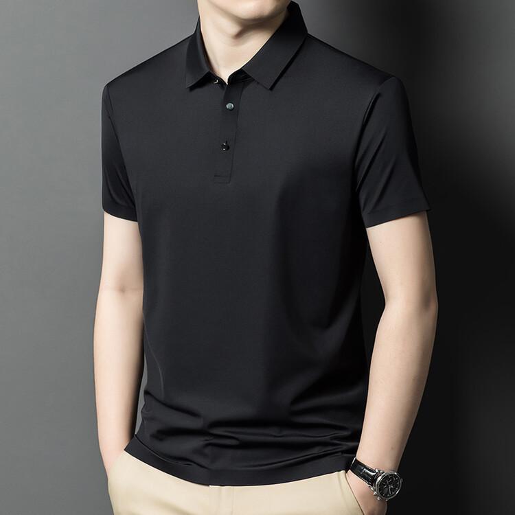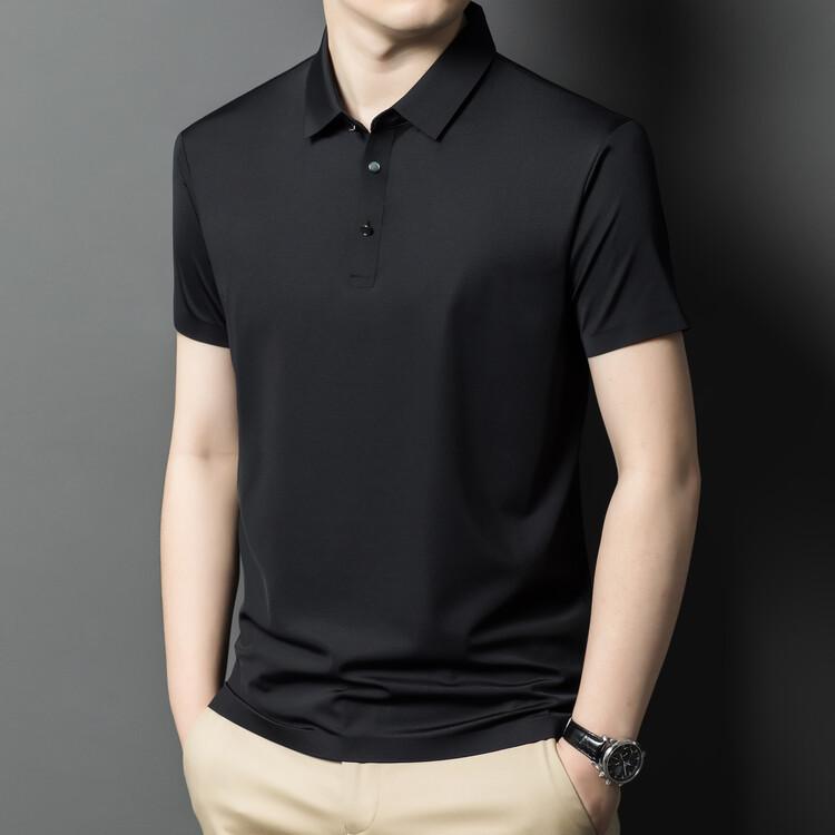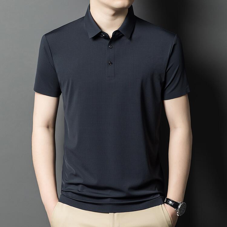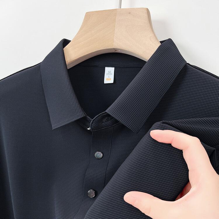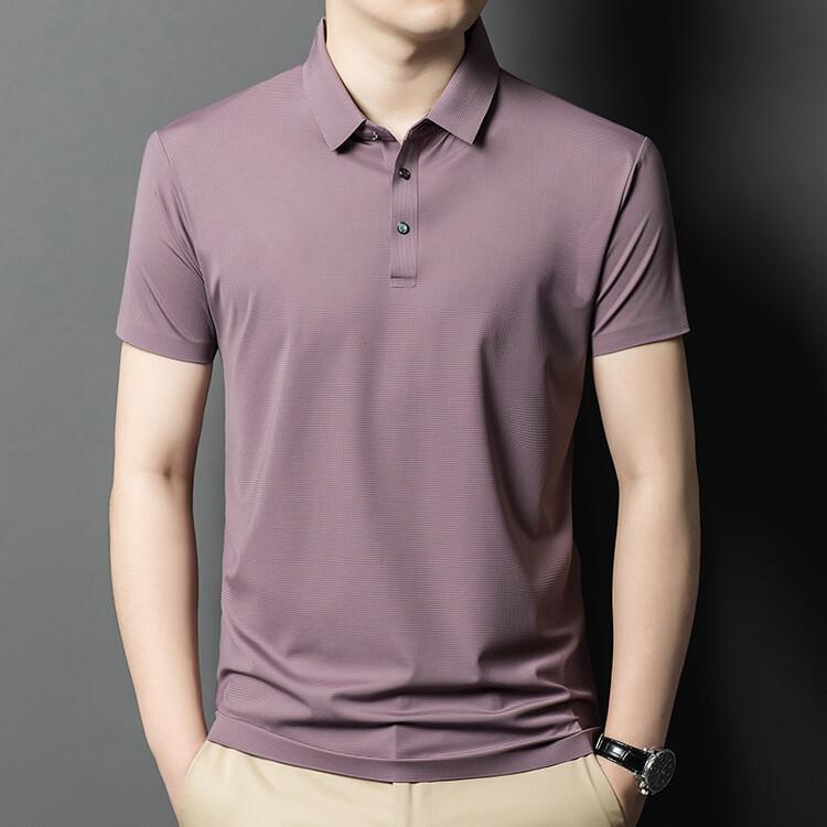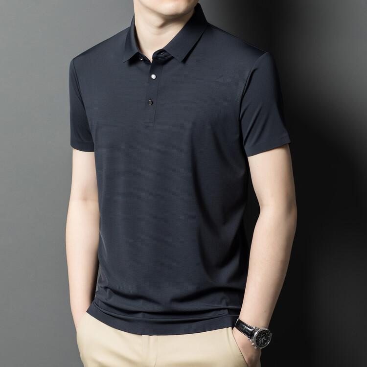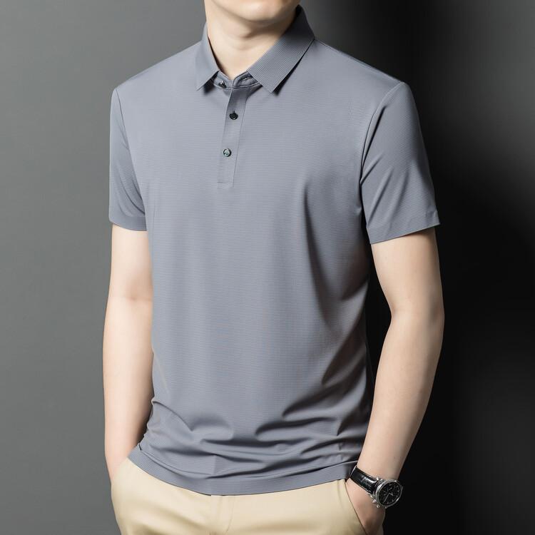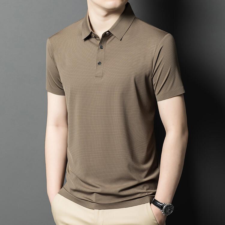 Polo de seda de hielo para hombre, camiseta informal fina de manga corta de verano, ligera, de negocios, de seda de hielo, top fino