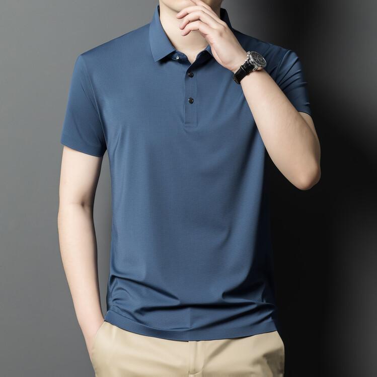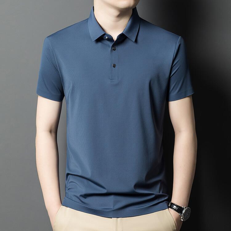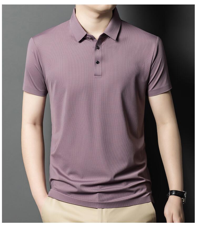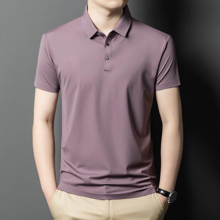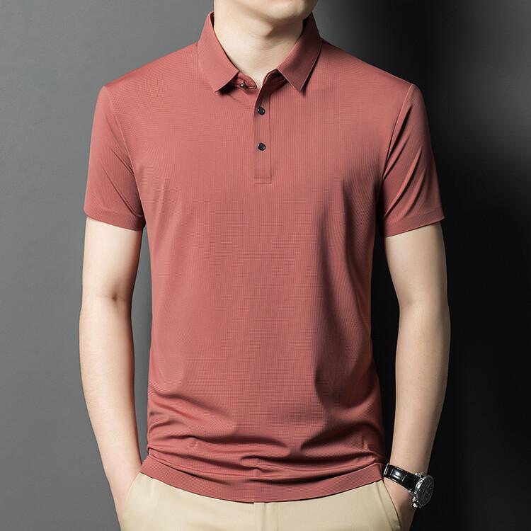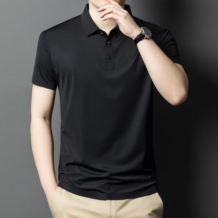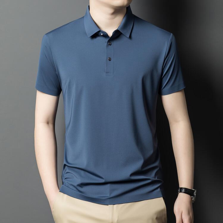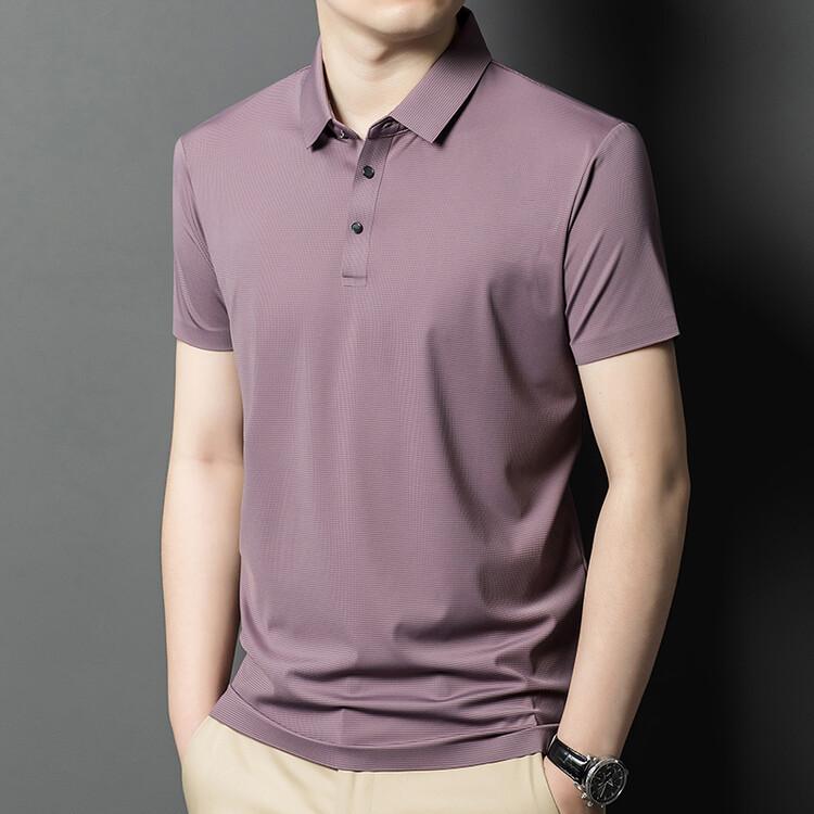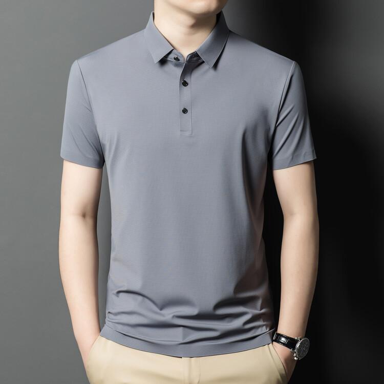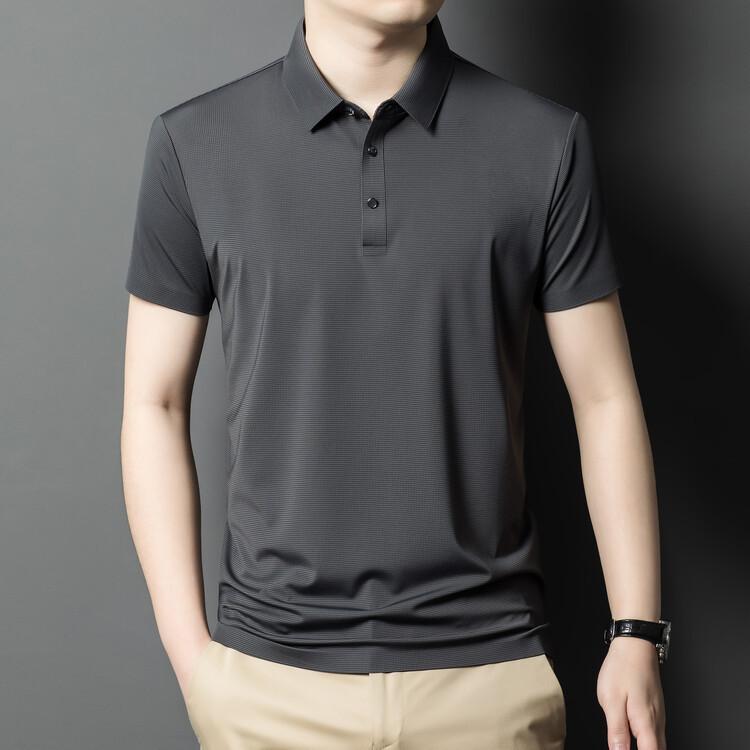 Polo de seda de hielo para hombre, camiseta informal fina de manga corta de verano, ligera, de negocios, de seda de hielo, top fino