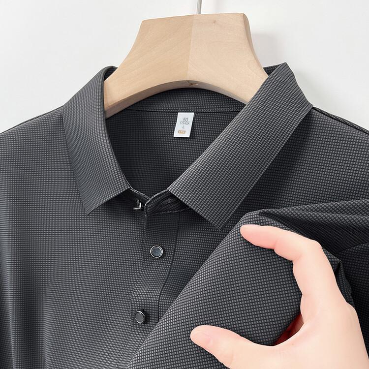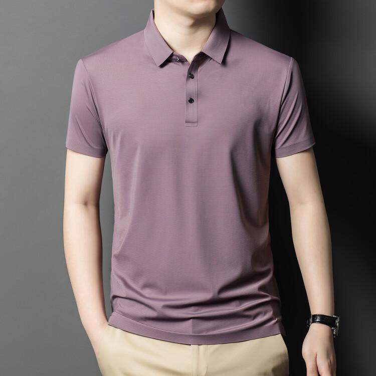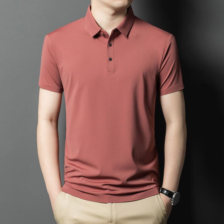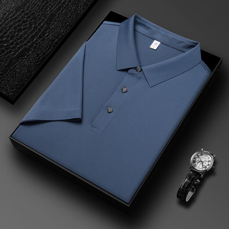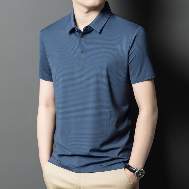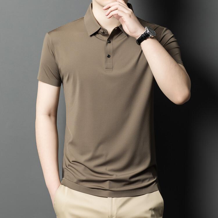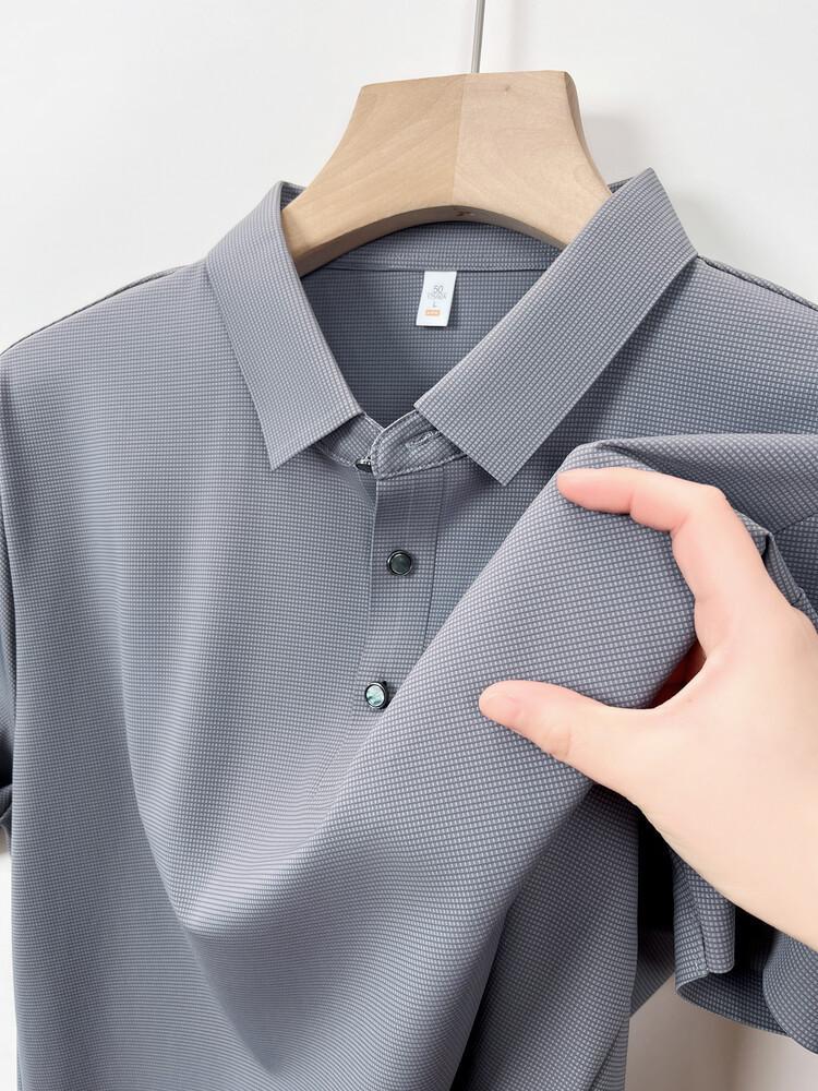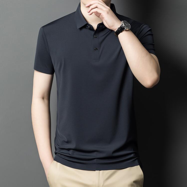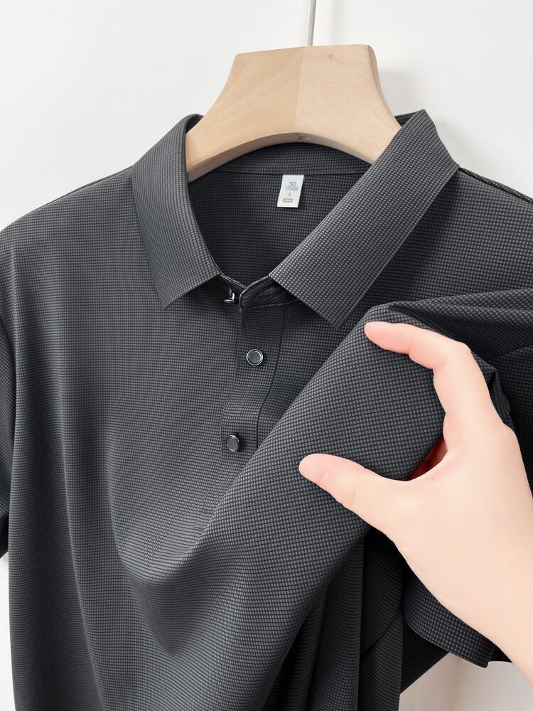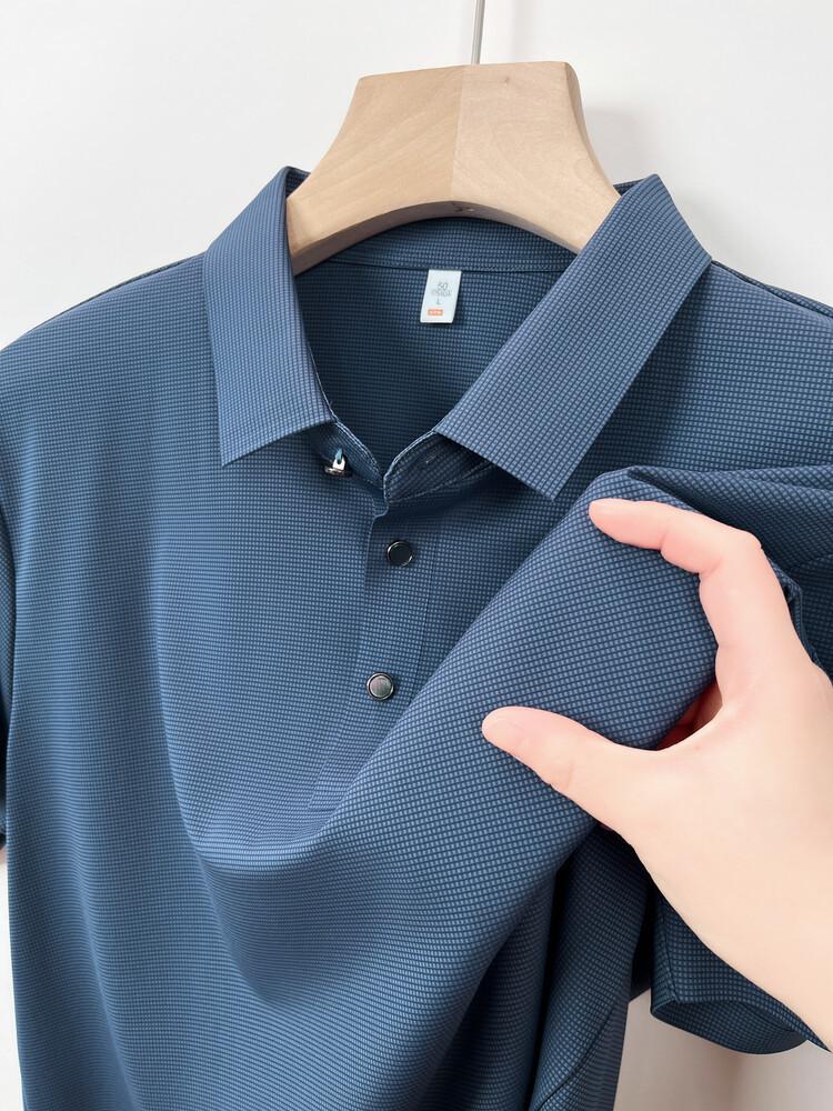 Polo de seda de hielo para hombre, camiseta informal fina de manga corta de verano, ligera, de negocios, de seda de hielo, top fino