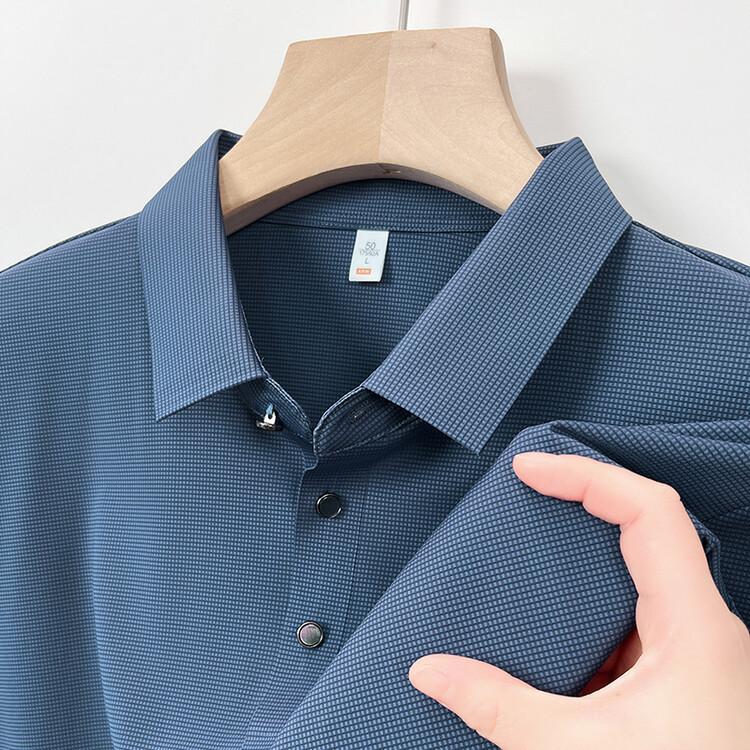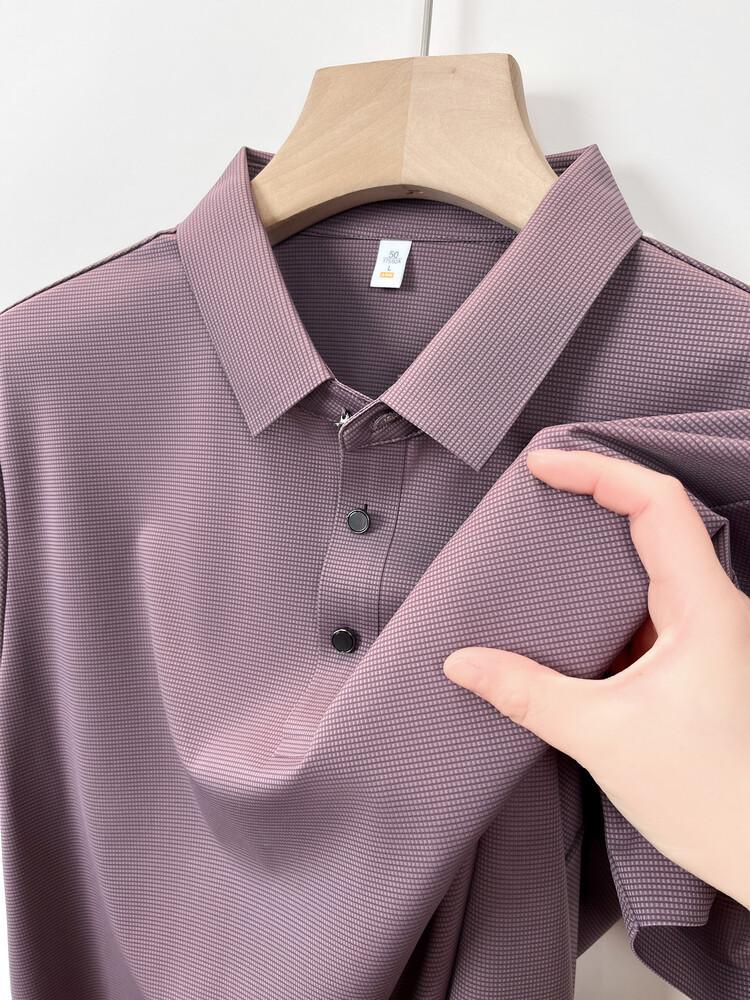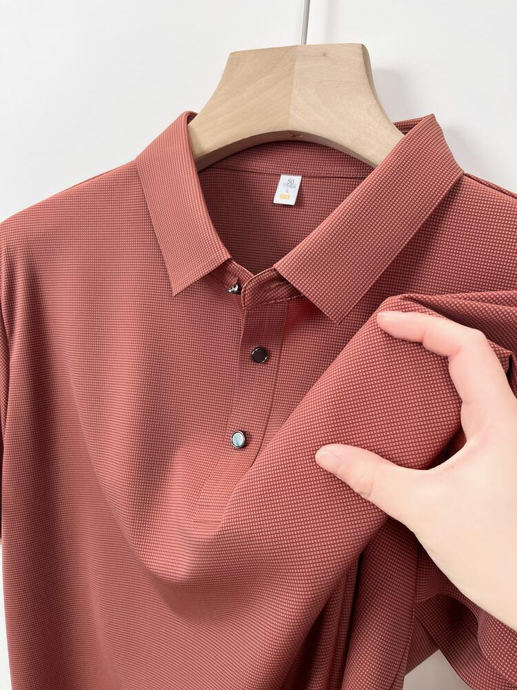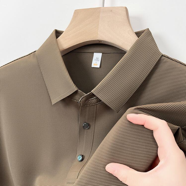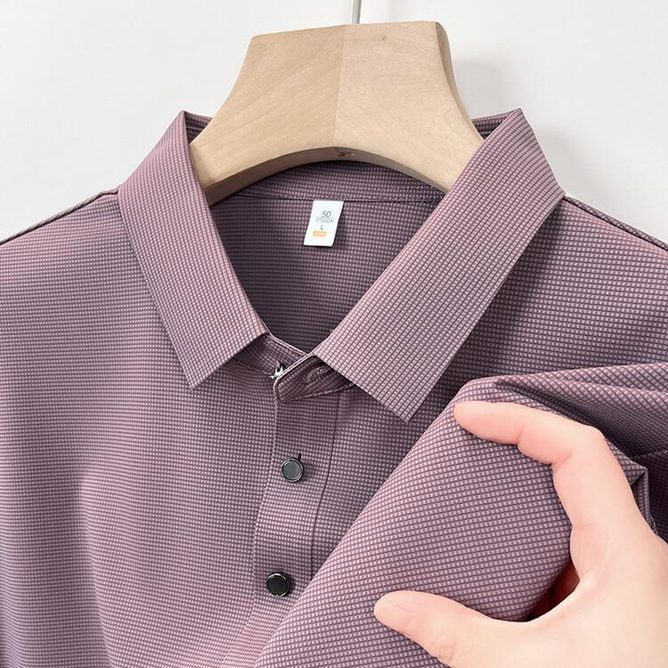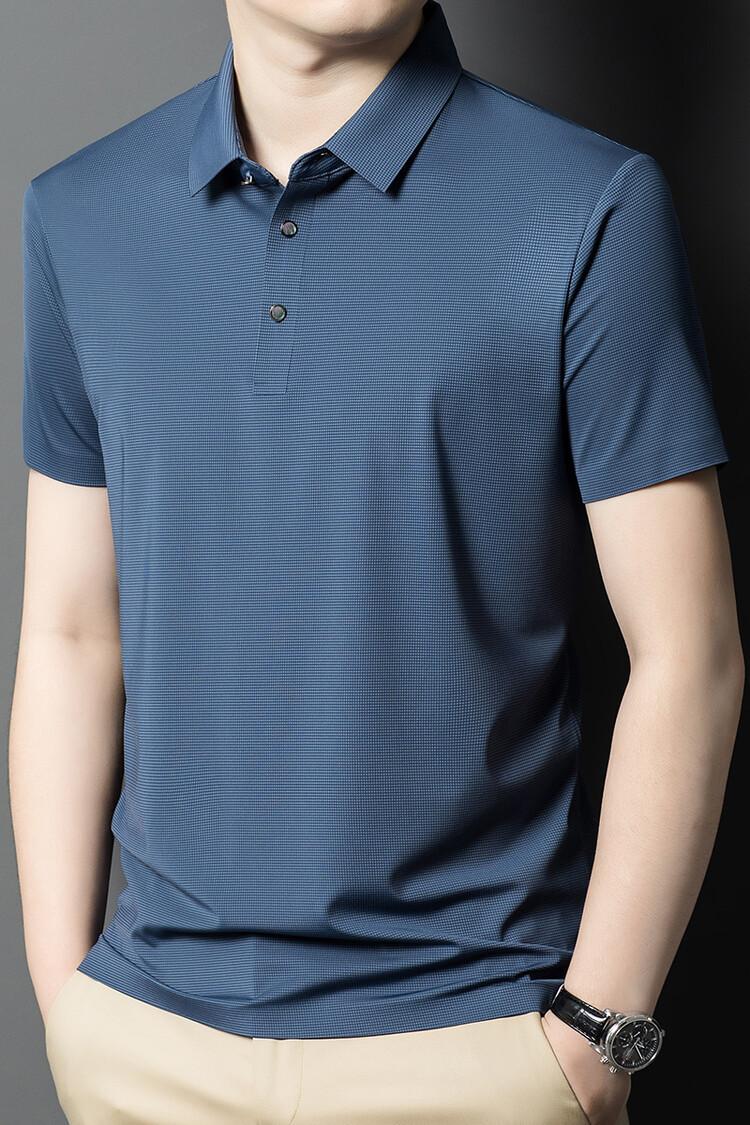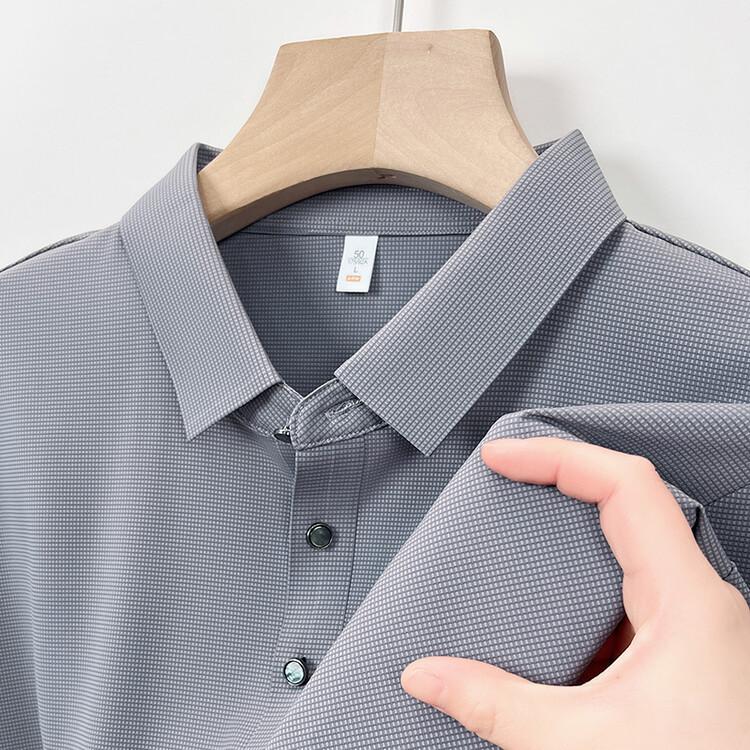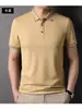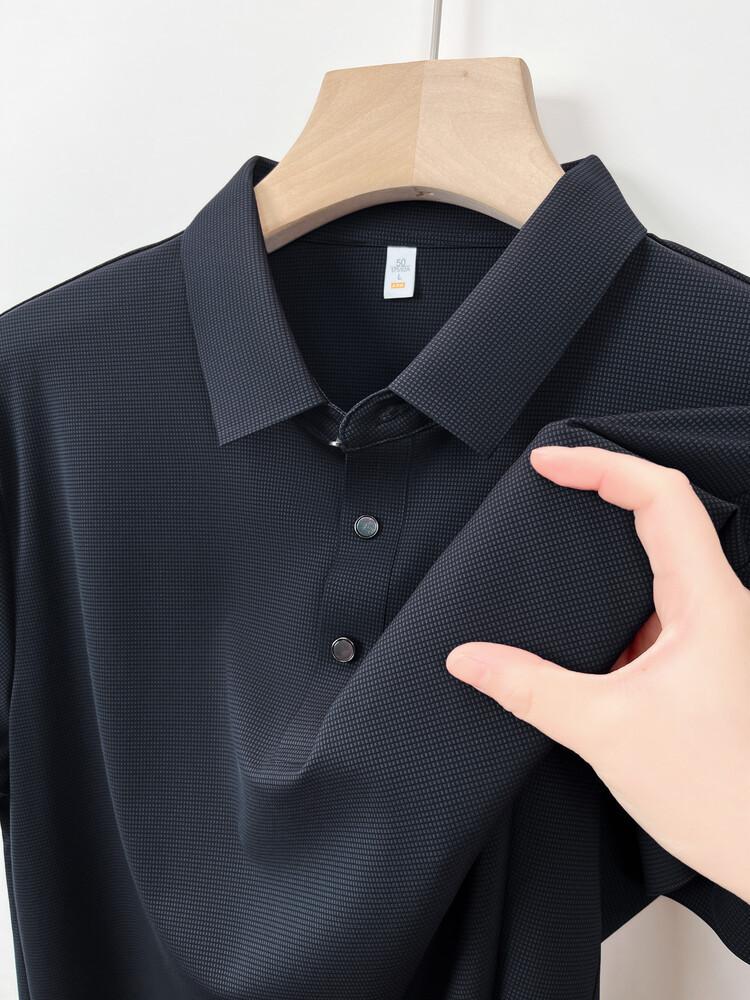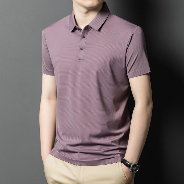 Polo de seda de hielo para hombre, camiseta informal fina de manga corta de verano, ligera, de negocios, de seda de hielo, top fino