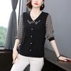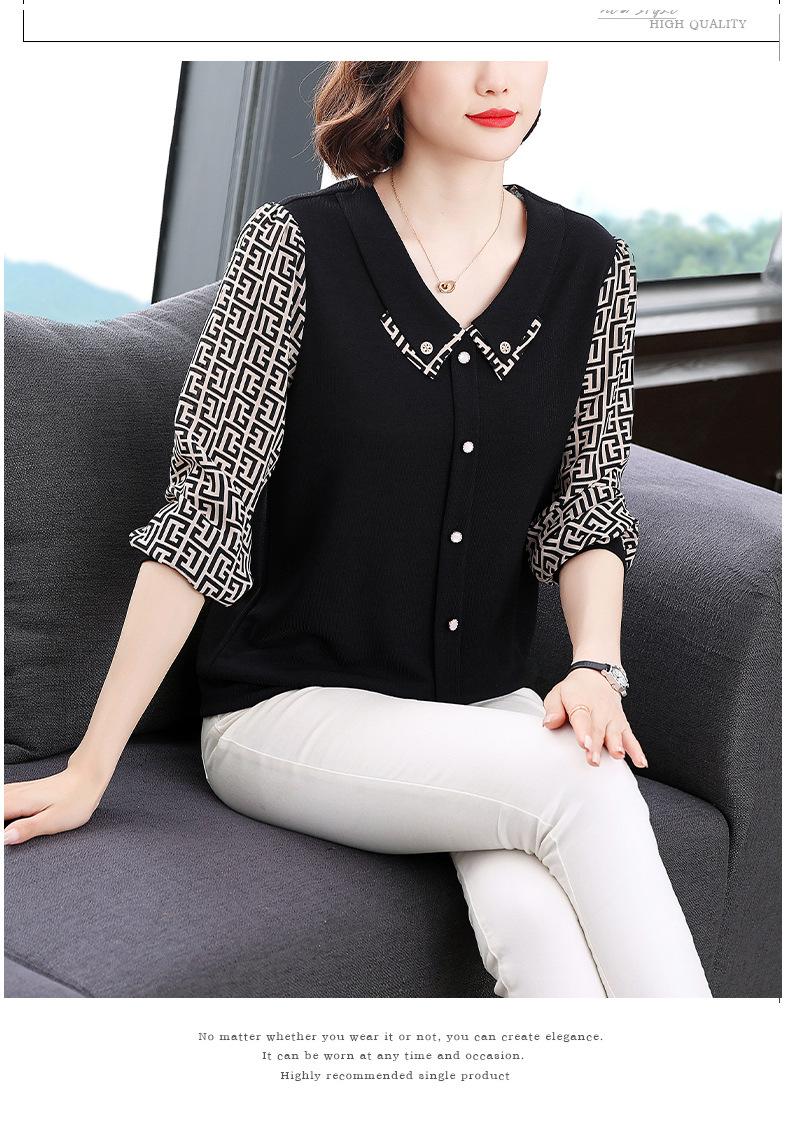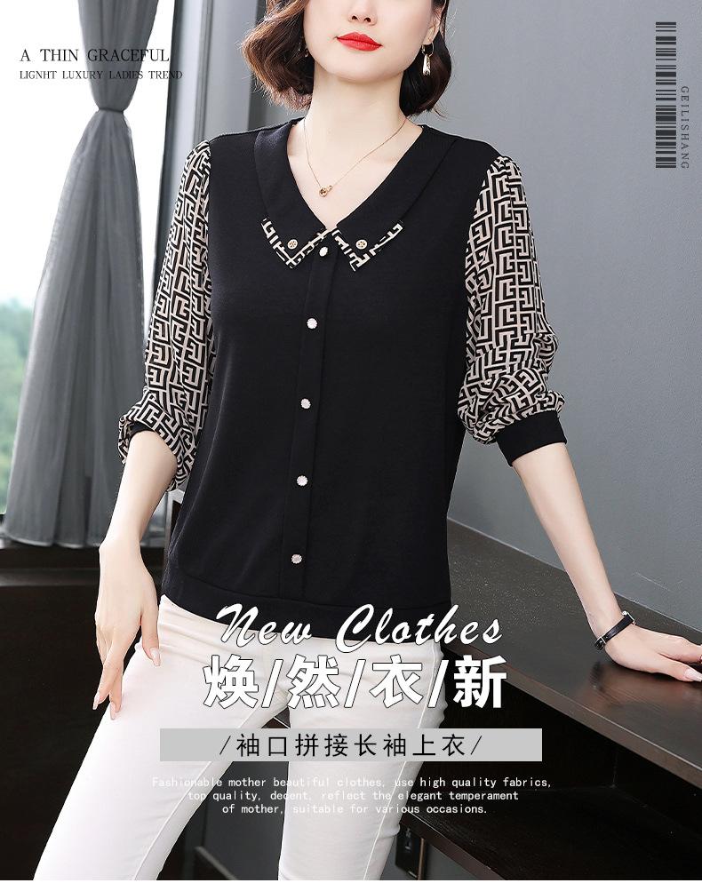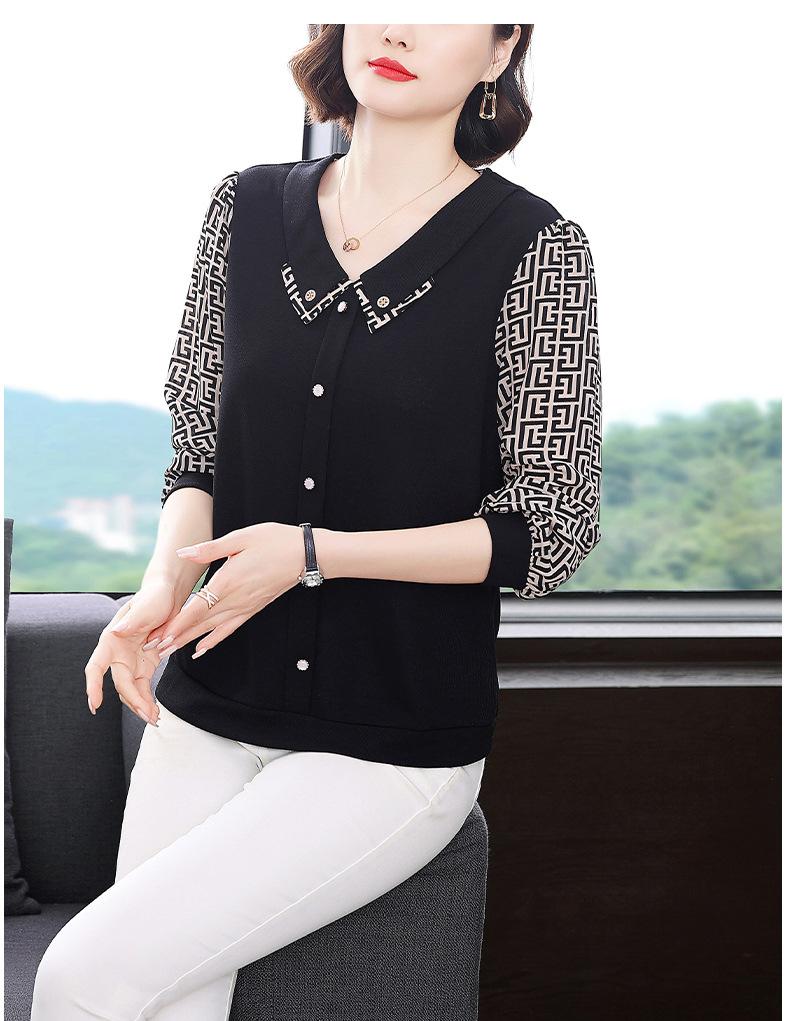 Camiseta de primavera para mujer de 2023, nueva moda, combinable con todo, estilo occidental, cuello pequeño, camiseta elegante para mujer de mediana edad
