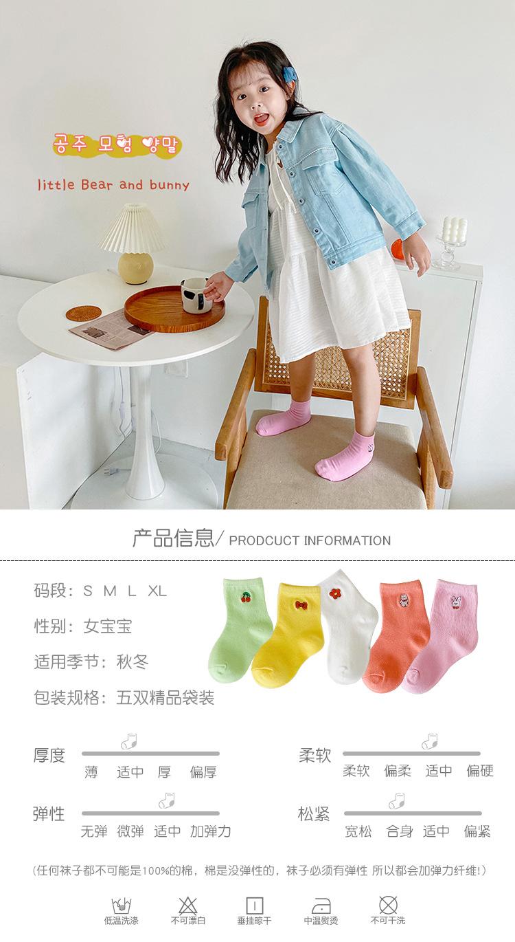 Calcetines para Niños 24 Otoño e Invierno Nuevo Estilo Calcetines de Bebé Versión Coreana Calcetines de Moda para Estudiantes Bordado de Dibujos Animados Algodón Tubo Corto Princesa para Niñas