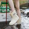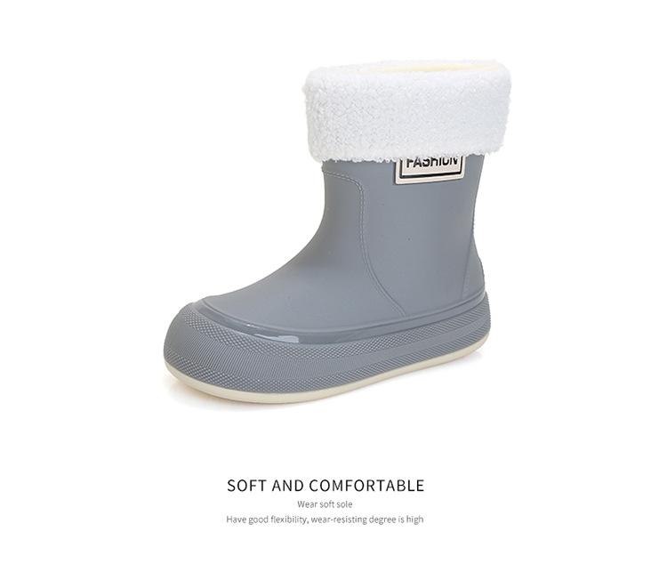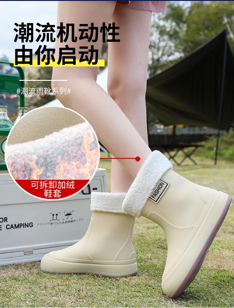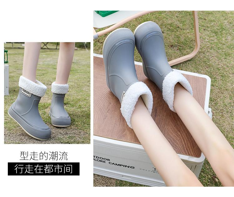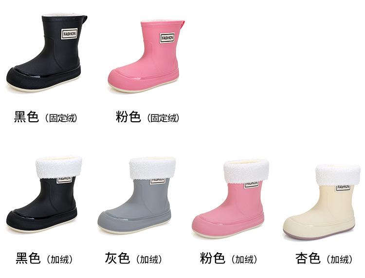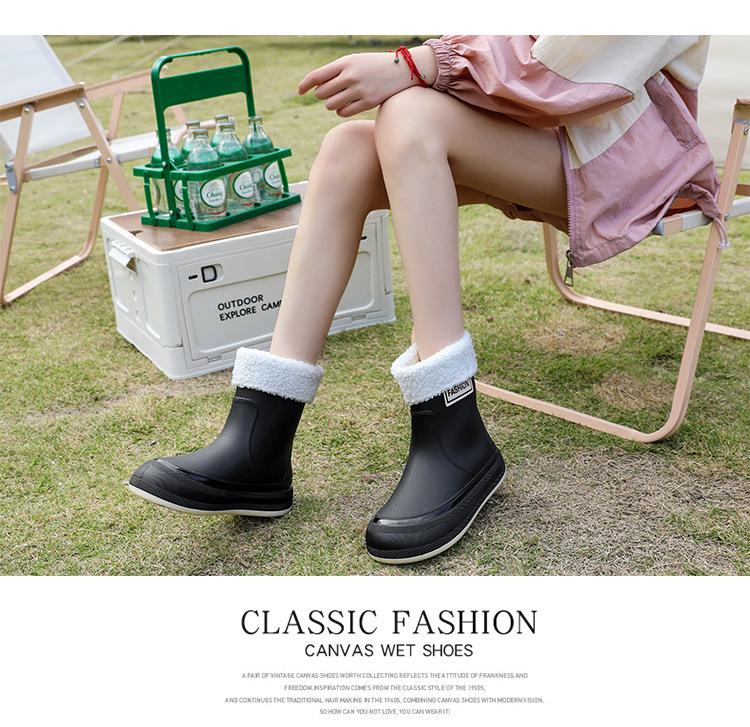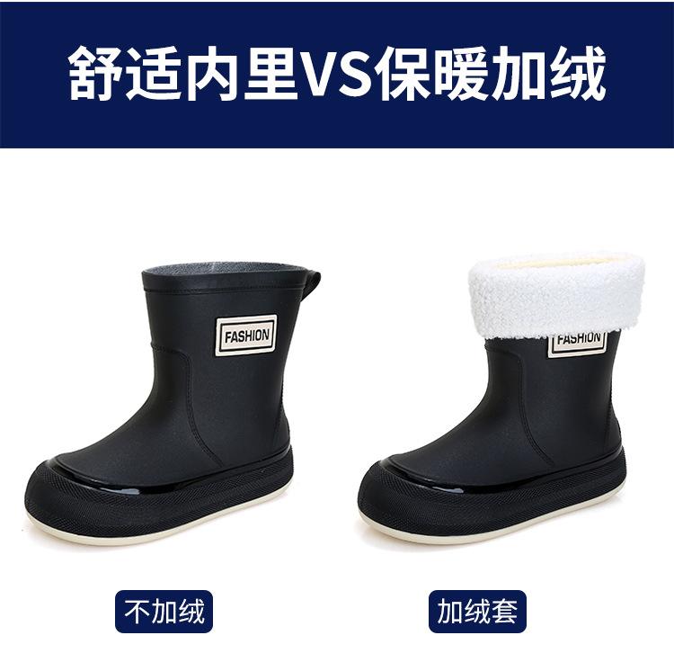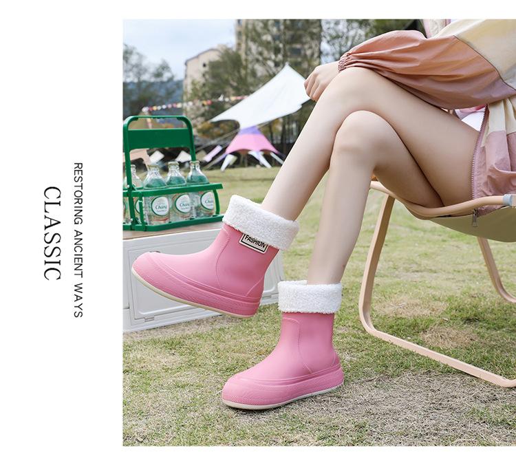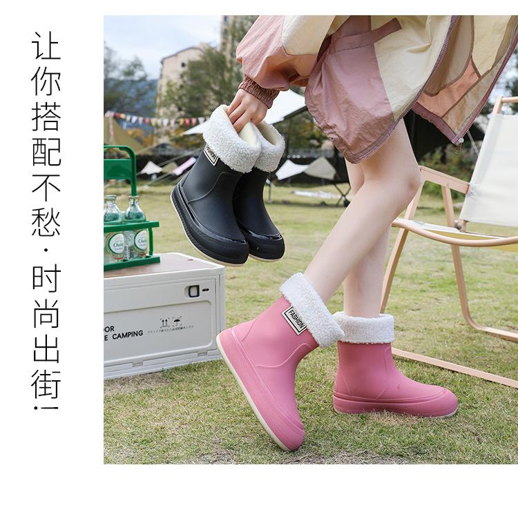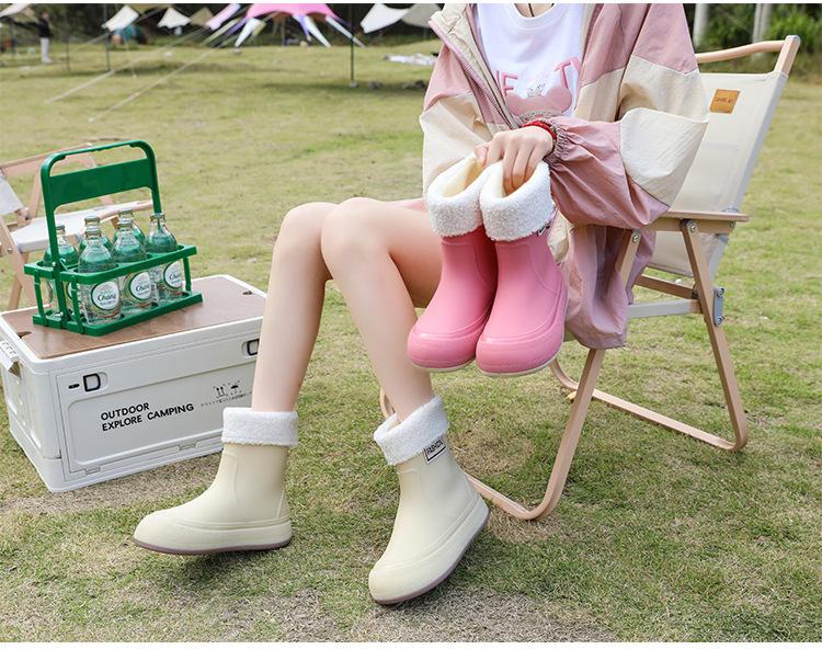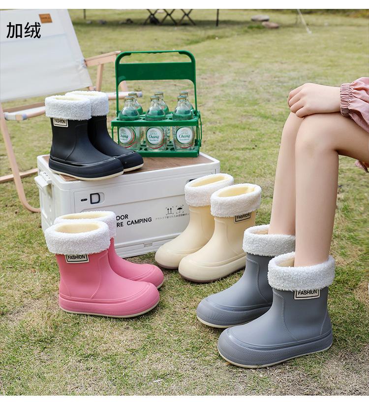 Botas de lluvia de moda para mujer, impermeables, antideslizantes, resistentes al desgaste, de goma, para uso exterior, para estudiantes, para acampar, con forro polar, botas de agua cálidas para mujer, venta al por mayor
