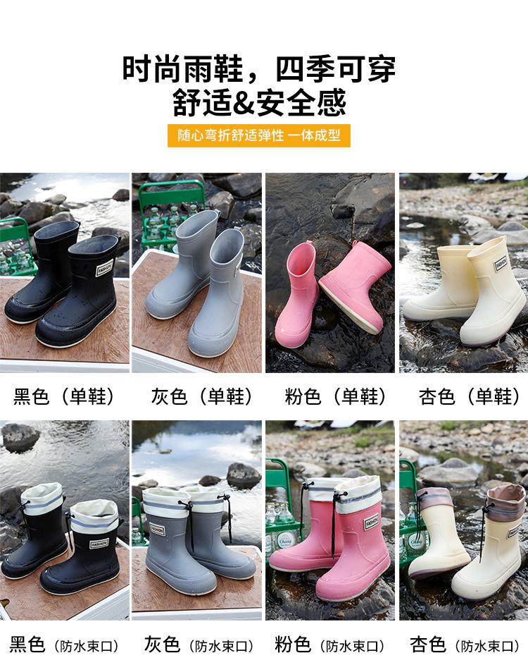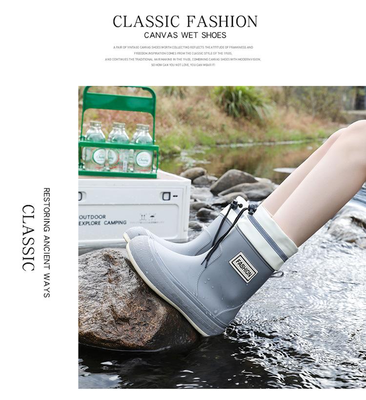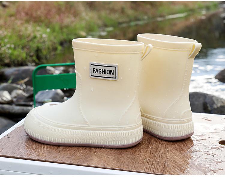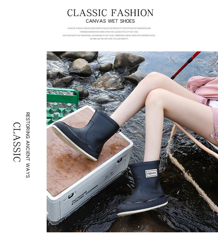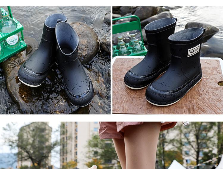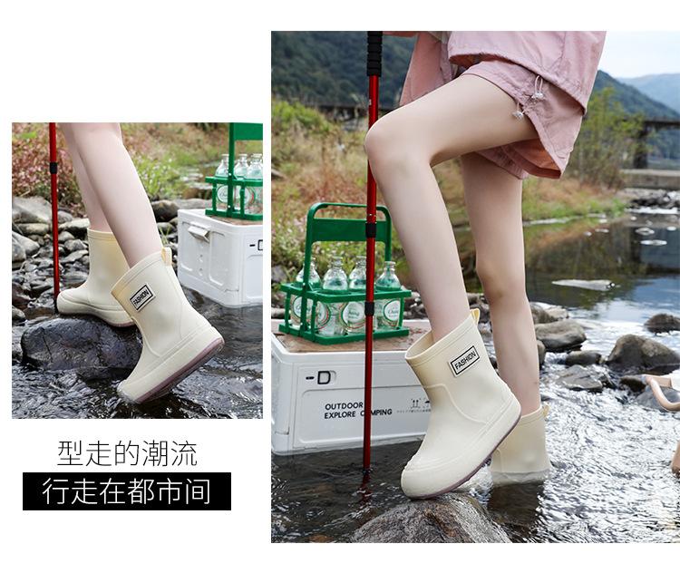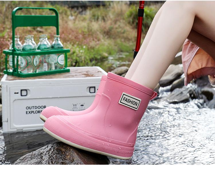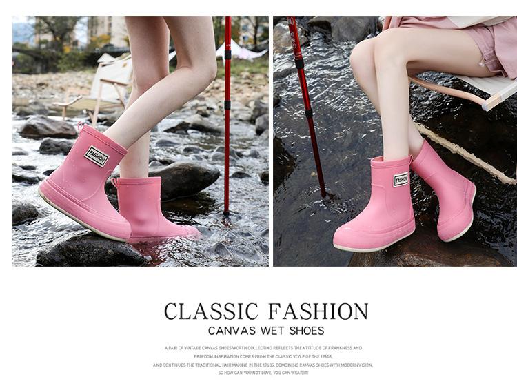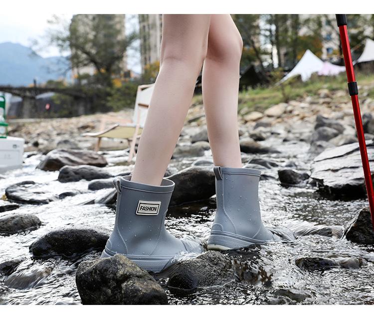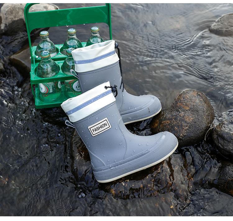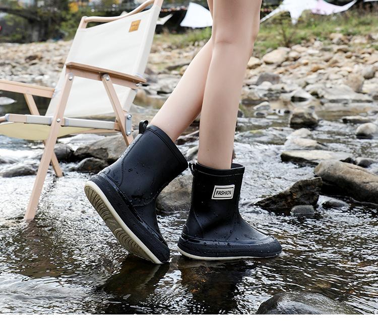 Botas de lluvia de moda para mujer, impermeables, antideslizantes, resistentes al desgaste, de goma, para uso exterior, para estudiantes, para acampar, con forro polar, botas de agua cálidas para mujer, venta al por mayor