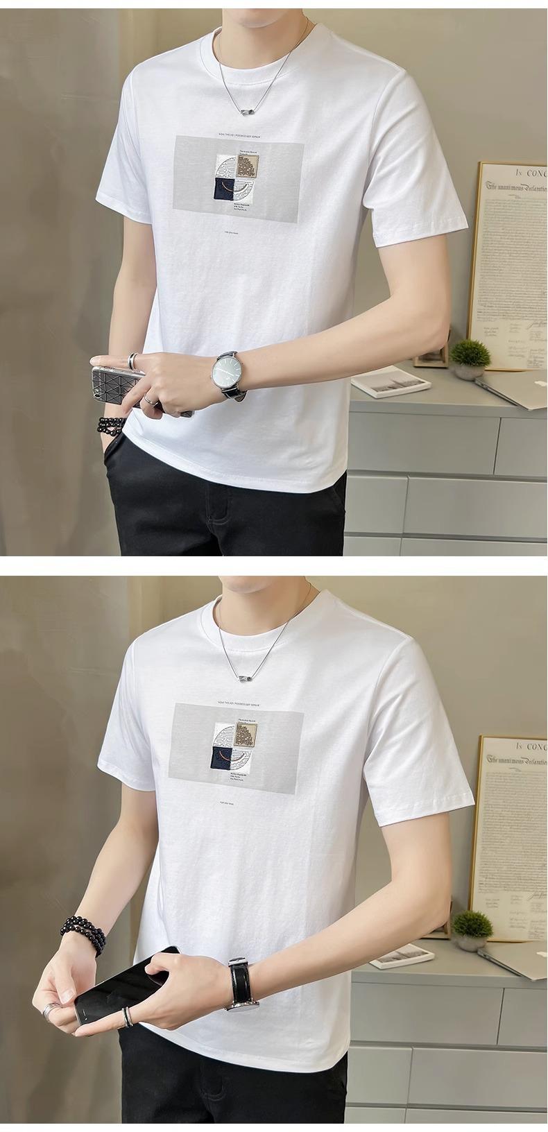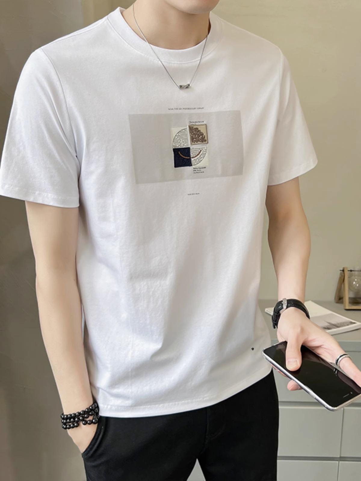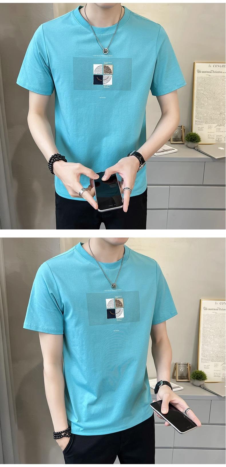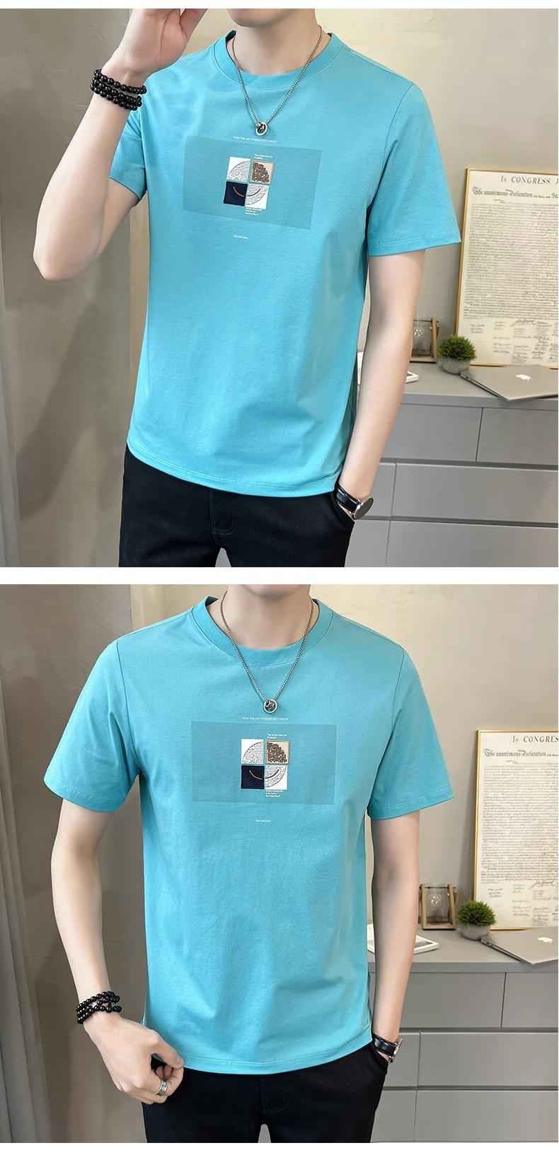 Camiseta de verano de manga corta con cuello redondo para hombre, ajustada, moderna, informal, de algodón con estampado, de media manga para jóvenes.