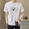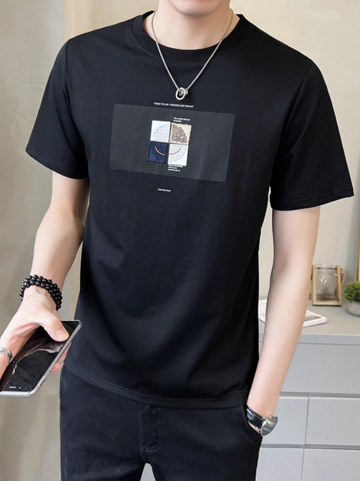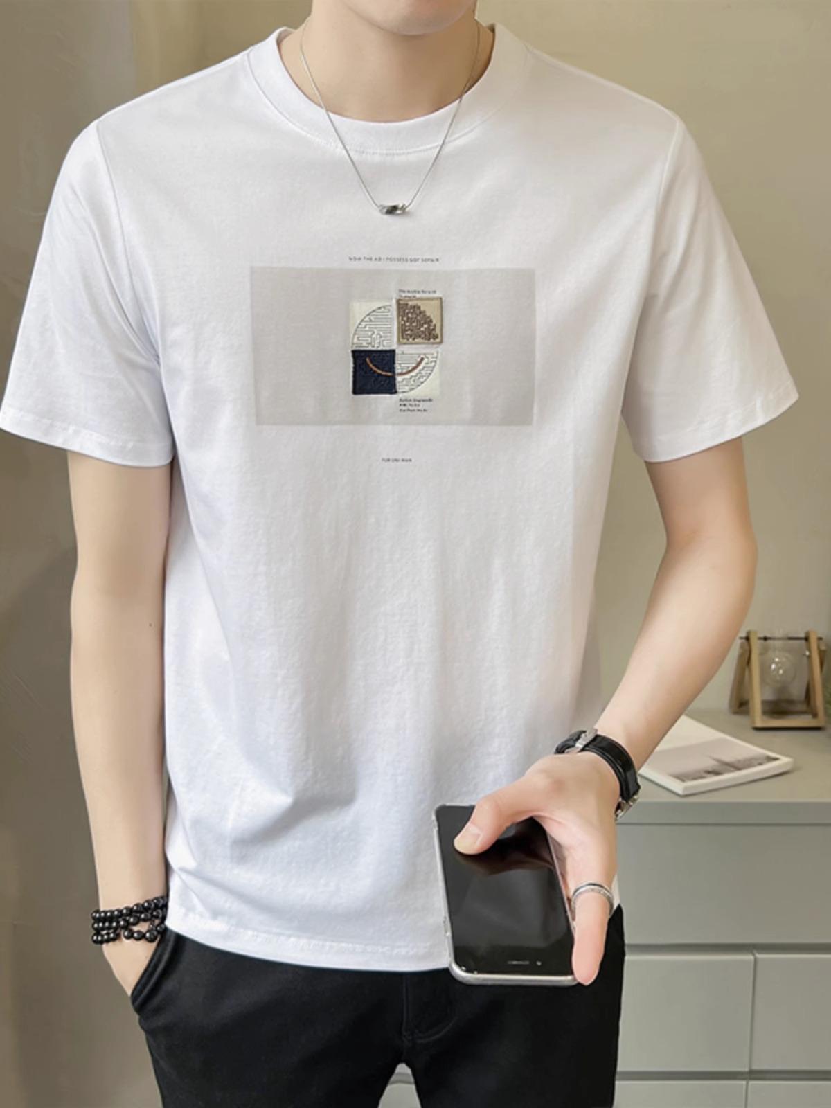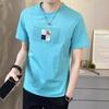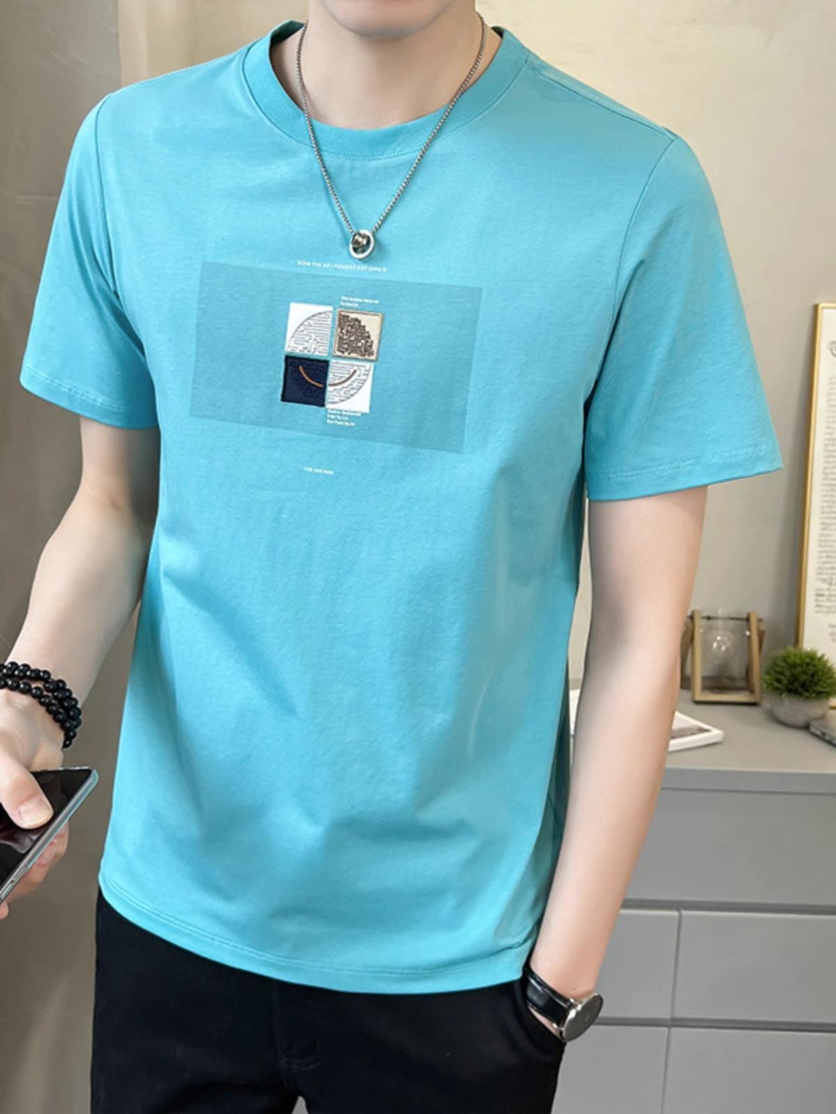 Camiseta de verano de manga corta con cuello redondo para hombre, ajustada, moderna, informal, de algodón con estampado, de media manga para jóvenes.