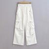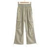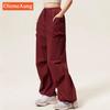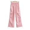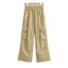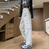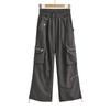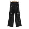 Pantalones deportivos holgados de estilo americano para mujer, pantalón de pierna ancha de seda helada con cremallera y bolsillo, estilo chic, para verano de 2024
