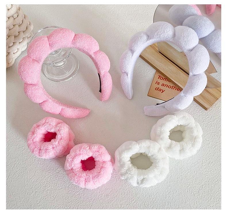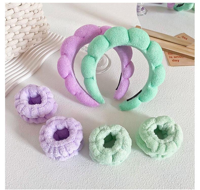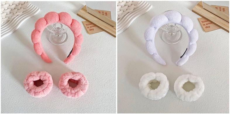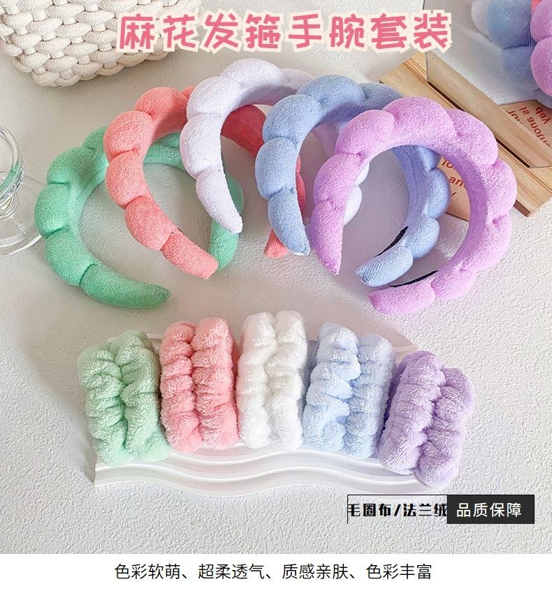 Set de Diadema Twist Popular Transfronterizo Europeo y Americano con Esponja para Lavado Facial y Maquillaje para Mujer, Pulsera de Felpa, Accesorios para el Cabello
