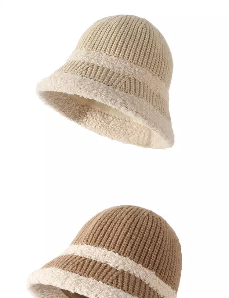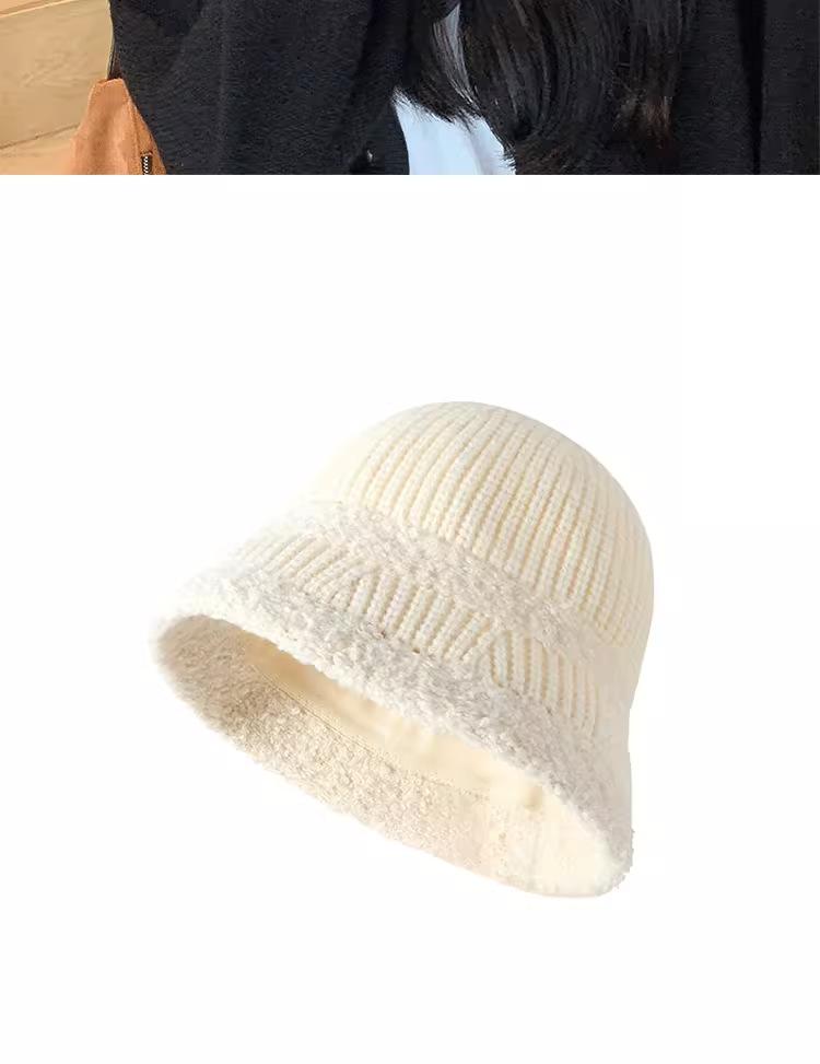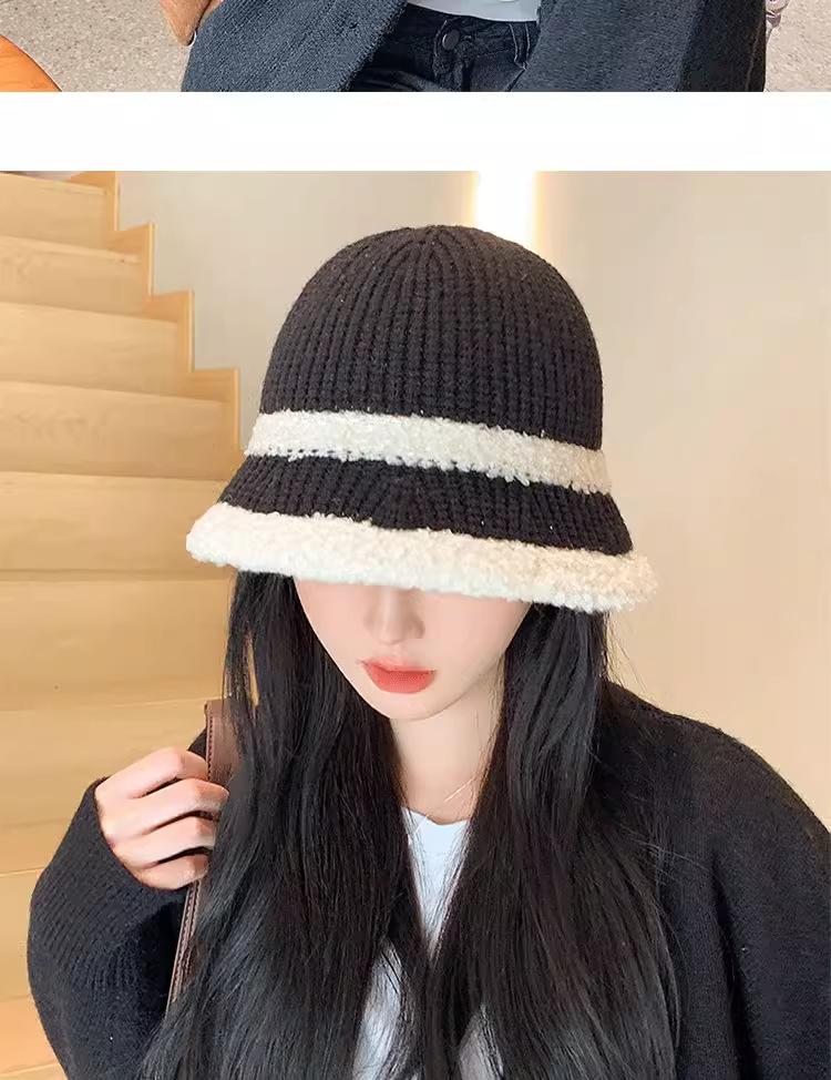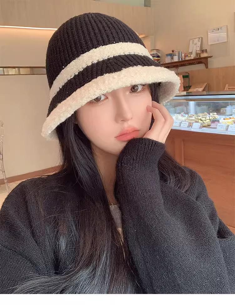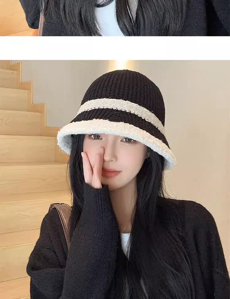 Knitted color-blocked warm basin hat-black, Knitted color-blocked warm basin hat-milk white, Knitted color-blo...
