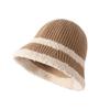 Knitted color-blocked warm basin hat-brown