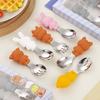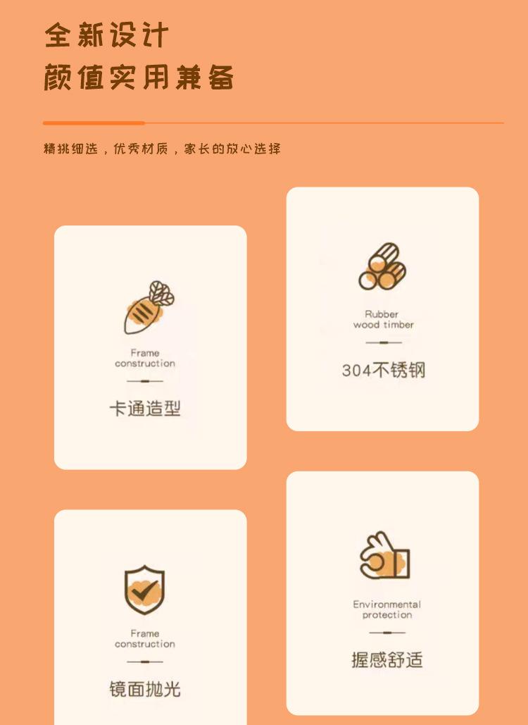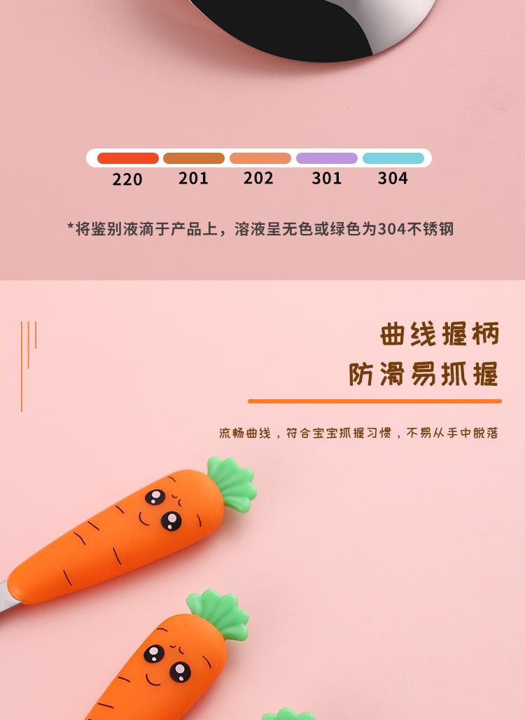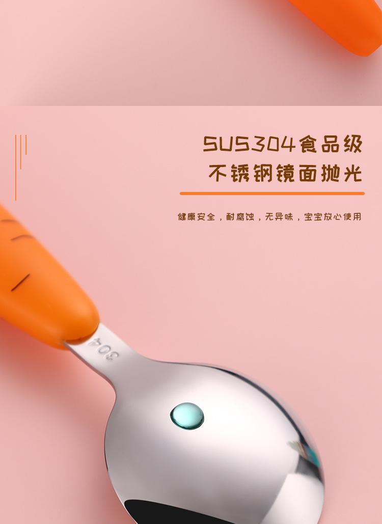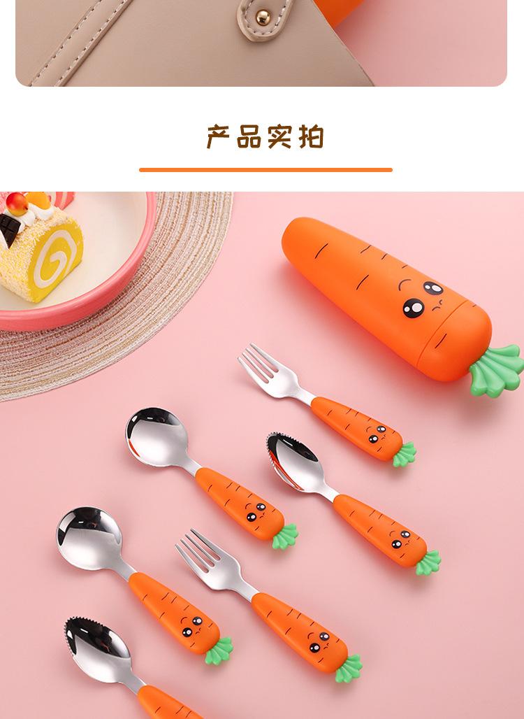 Juego de vajilla infantil de tres piezas de acero inoxidable 304, cuchara raspadora de fruta de rábano de dibujos animados, tenedor de bebé, cuchara, caja de regalo, traje