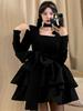 Vestido estilo Hepburn para mujer, otoño e invierno, recién llegado, estilo francés, cintura alta, elegante falda corta, falda negra