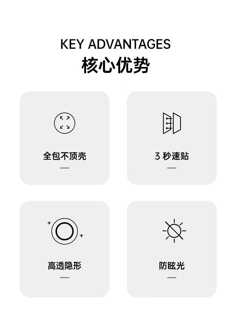 6. Material de la película: el vidrio de aluminio de alta calidad no es fácil de romper y el pegamento AB coreano de alta viscosidad y alta gama no es fácil de desprender (a diferencia de los productos comunes en el mercado).