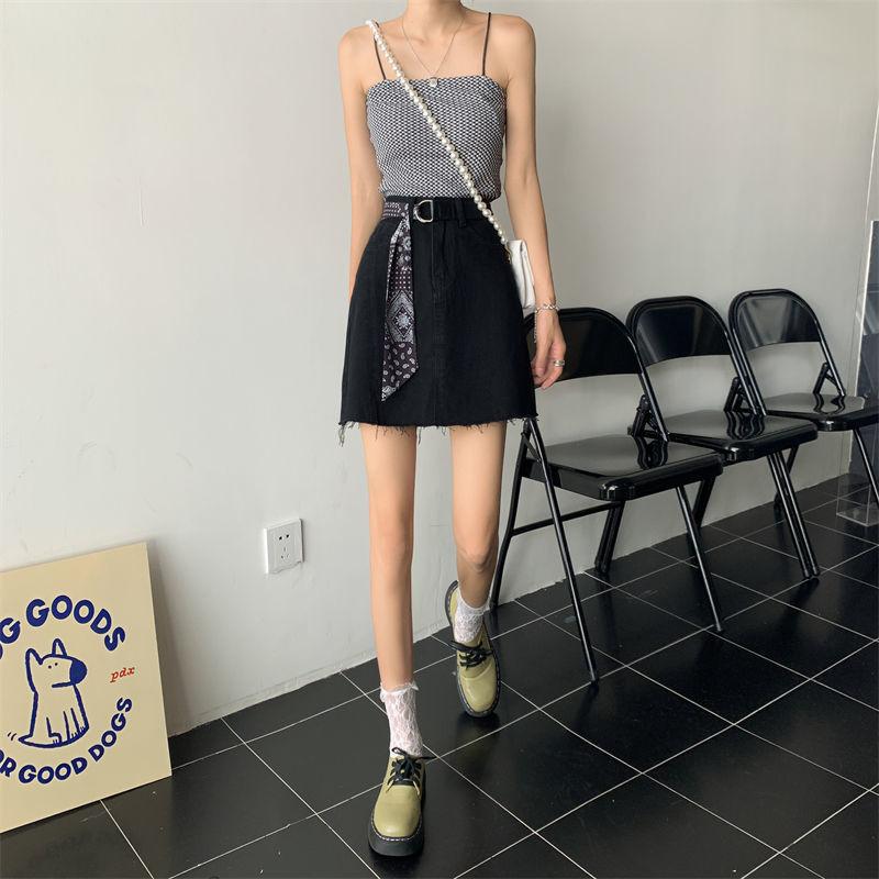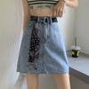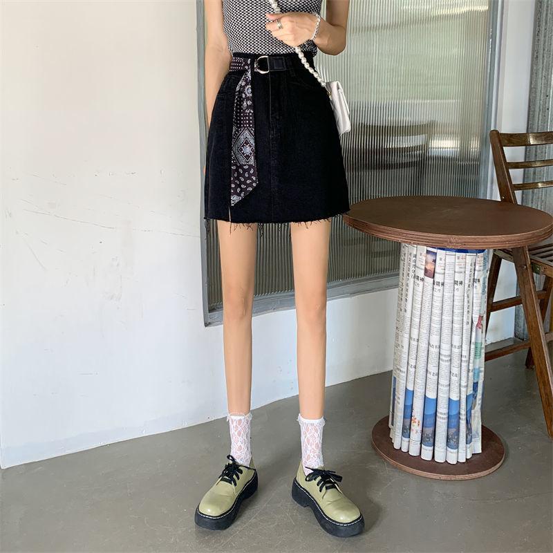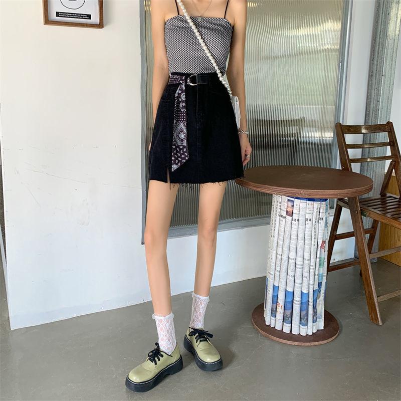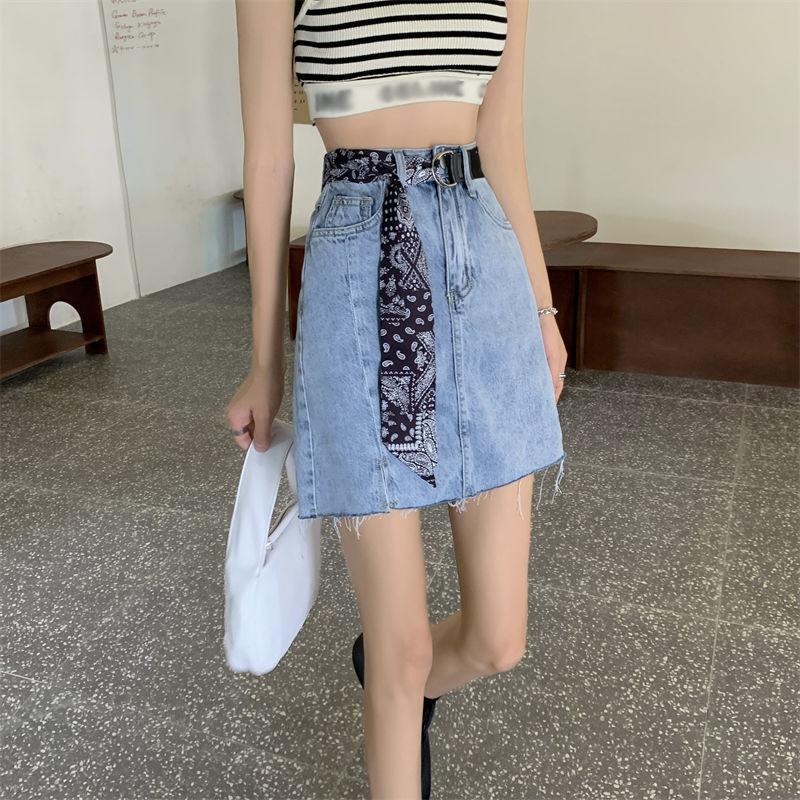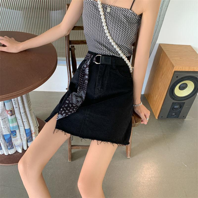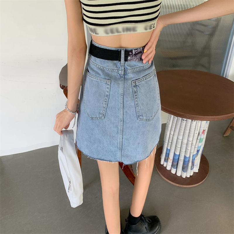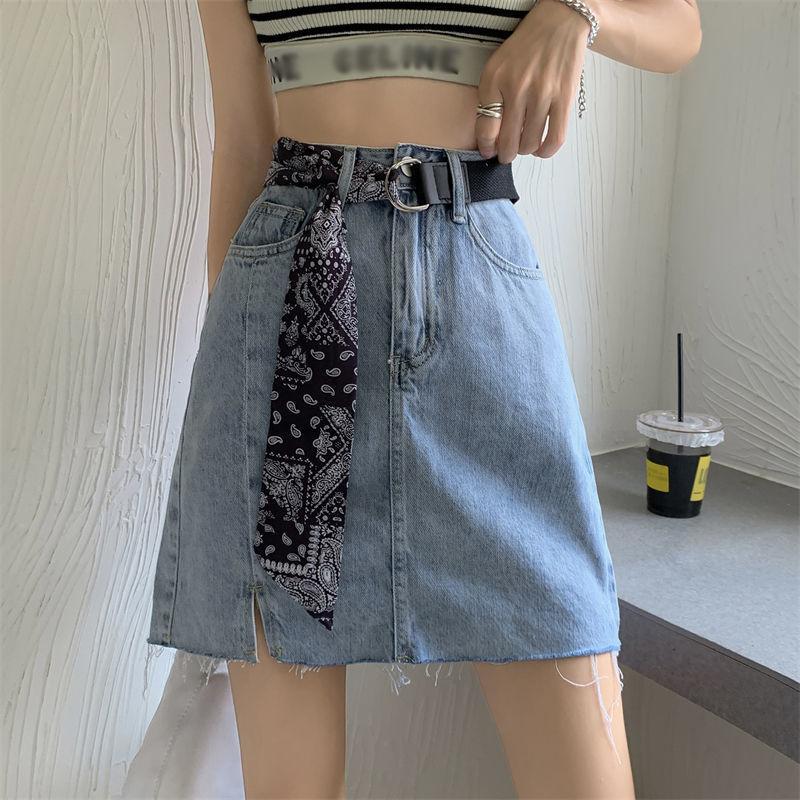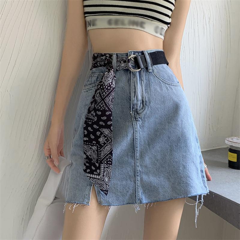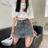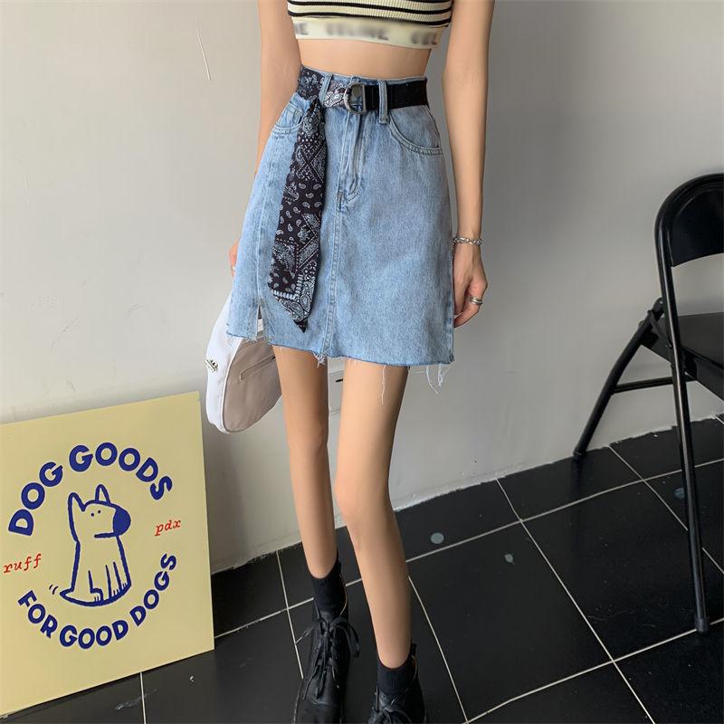 Falda tubo adelgazante a juego, moda de verano, estilo coreano, diseño ins, cintura alta dividida, falda corta de mezclilla para mujer