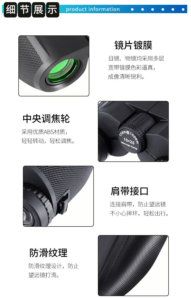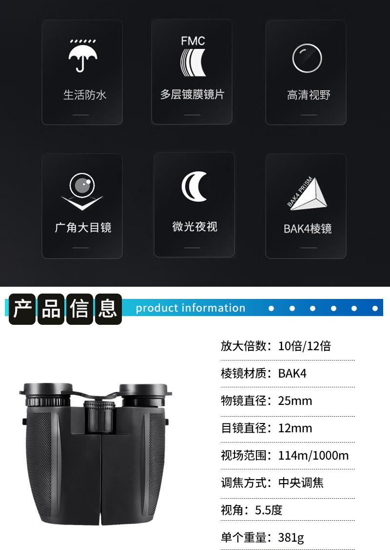 Venta al por Mayor de Fábrica 10X25 12X25 Binoculares Alta Magnificación Hd Compacto Binoculares Paul para Uso en Exteriores
