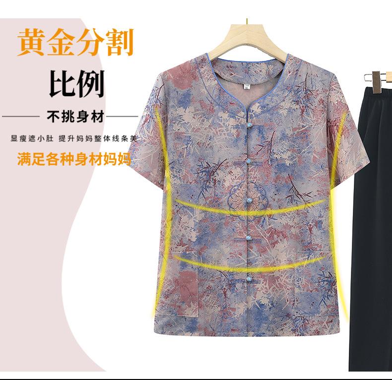 Short-sleeved women's seven-sleeve small shirt, T-shirt, summer women's clothing for the elderly, grandma summ...