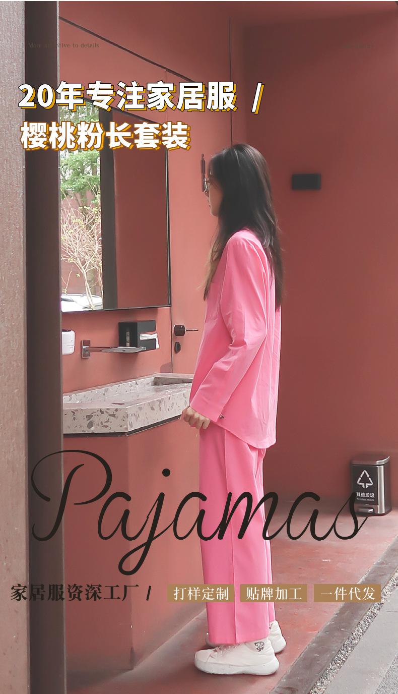 Pijama de Otoño e Invierno para mujer rosa cereza amigable con la piel suave ropa exterior traje de ropa interior térmica ropa de otoño pantalones largos algodón ropa para el hogar