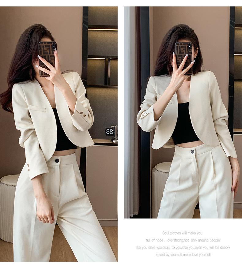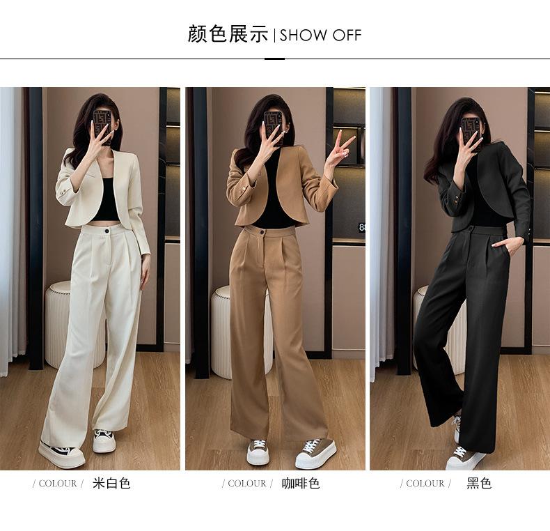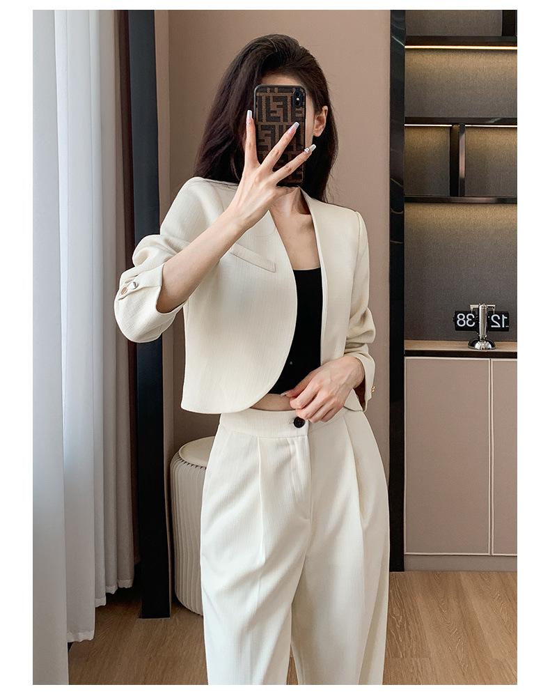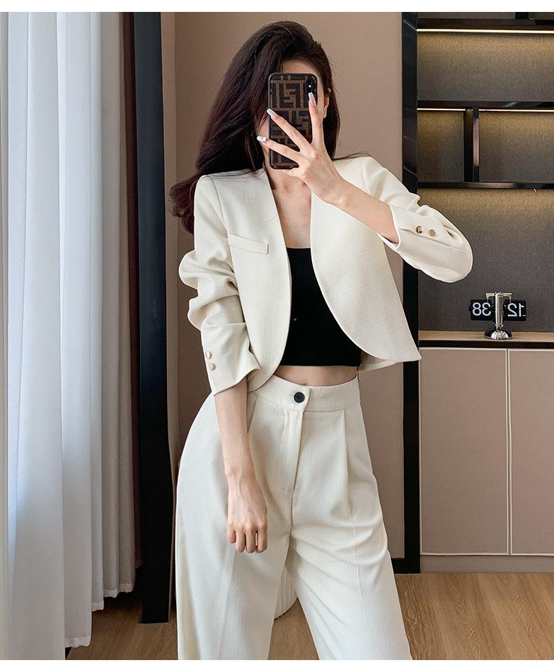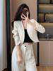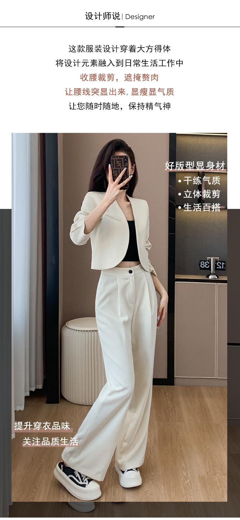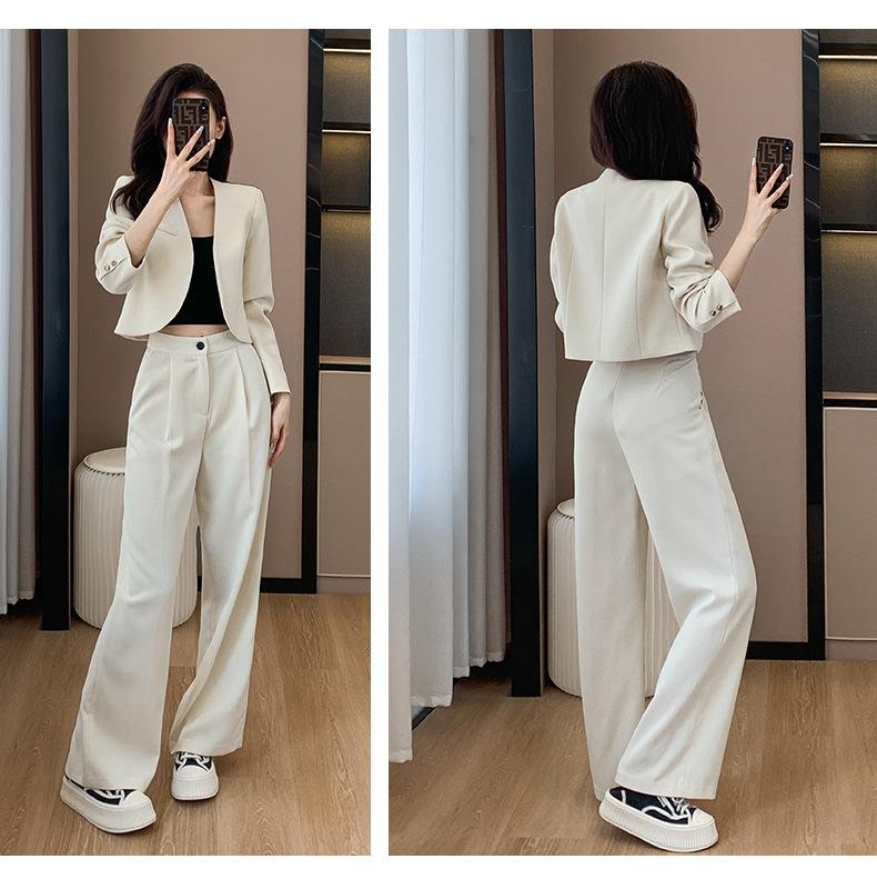 Traje Blanco traje Mujer Sentido de Alta Gama 2023 Nuevo Estilo Traje Casual Pequeño Chaqueta Pantalones de Pierna Ancha Conjunto de Dos Piezas