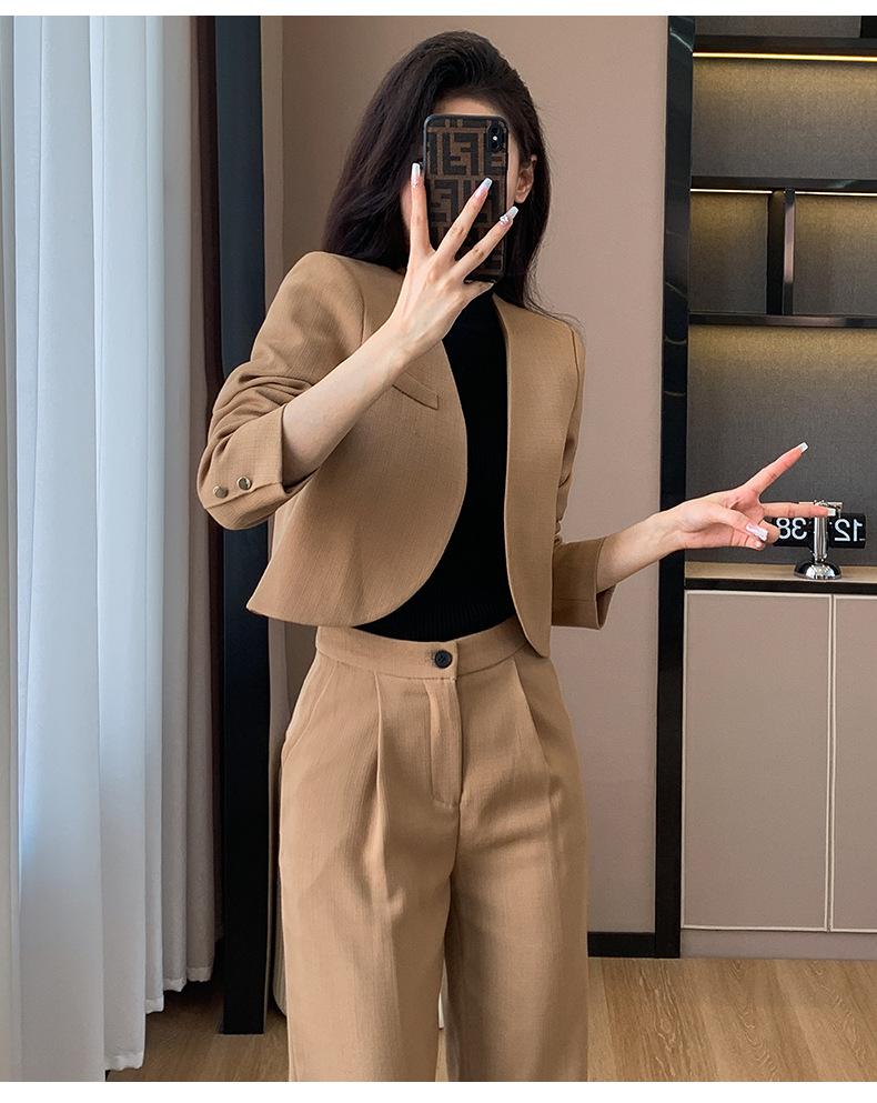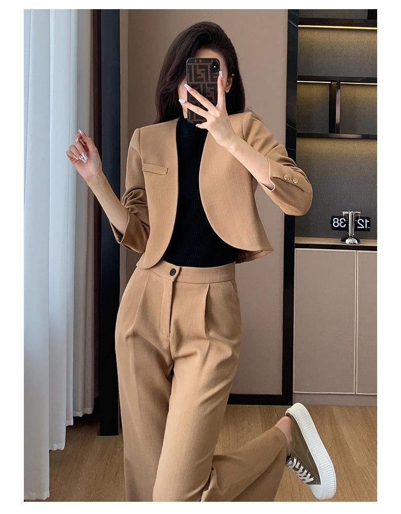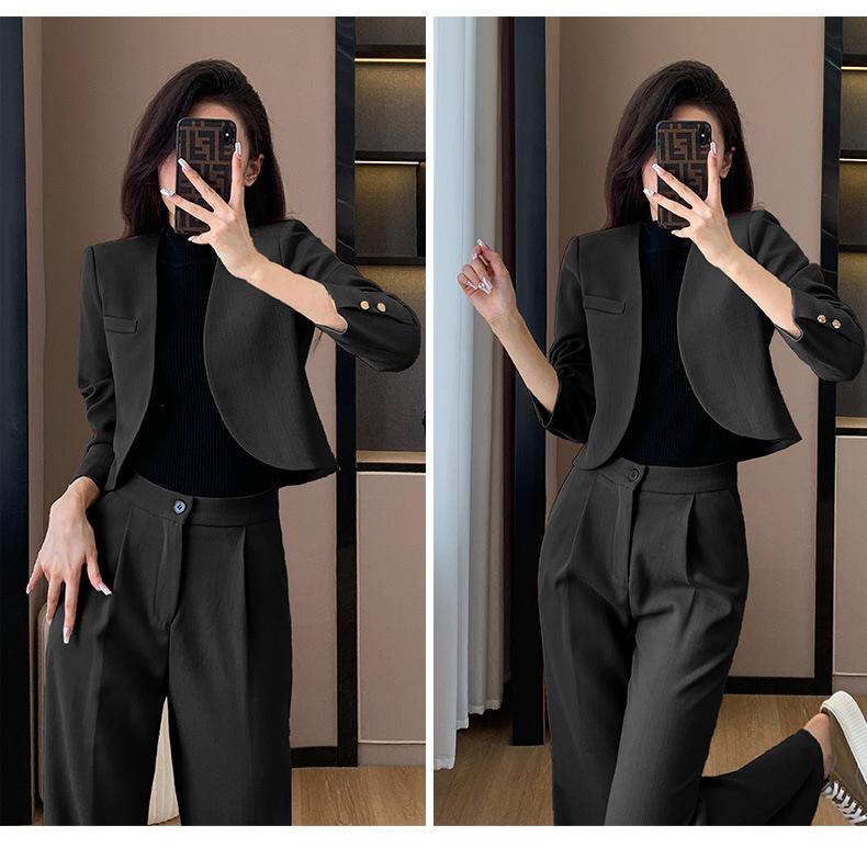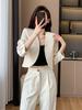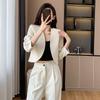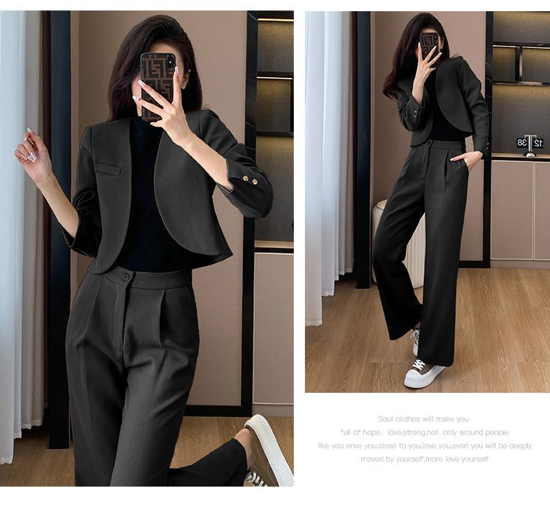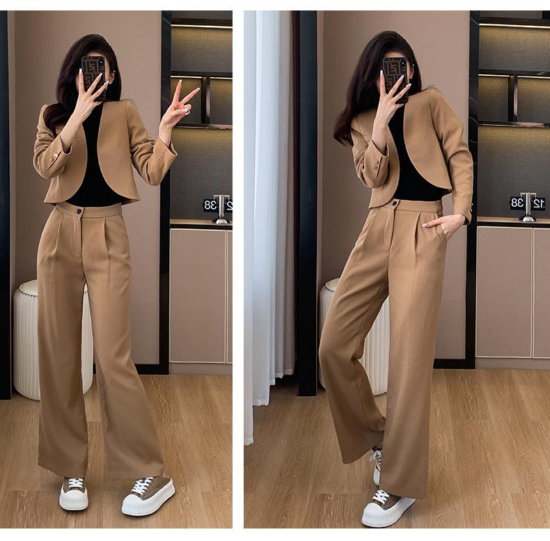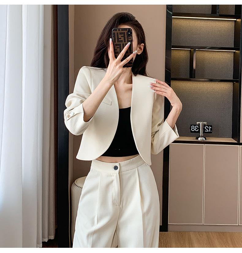 Traje Blanco traje Mujer Sentido de Alta Gama 2023 Nuevo Estilo Traje Casual Pequeño Chaqueta Pantalones de Pierna Ancha Conjunto de Dos Piezas
