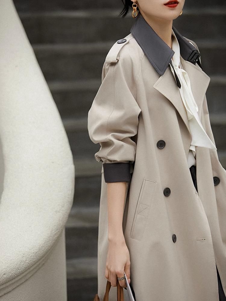 Rompevientos de Largo Medio de Punto Primavera y Otoño Nuevo Elegante e Intelectual para Mujer Chaqueta Rompevientos Casual Británica