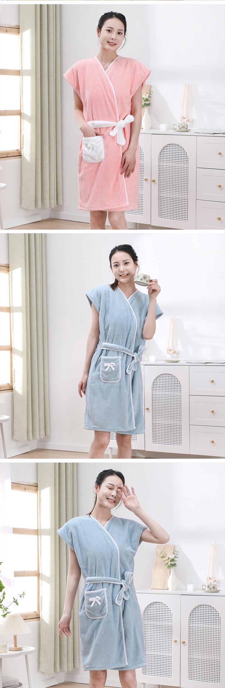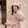 Albornoz de forro polar coral para mujer, toalla grande envolvente con bonitos dibujos animados, ropa de casa para adultos, absorbente, suave y cómoda.