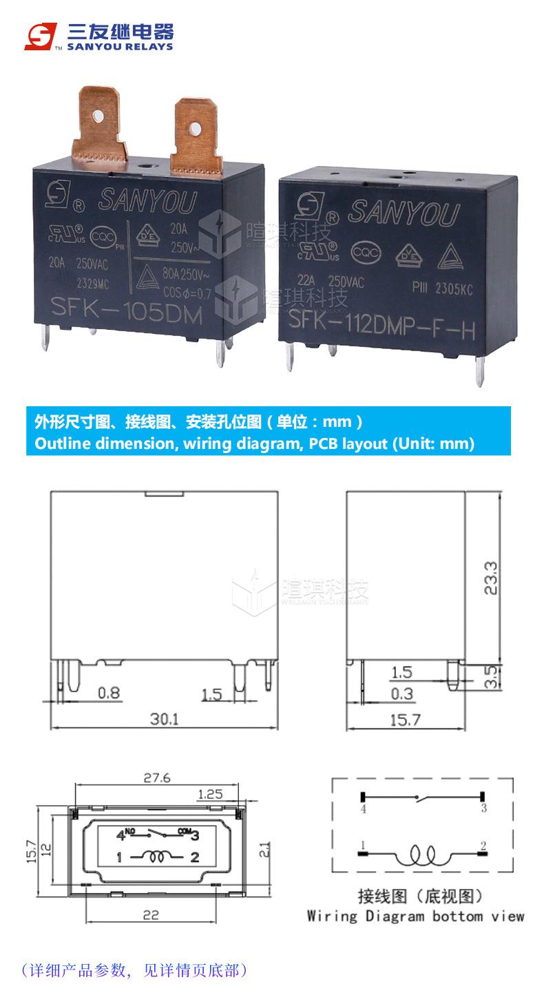 Relé Sanyou Sfk-112Dm 20A Relé de Aire Acondicionado 12V24V Universal 25A Potencia Relé Pequeño