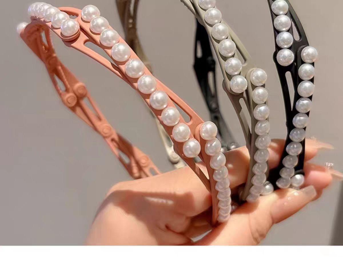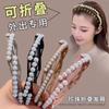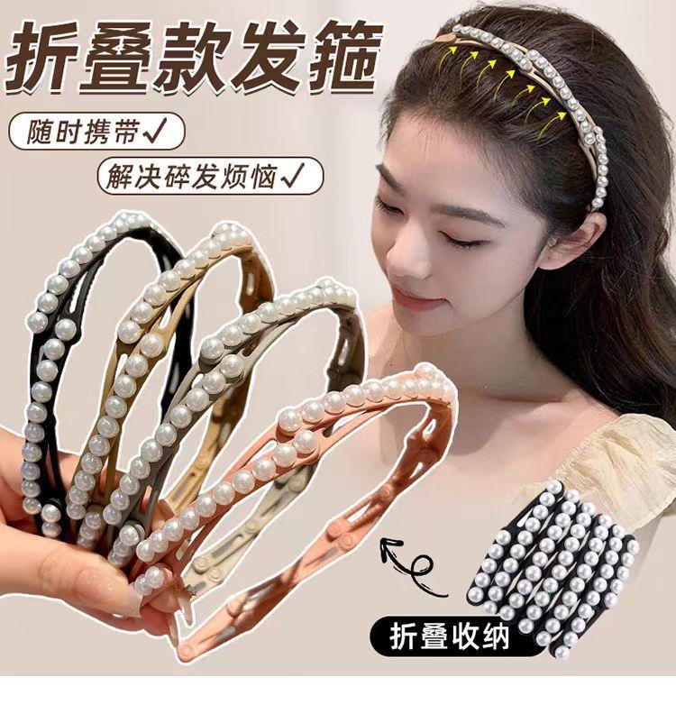 Diadema plegable retráctil para mujer, estilo perla, 2024, nueva tarjeta para el cabello, diadema portátil para viajes, para lavarse la cara.