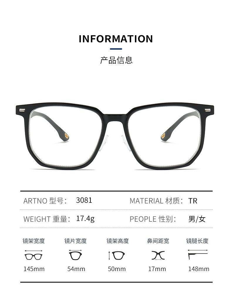 Gafas cuadradas negras ultraligeras lisas para mujer sin graduación anti luz azul se pueden equipar con montura para gafas miopes fotocromáticas para hombre