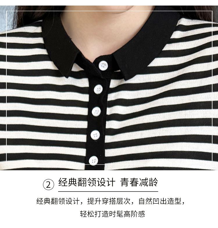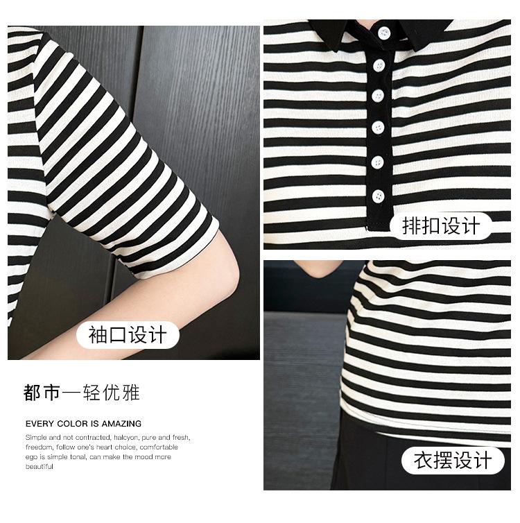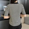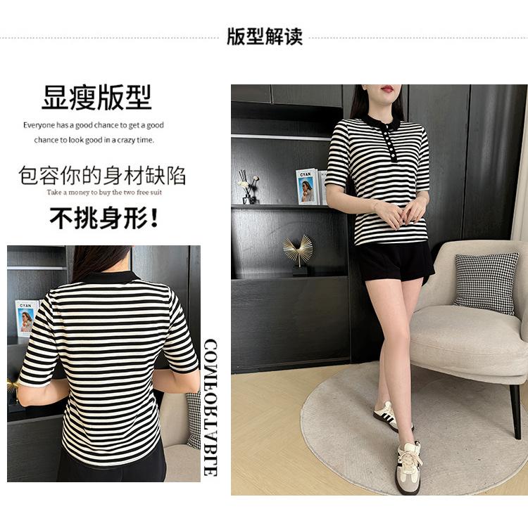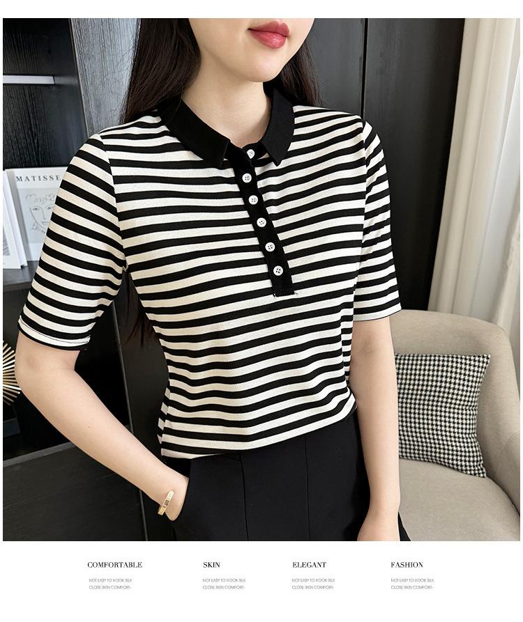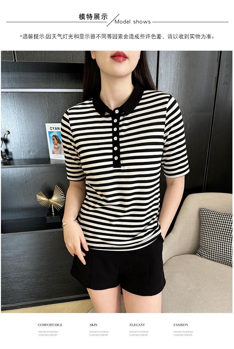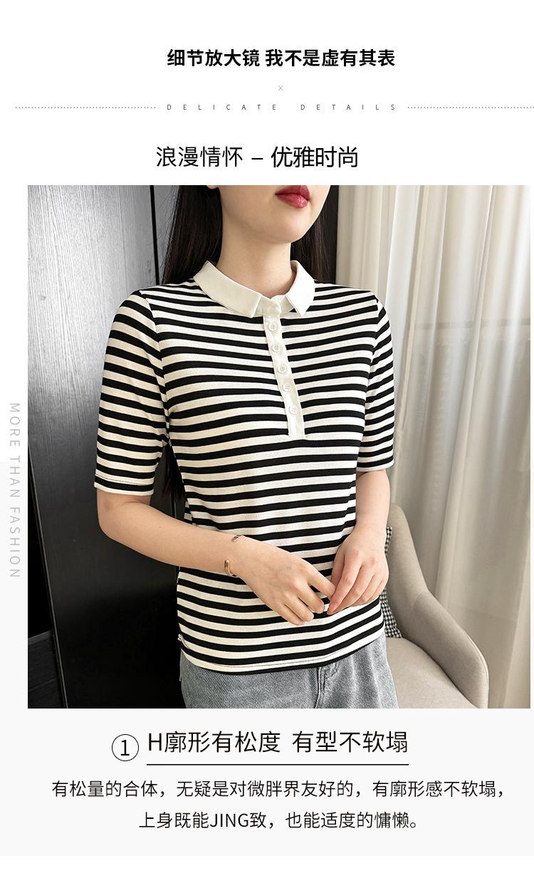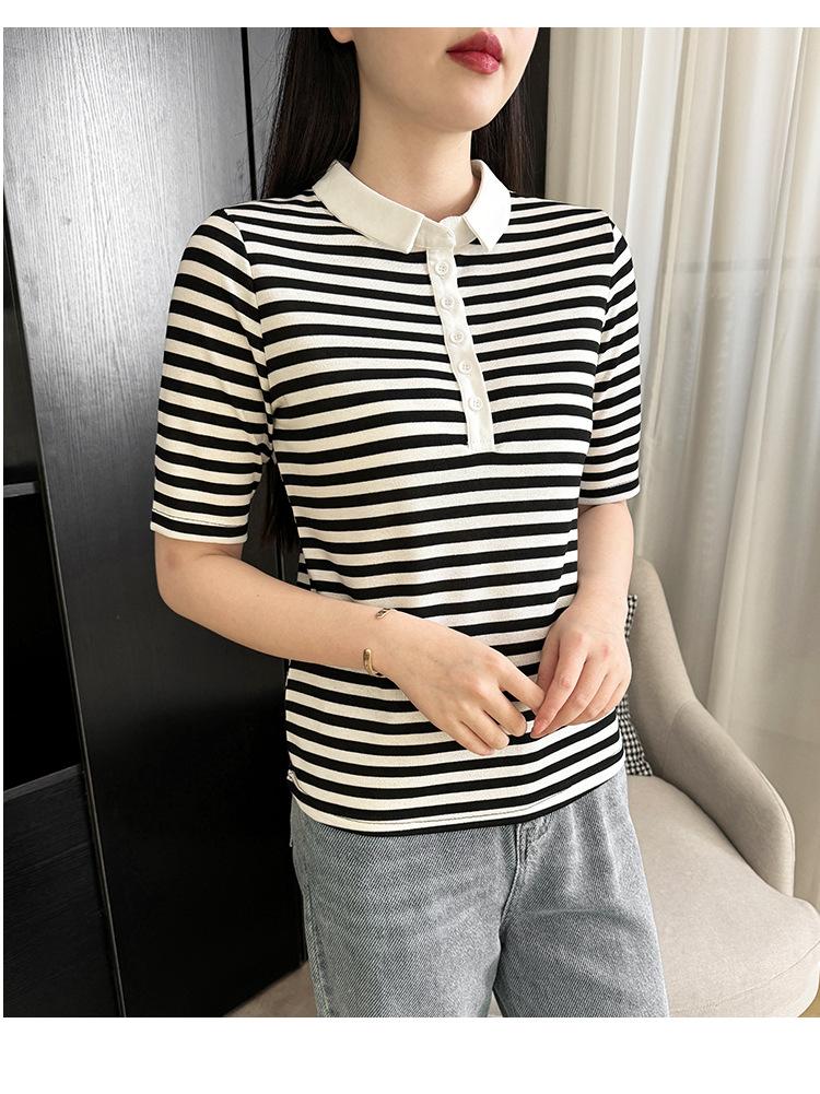 Camiseta informal de manga corta con cuello tipo polo y hombros descubiertos para mujer, de algodón, a rayas blancas y negras, de verano 2024