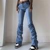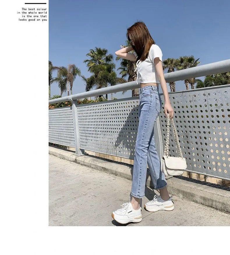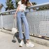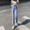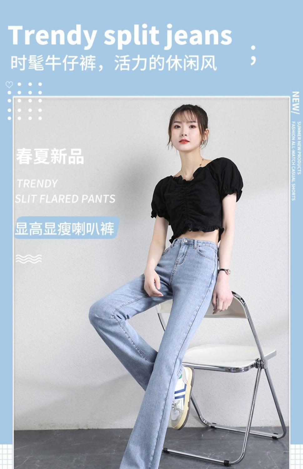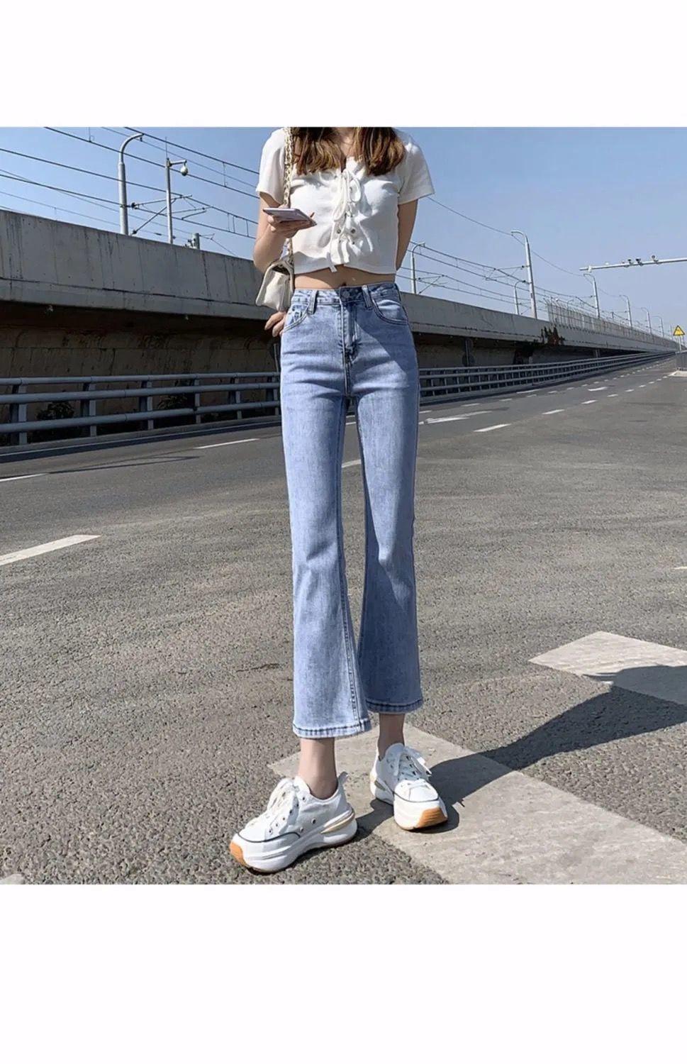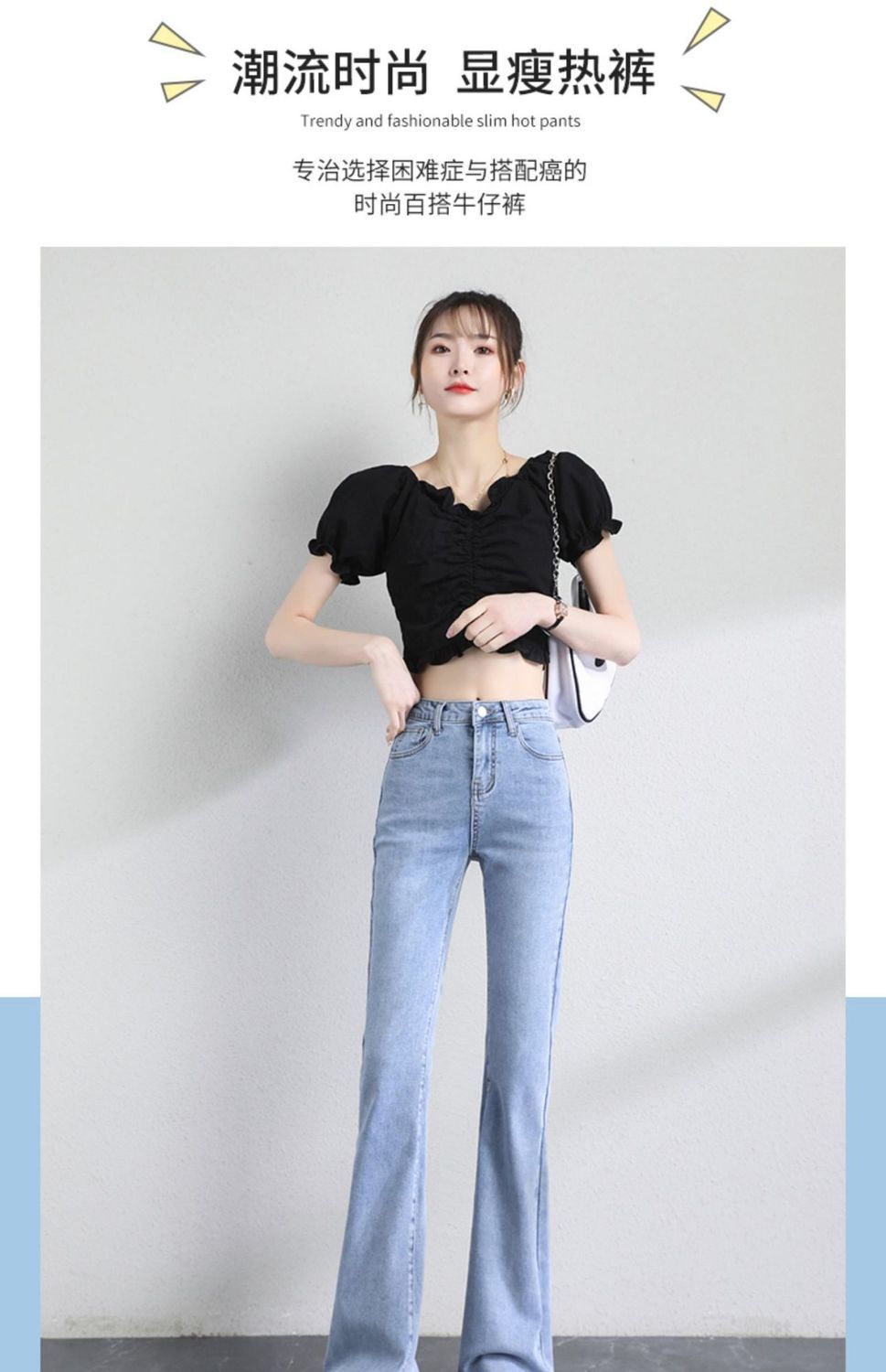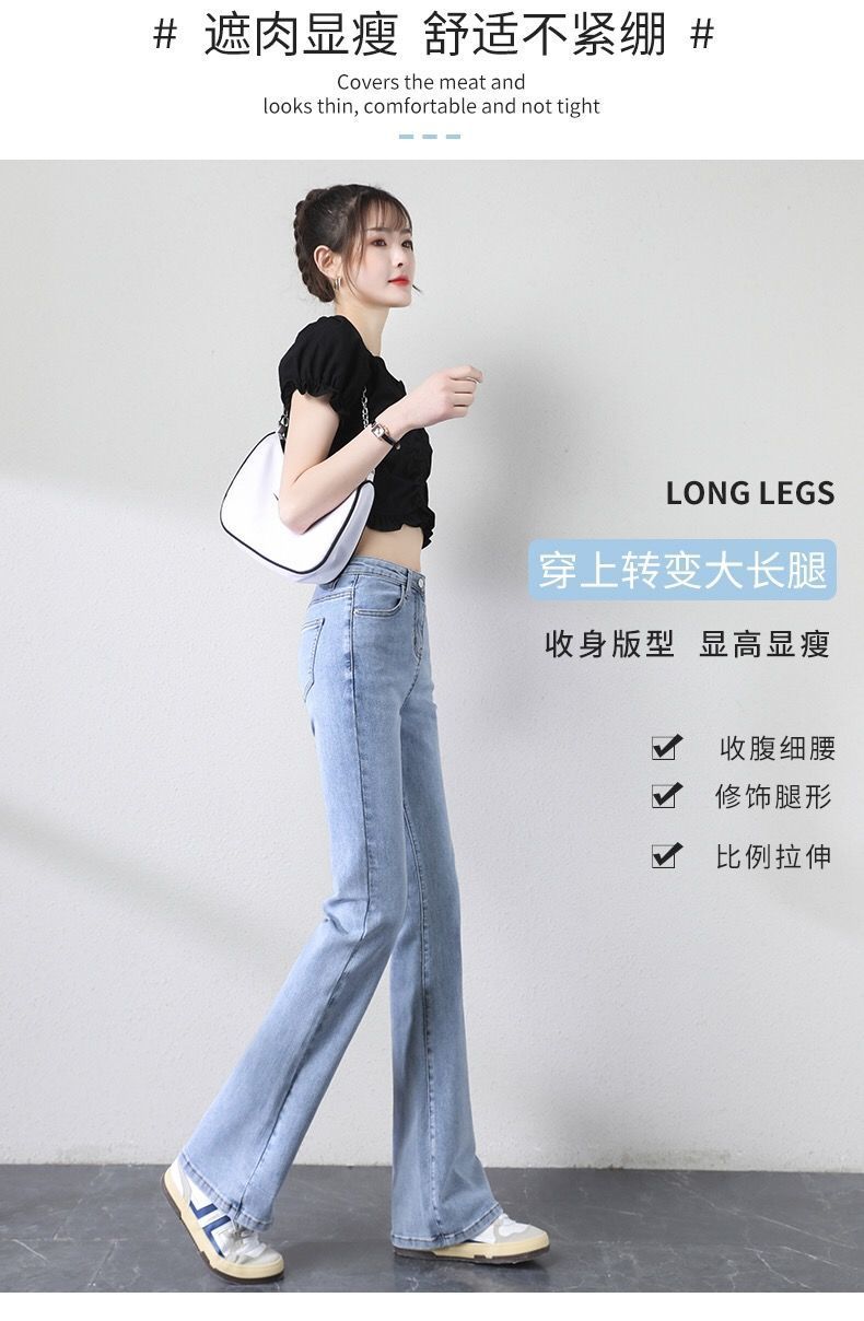 Jeans acampanados de color claro para mujer, pierna recta 2022 nuevo primavera y otoño para mujer americanos de cintura alta ajustados pantalones acampanados de nueve puntos