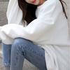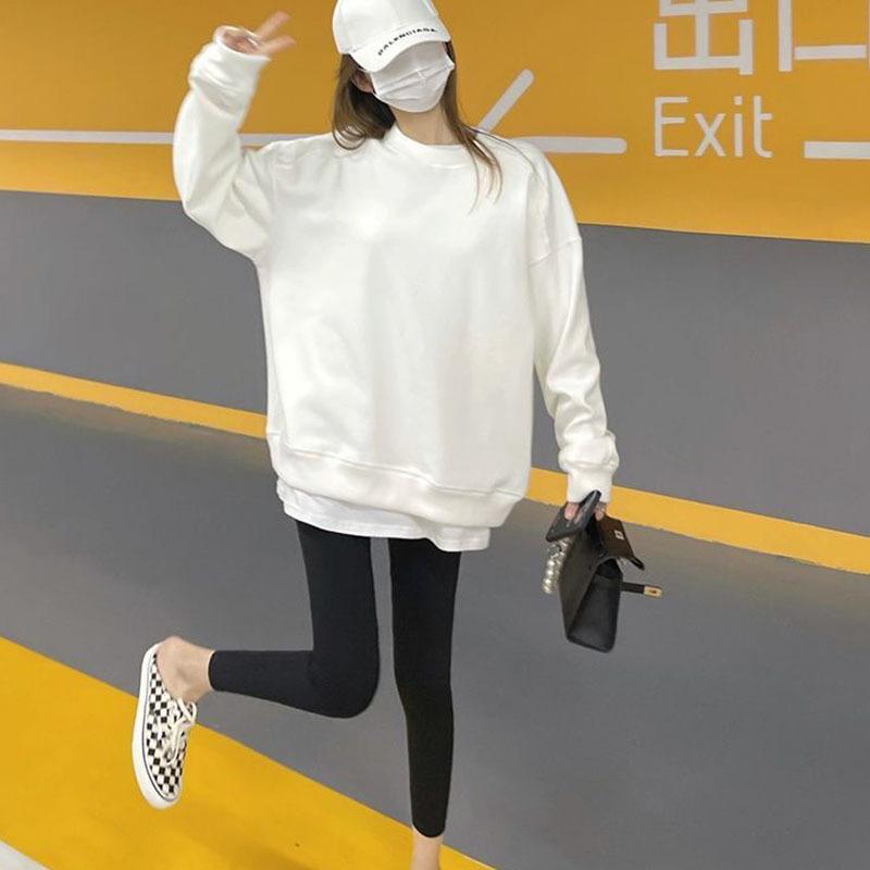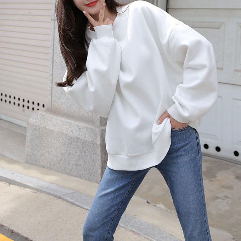 Suéter de felpa fino de primavera y otoño, jersey de cuello redondo, top de color sólido, versión NET, ropa de mujer de talla grande, entrega de una pieza