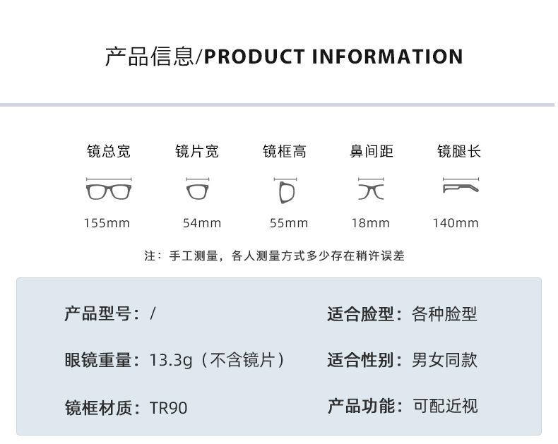 Gafas de estilo coreano con montura negra para mujer, con artefacto de cara lisa, antiluz azul, montura de gafas para miopía de grado ajustable, gafas lisas para adelgazar cara grande