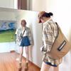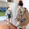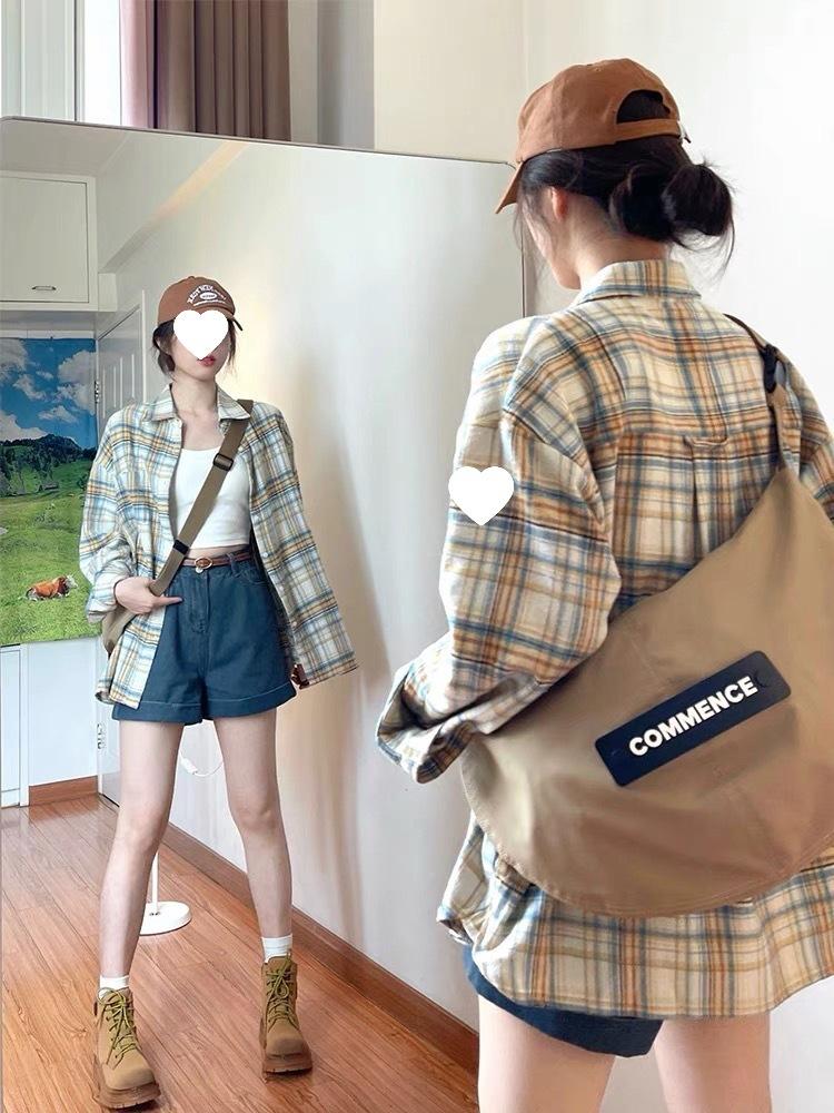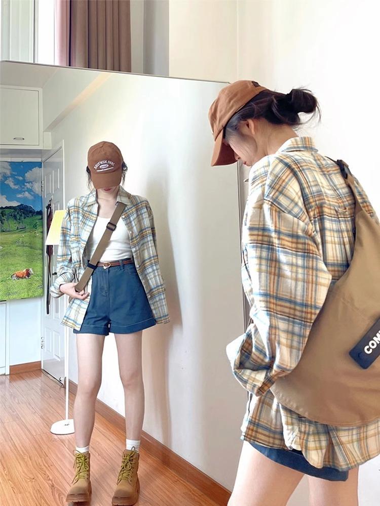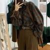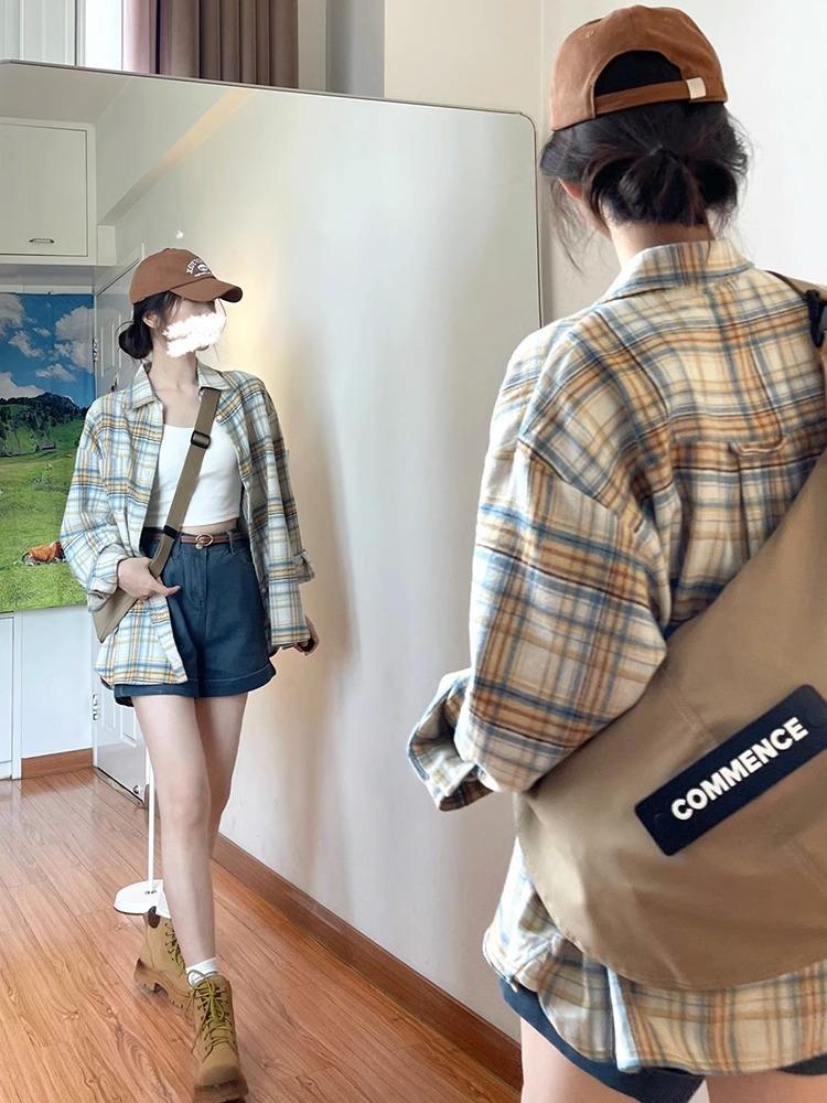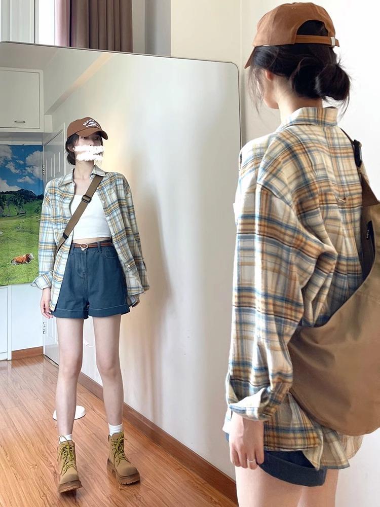 Camisa a cuadros retro estilo americano para mujer, primavera y otoño, diseño fino y holgado, manga larga, protección solar, chaqueta