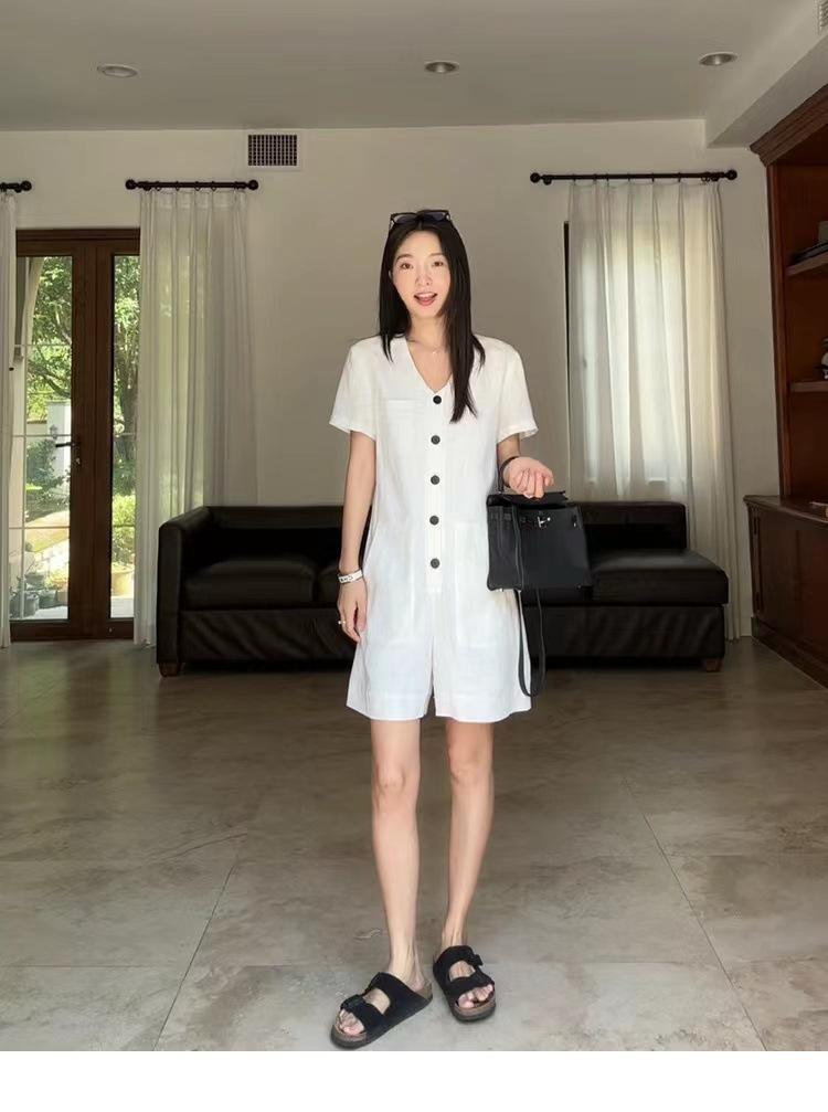 Pantalones de lino y algodón para uso diario, ropa de una pieza sencilla y profesional, de manga corta, para verano de 2024
