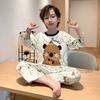 Pijamas de Otoño para Niños de Manga Larga para Niños y Niñas de Dibujos Animados Delgados Cómodos Conjunto para Estar en Casa Adecuado para Ropa Exterior Moderno