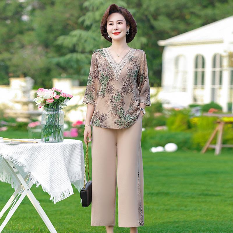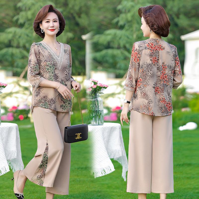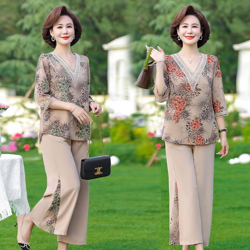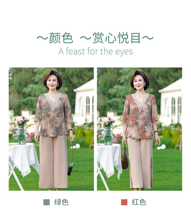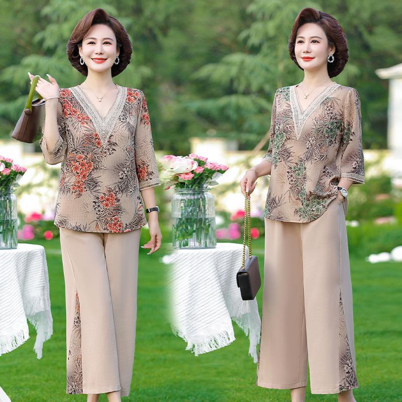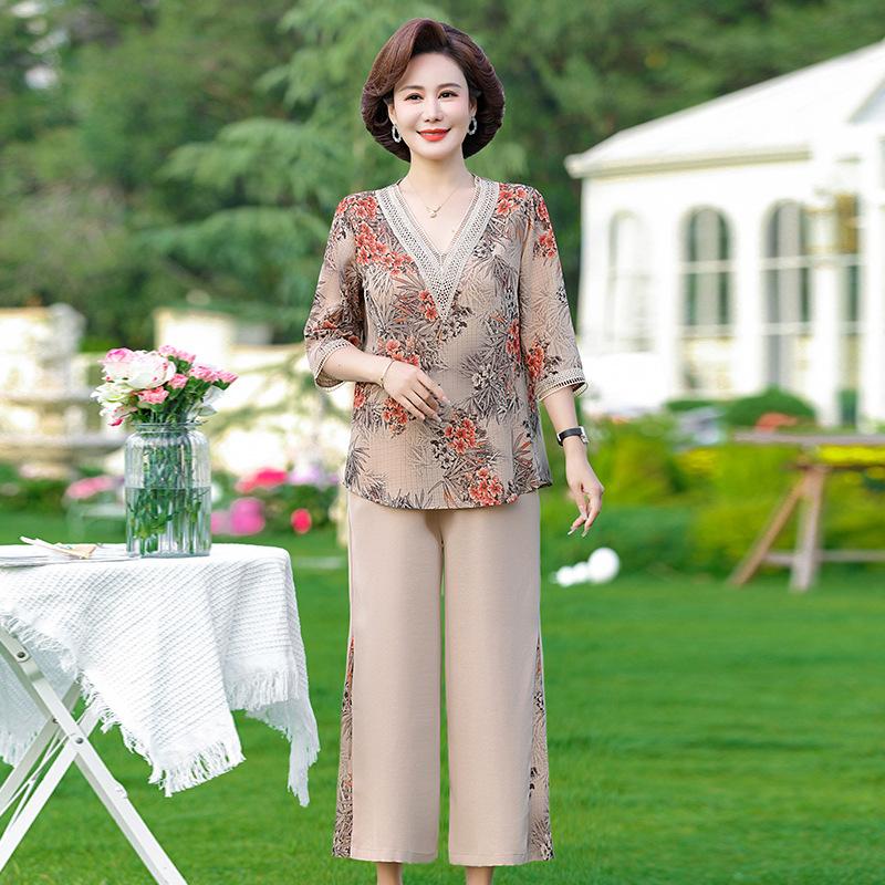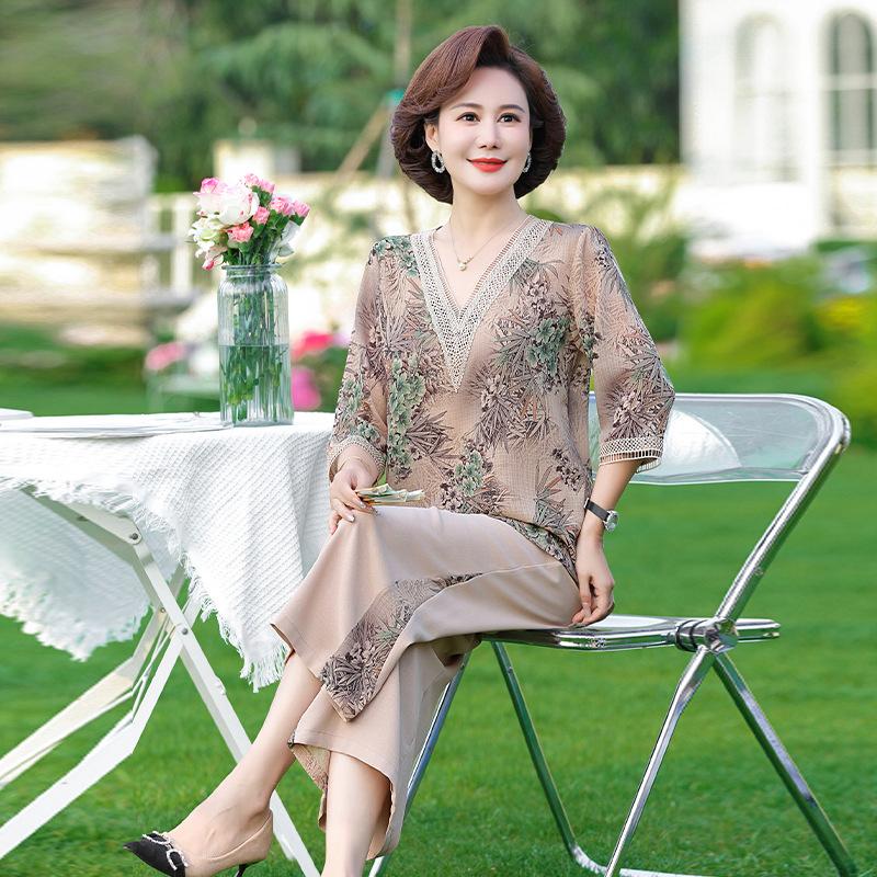 Vestido de Verano para Madre Traje de Estilo Occidental Top de Moda para Mujeres de Mediana Edad y Mayores Nuevo Conjunto Holgado de Dos Piezas Talla Grande Sencillo para Ir al Trabajo