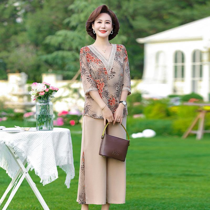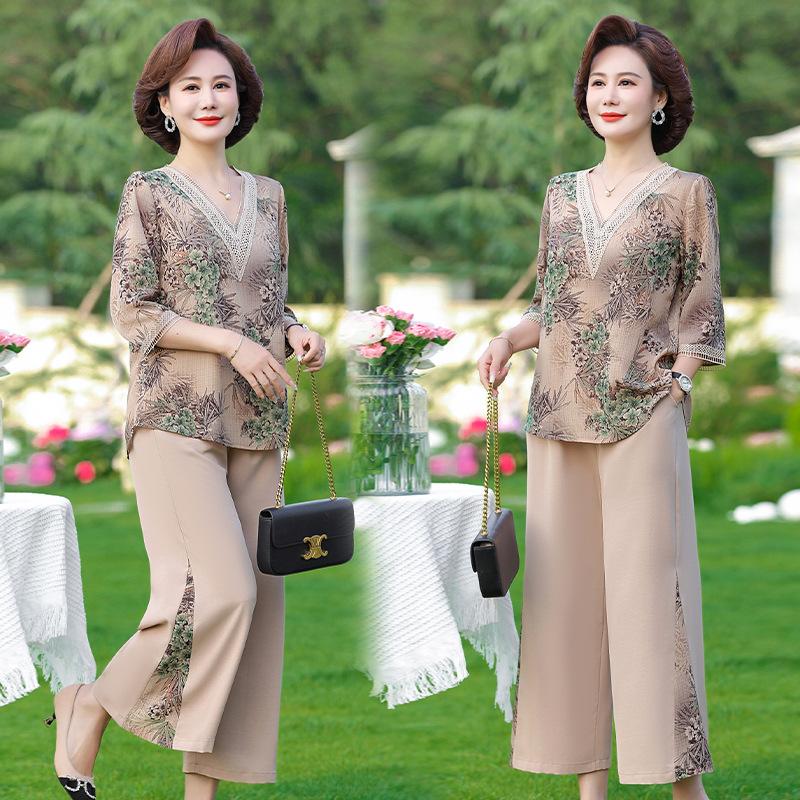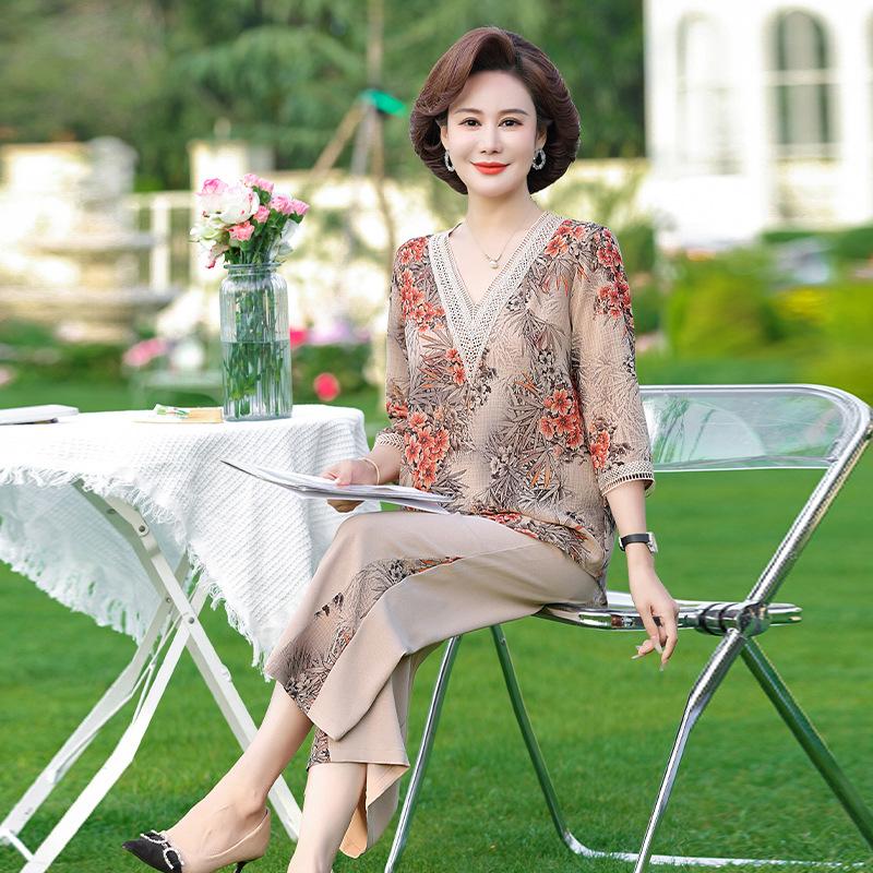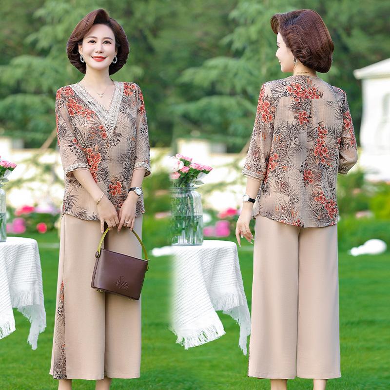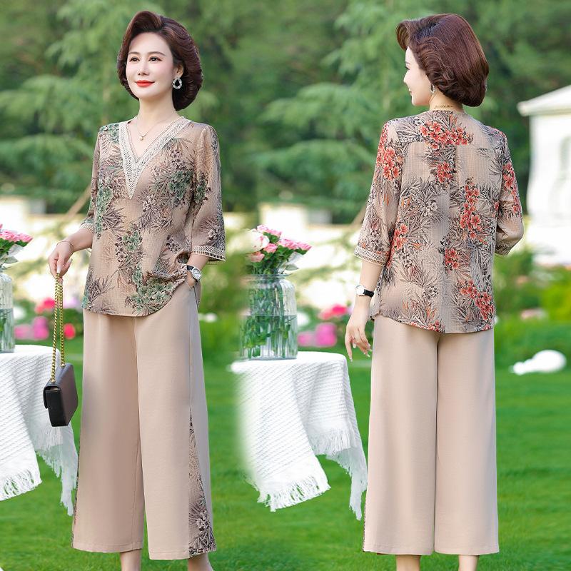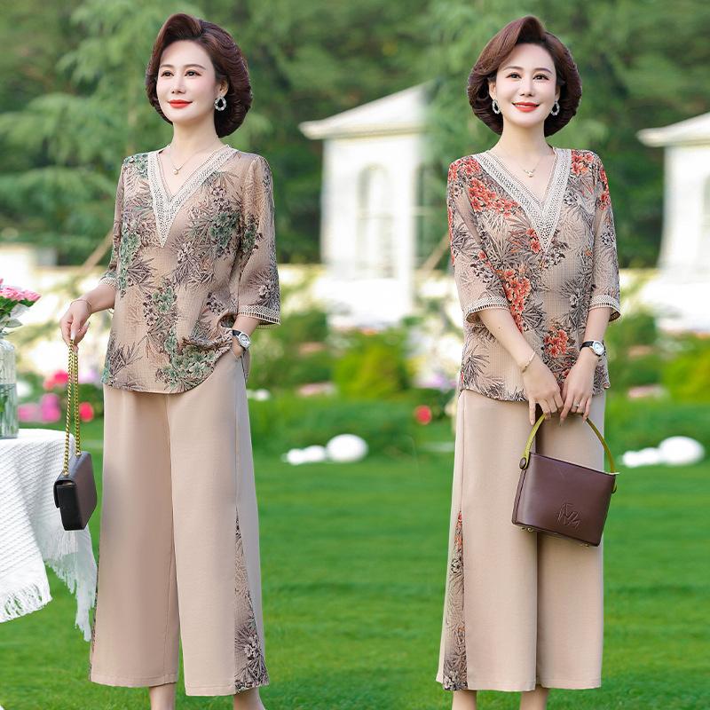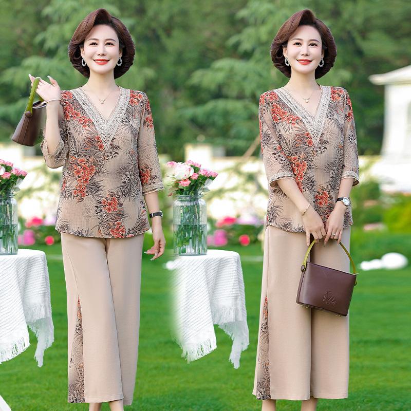 Vestido de Verano para Madre Traje de Estilo Occidental Top de Moda para Mujeres de Mediana Edad y Mayores Nuevo Conjunto Holgado de Dos Piezas Talla Grande Sencillo para Ir al Trabajo