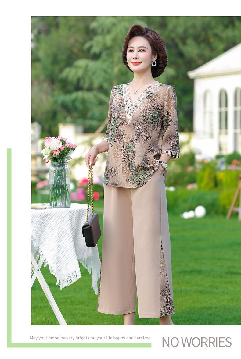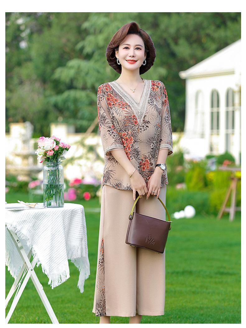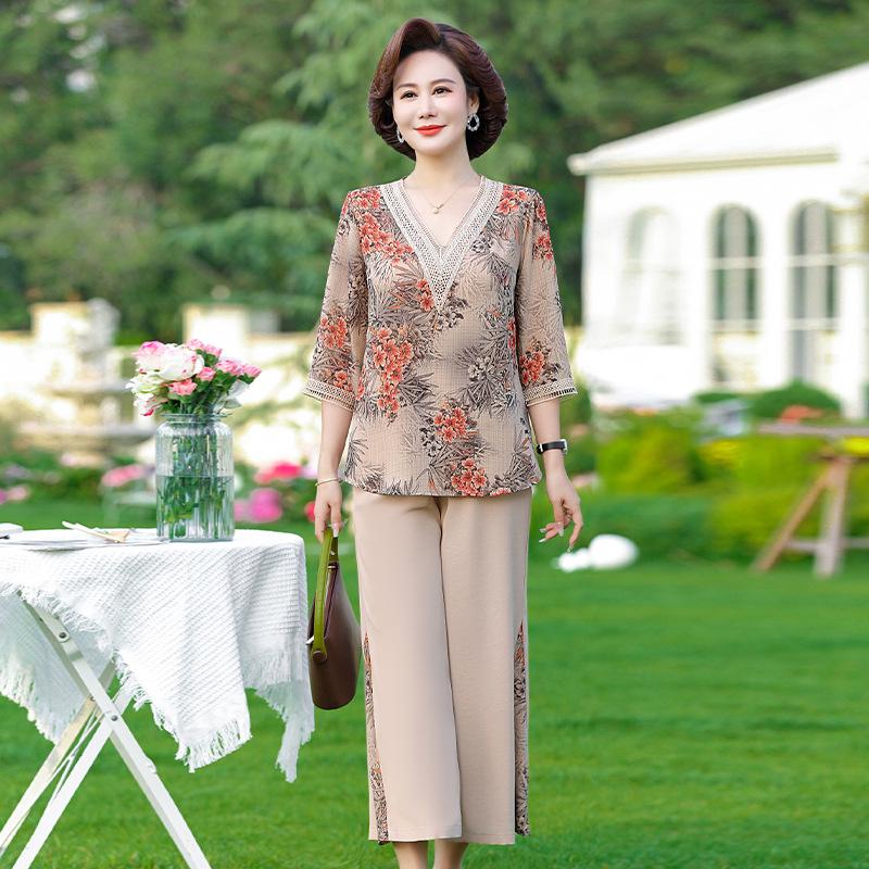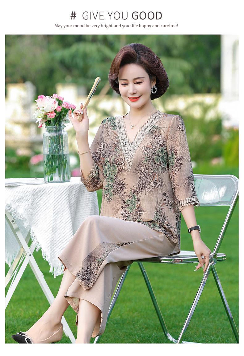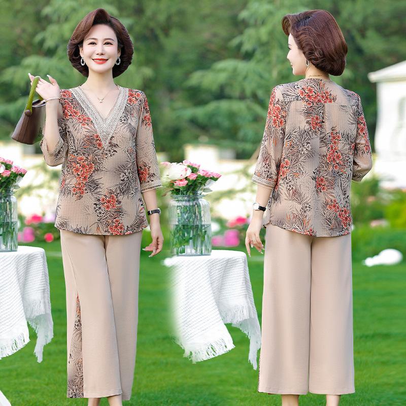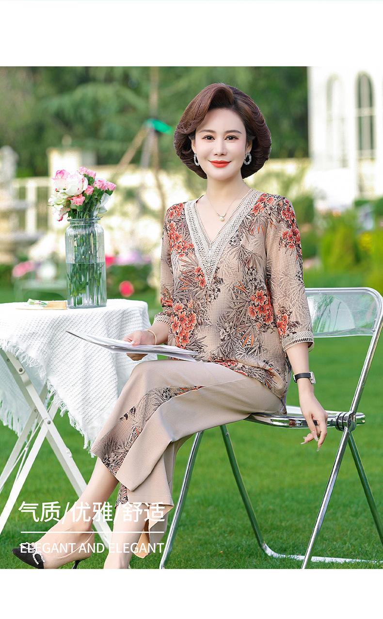 Vestido de Verano para Madre Traje de Estilo Occidental Top de Moda para Mujeres de Mediana Edad y Mayores Nuevo Conjunto Holgado de Dos Piezas Talla Grande Sencillo para Ir al Trabajo