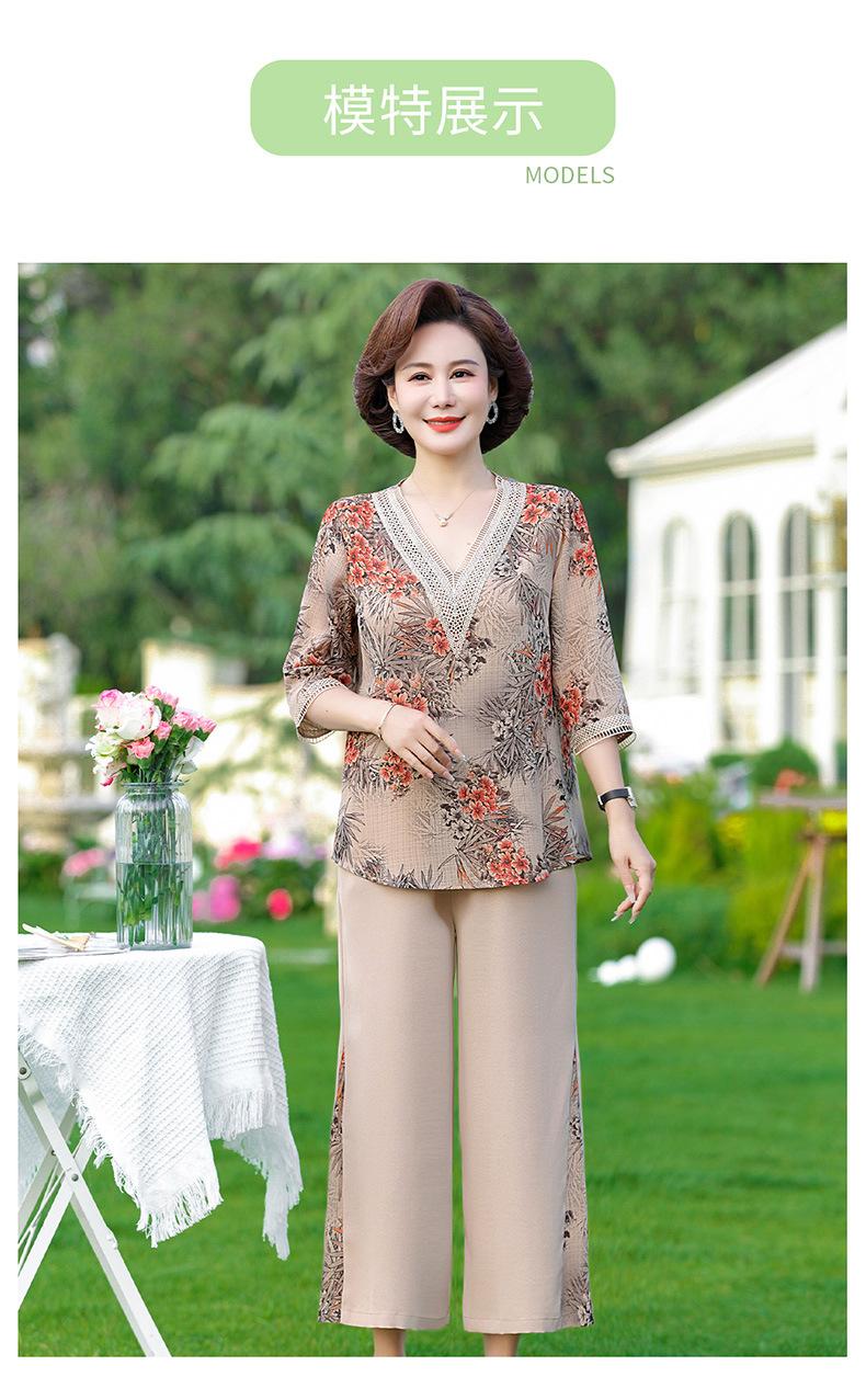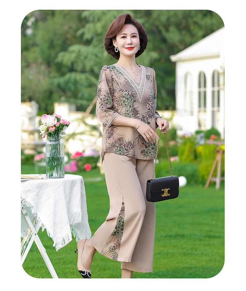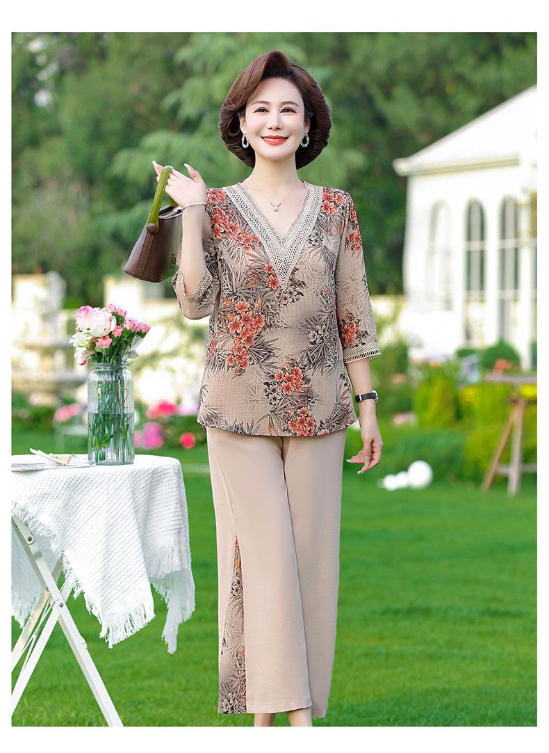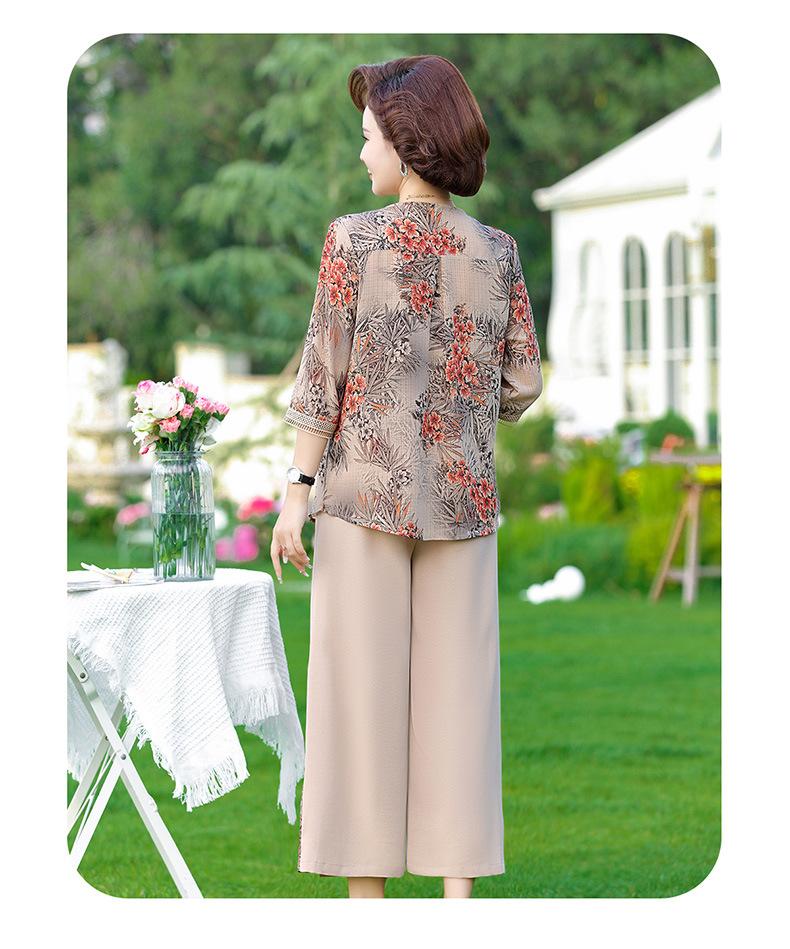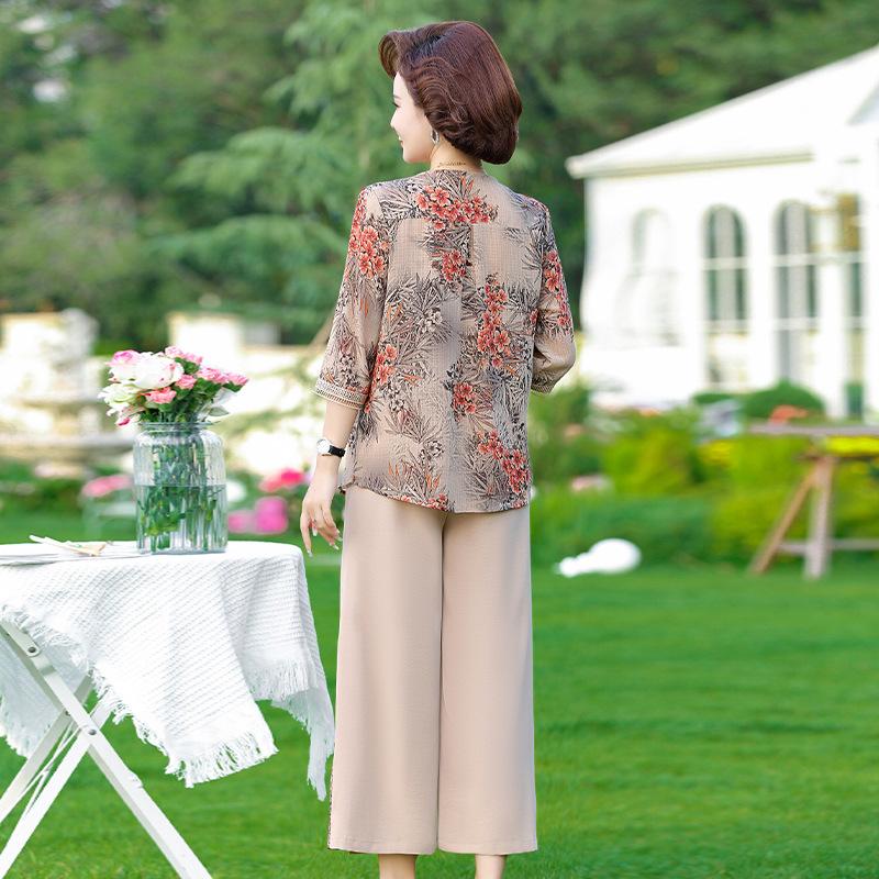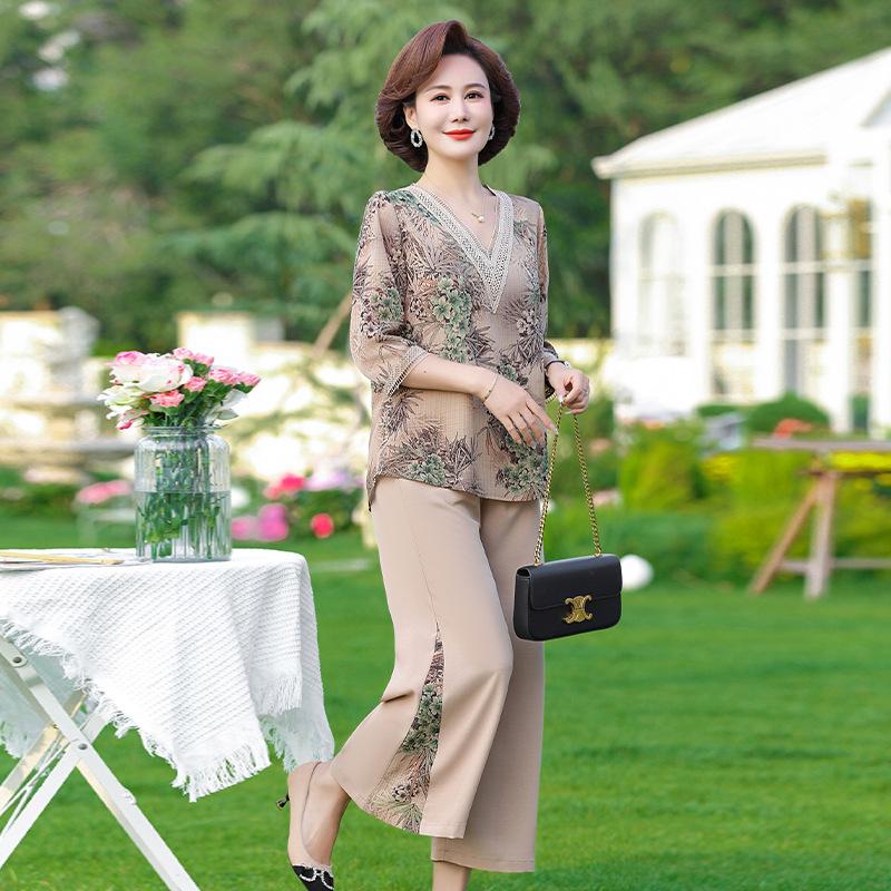 Vestido de Verano para Madre Traje de Estilo Occidental Top de Moda para Mujeres de Mediana Edad y Mayores Nuevo Conjunto Holgado de Dos Piezas Talla Grande Sencillo para Ir al Trabajo