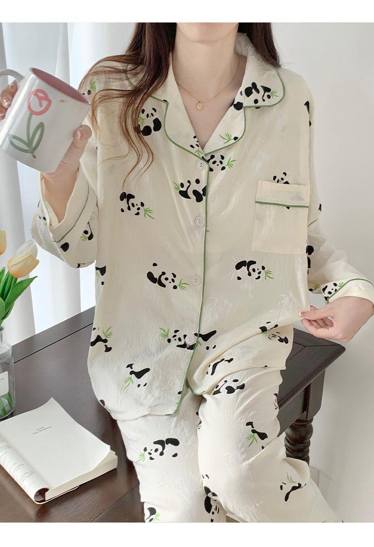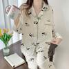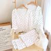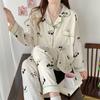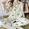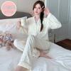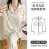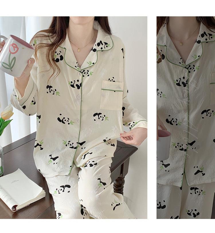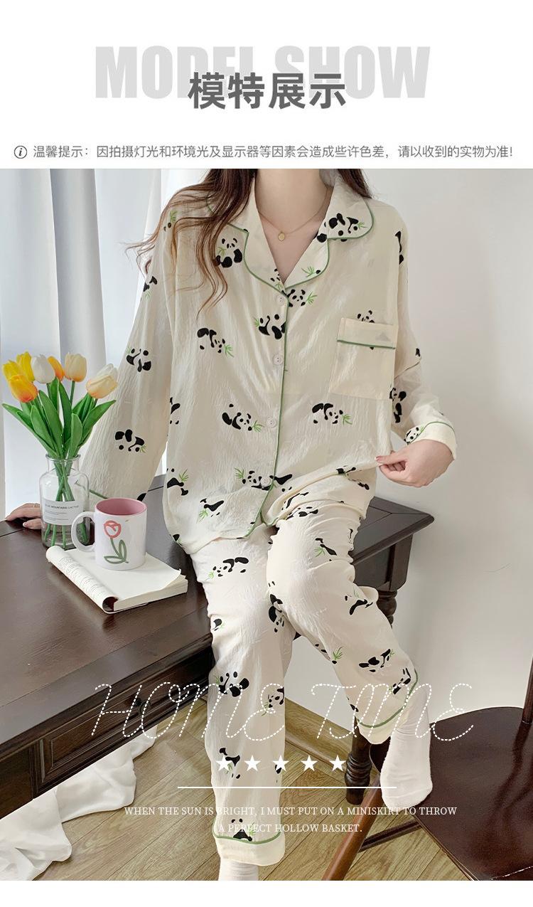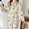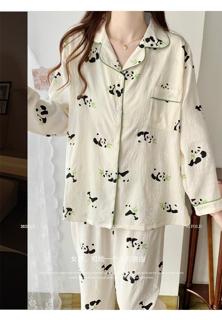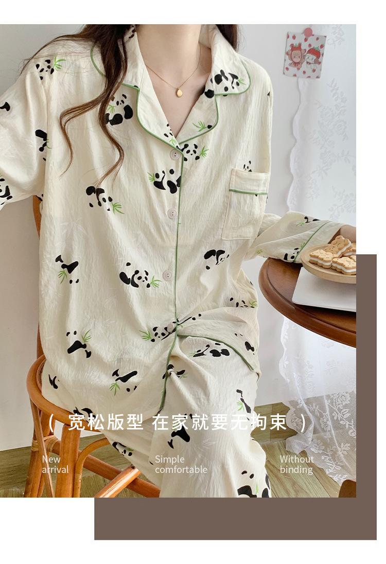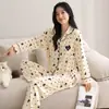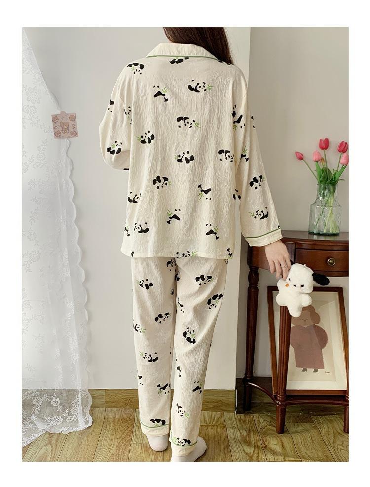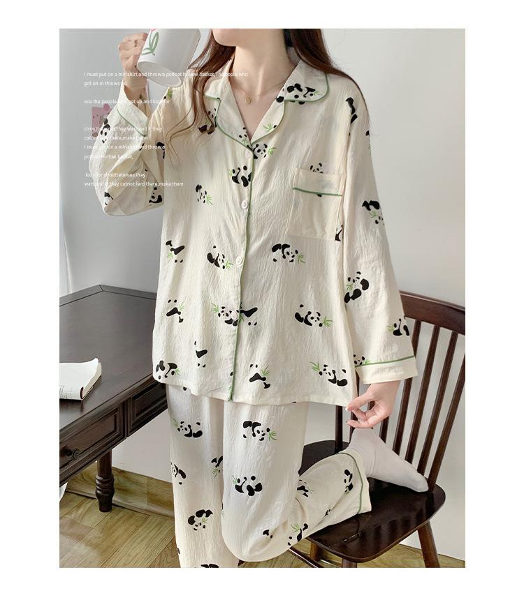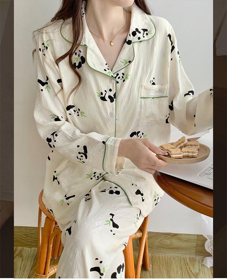 Pijama de algodón para mujer de primavera y otoño, lindo y dulce, tipo cárdigan con solapa, con almohadilla en el pecho, holgado, delgado, ropa exterior para estar en casa
