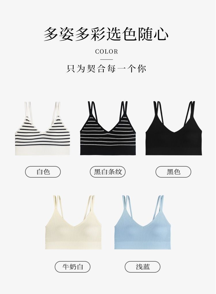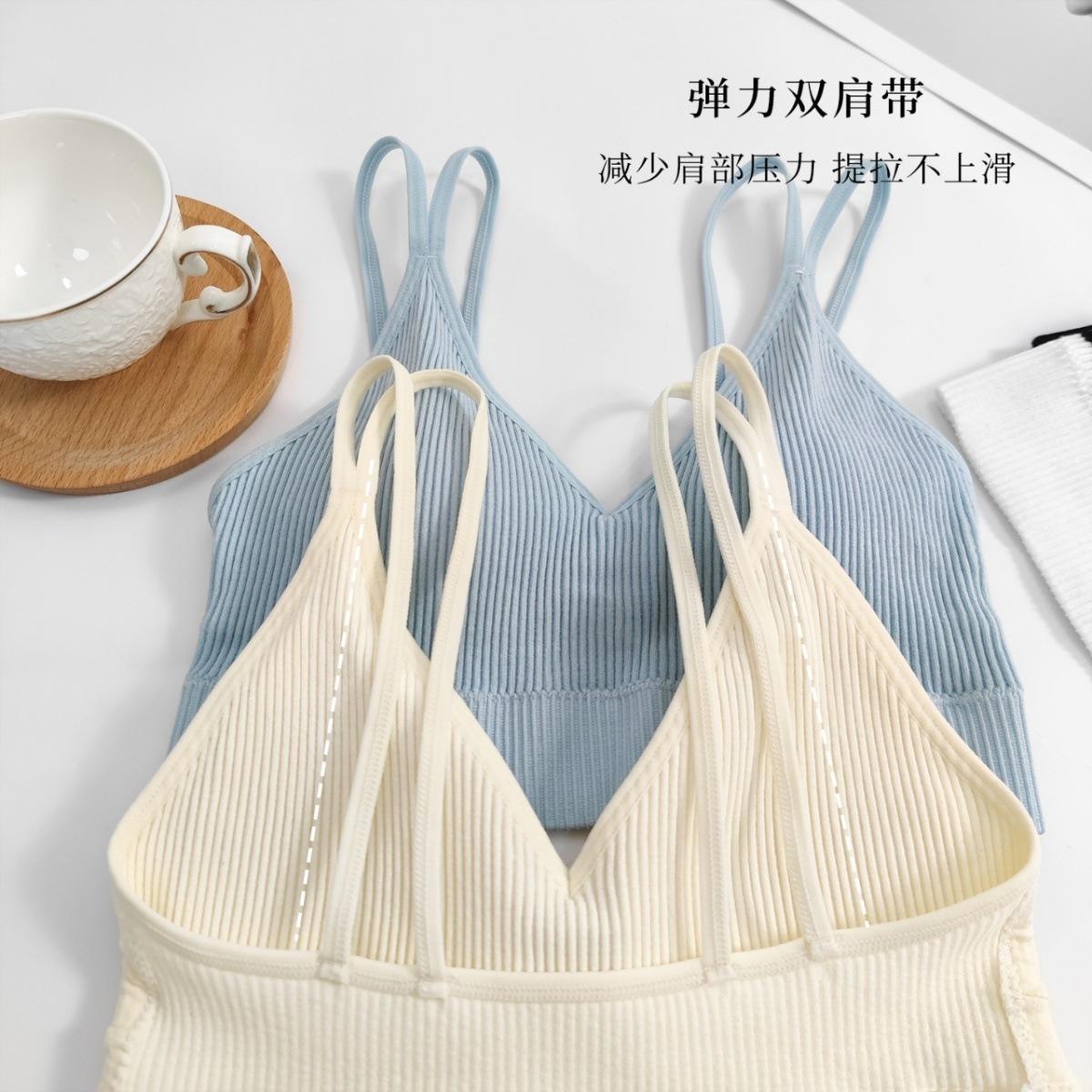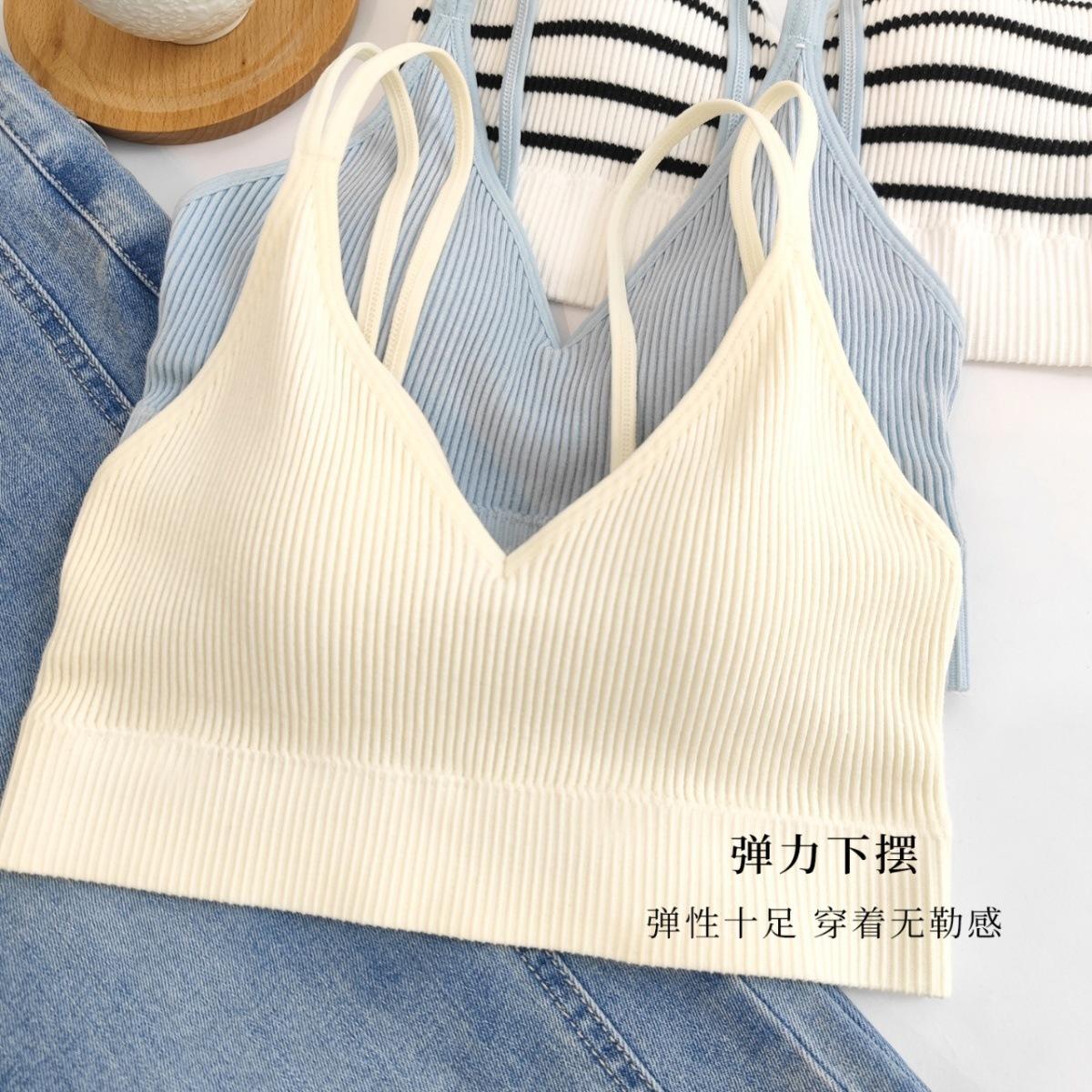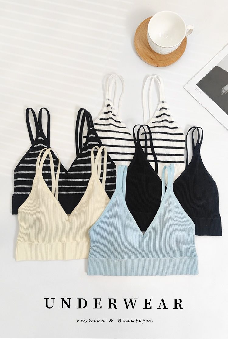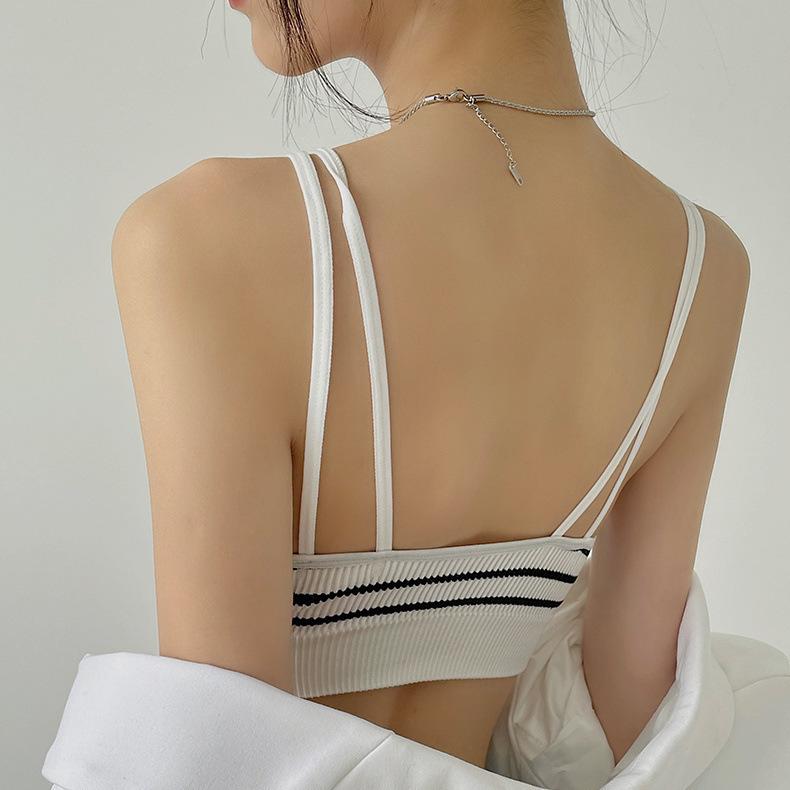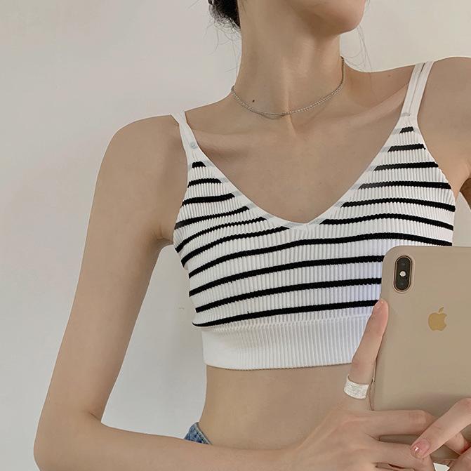 Ropa interior sin tirantes para niña, de una pieza, con almohadilla para el pecho, popular en Internet, anti-correr, ligera, para estudiantes, de color sólido, a rayas, con tirantes, chaleco pequeño, fino